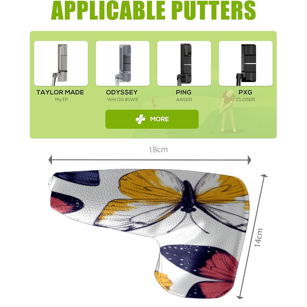 Golf Putter Cover, Water Resistant and Fleece Lined Golf Club Head Covers, PU Leather Head Covers for Men and Women Golfers Butterfly