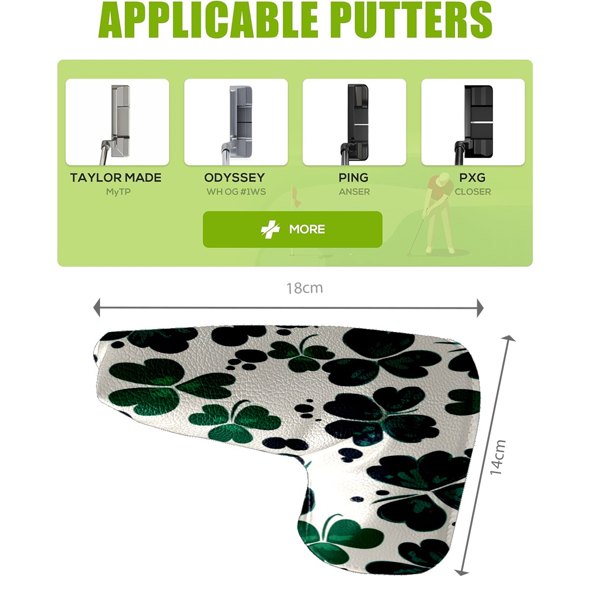 Golf Putter Cover, Water Resistant and Fleece Lined Golf Club Head Covers, PU Leather Head Covers for Men and Women Golfers Four-leaf Clover