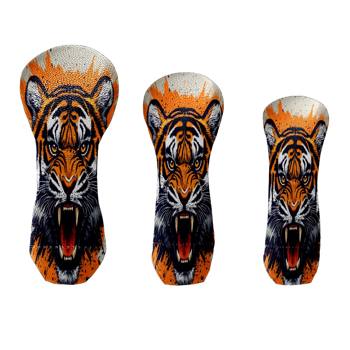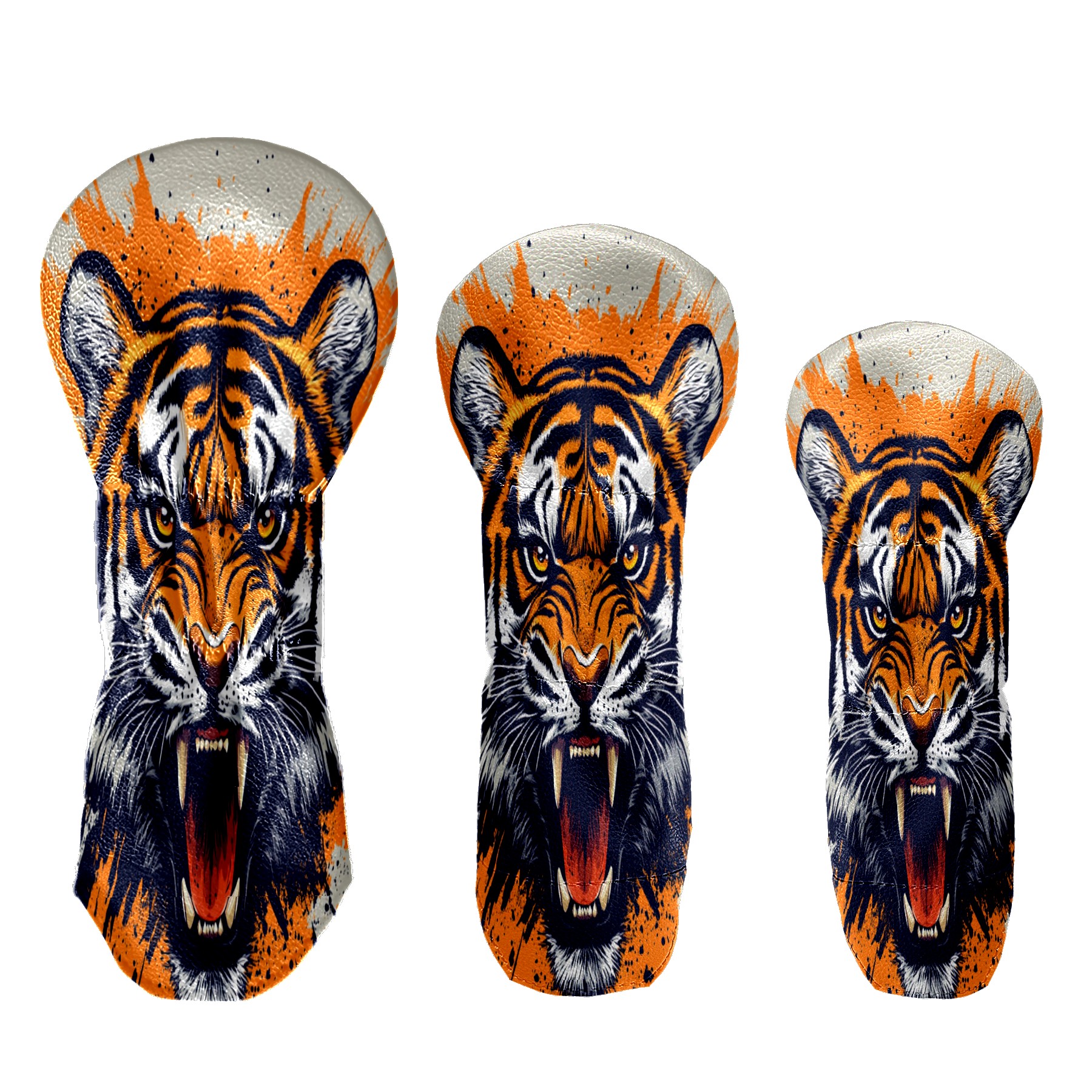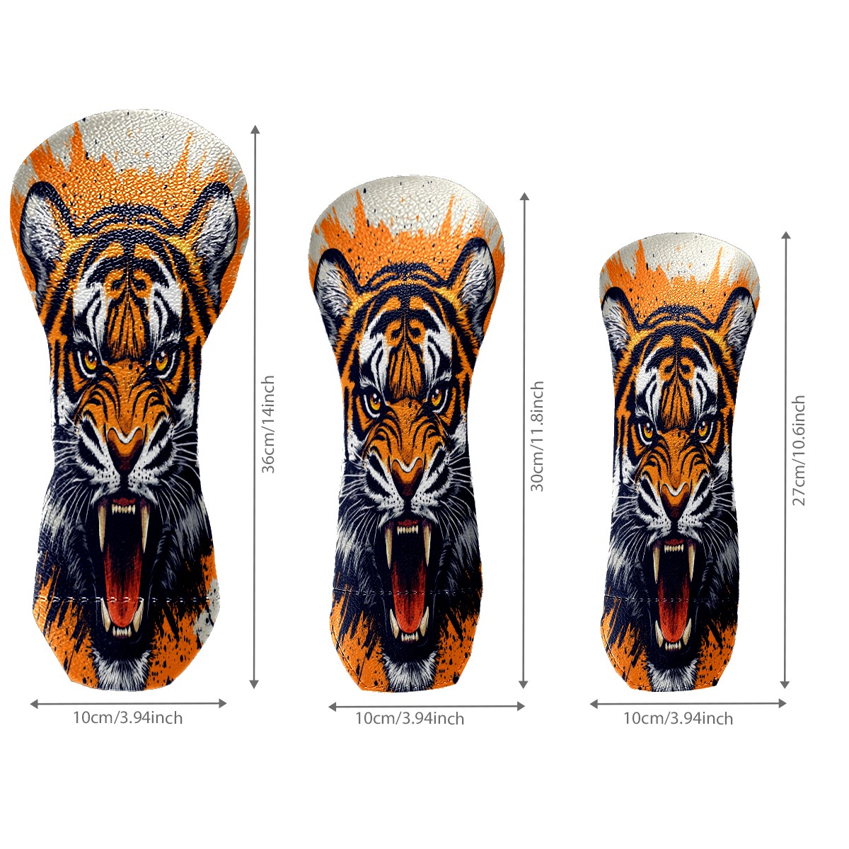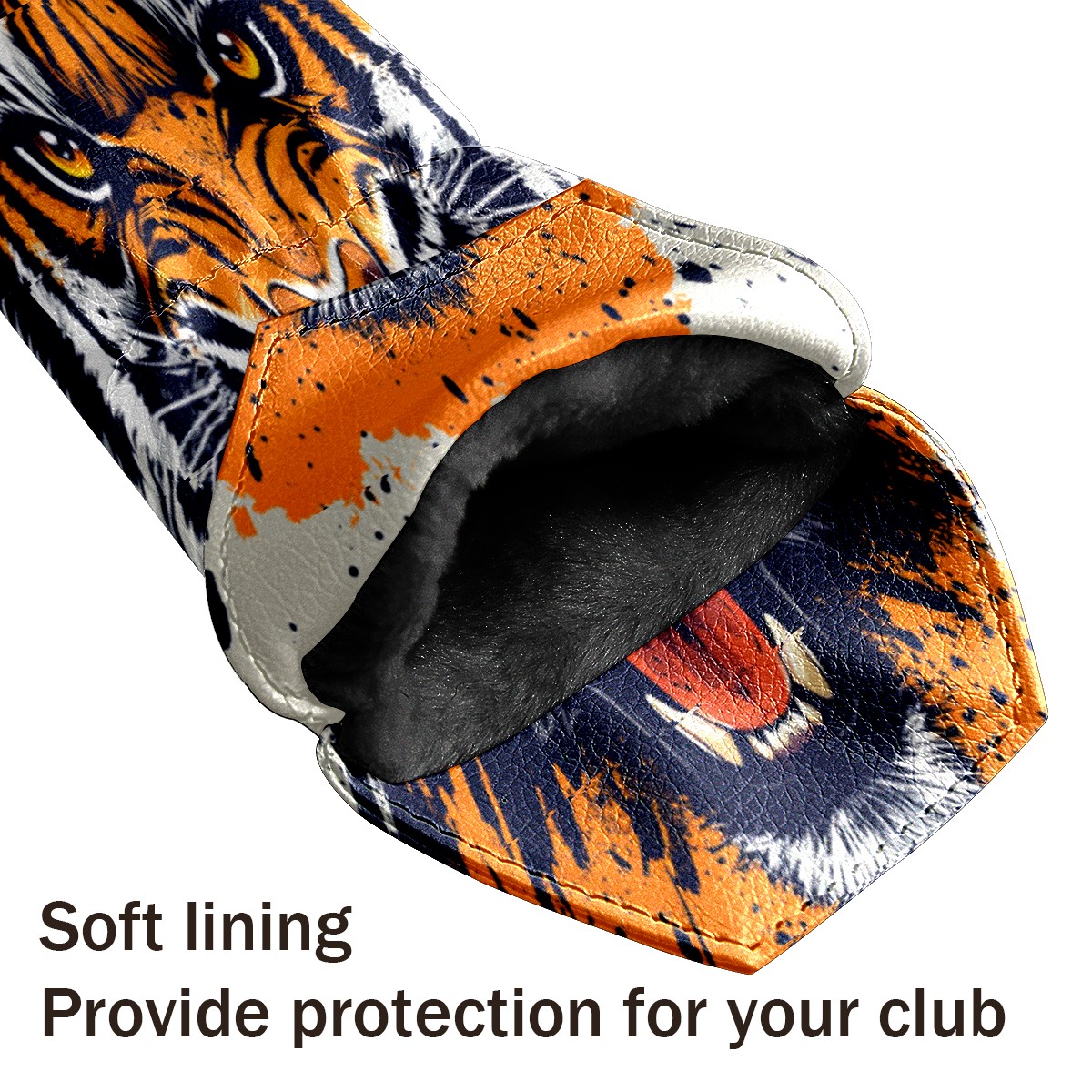 Golf Club Cover, Velvet Lining, High-Quality Leather, Suitable for the First Wood, Fairway Wood and Hybrid Club Head Cover, Suitable for Men and Women Golf Enthusiasts Funny Tiger