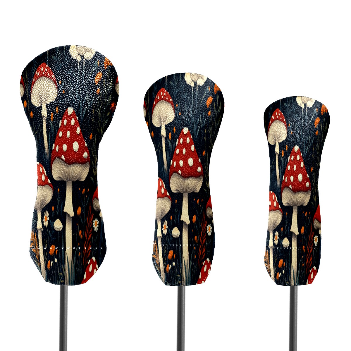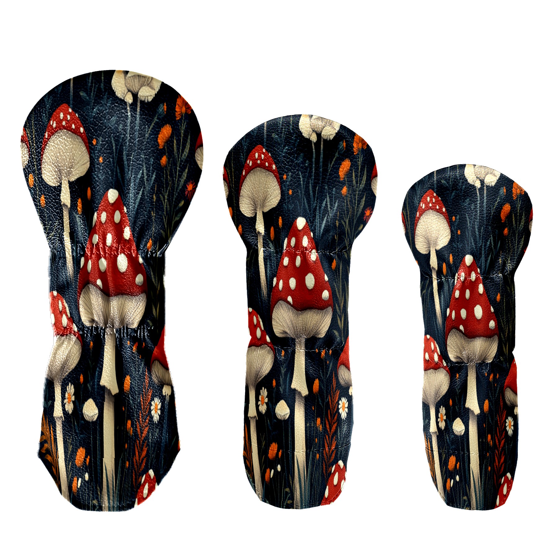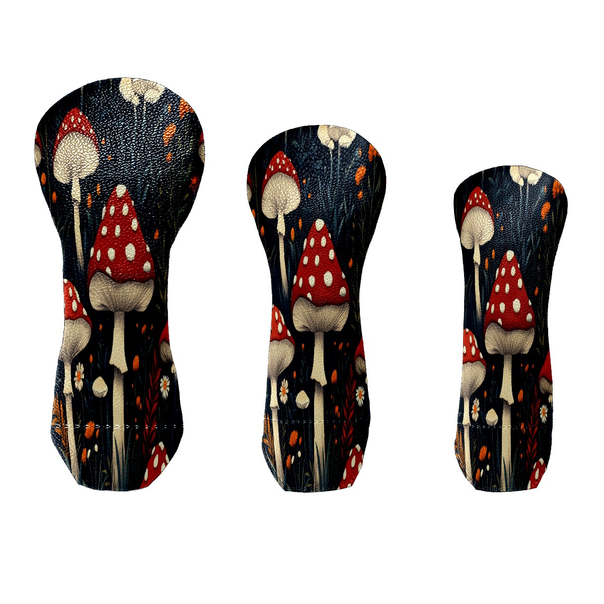 Golf Club Cover, Velvet Lining, High-Quality Leather, Suitable for the First Wood, Fairway Wood and Hybrid Club Head Cover, Suitable for Men and Women Golf Enthusiasts Red Mushroom