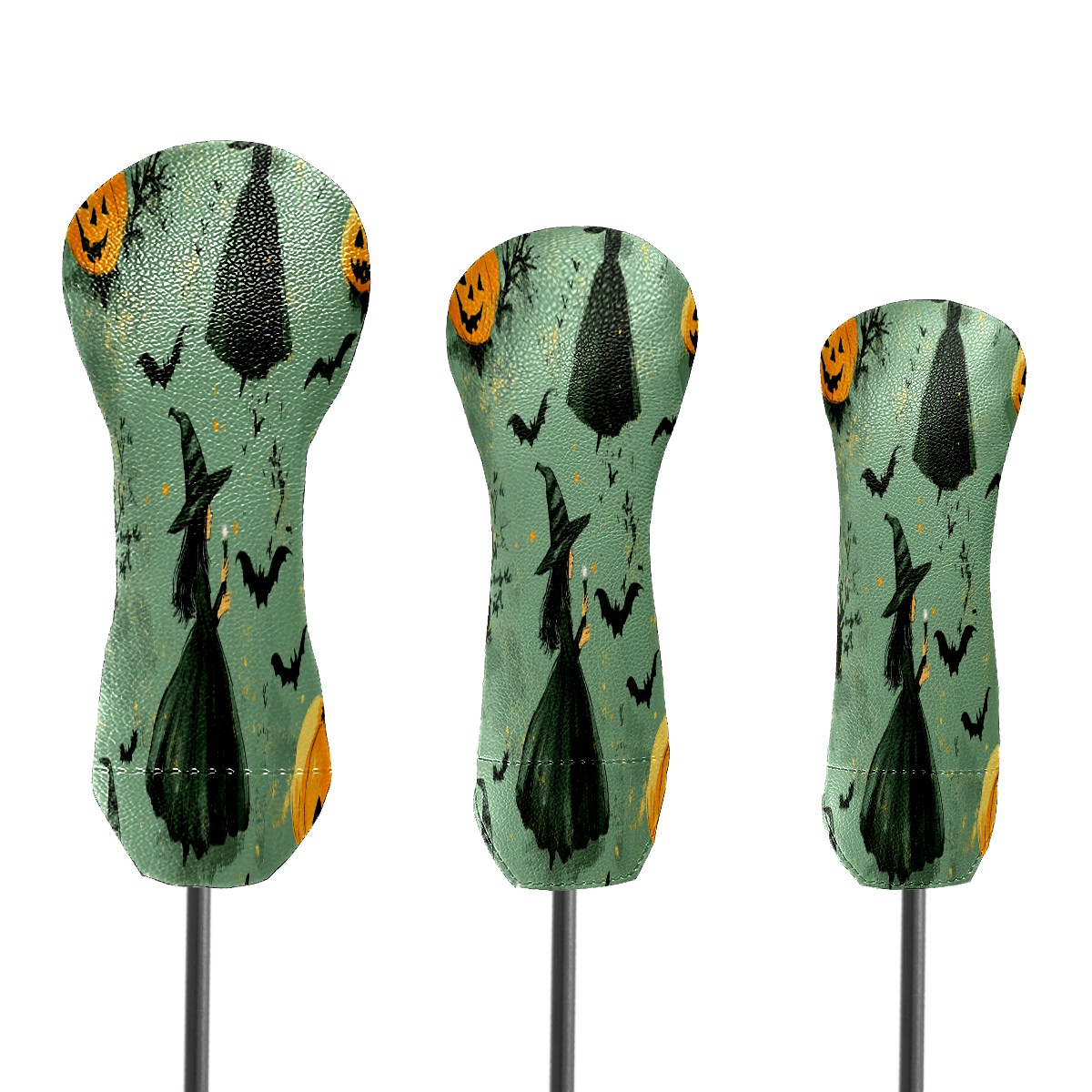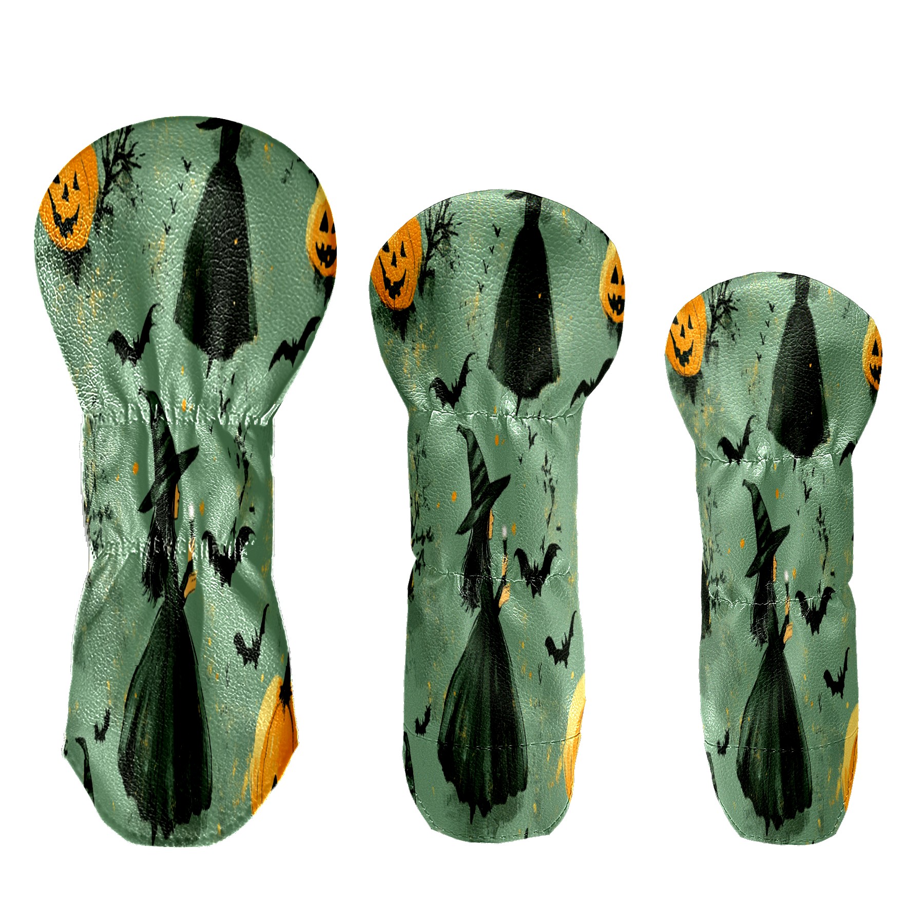 Golf Club Cover, Velvet Lining, High-Quality Leather, Suitable for the First Wood, Fairway Wood and Hybrid Club Head Cover, Suitable for Men and Women Golf Enthusiasts Witches And Pumpkins