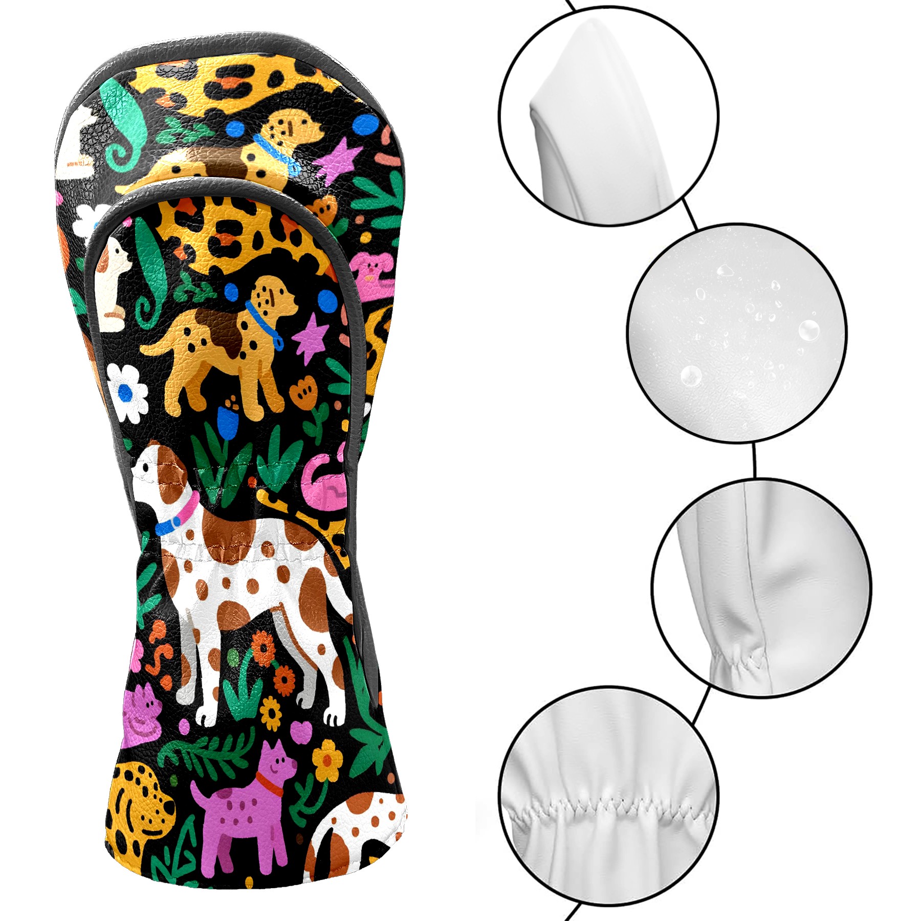 Golf Club Head Covers Green Animal for Driver, Hybrid, Putter - Waterproof, Velvet Lining, Gift for Men & Women