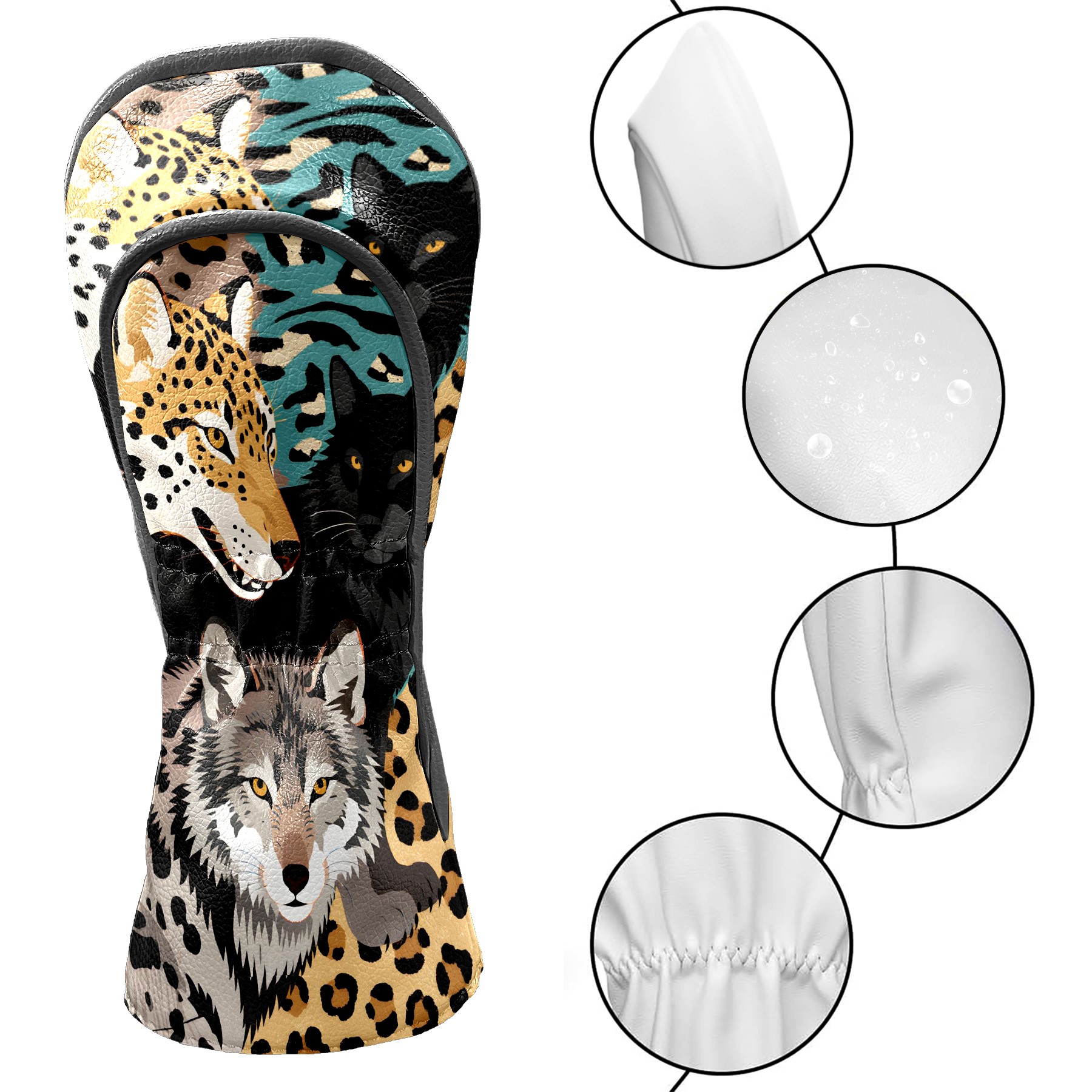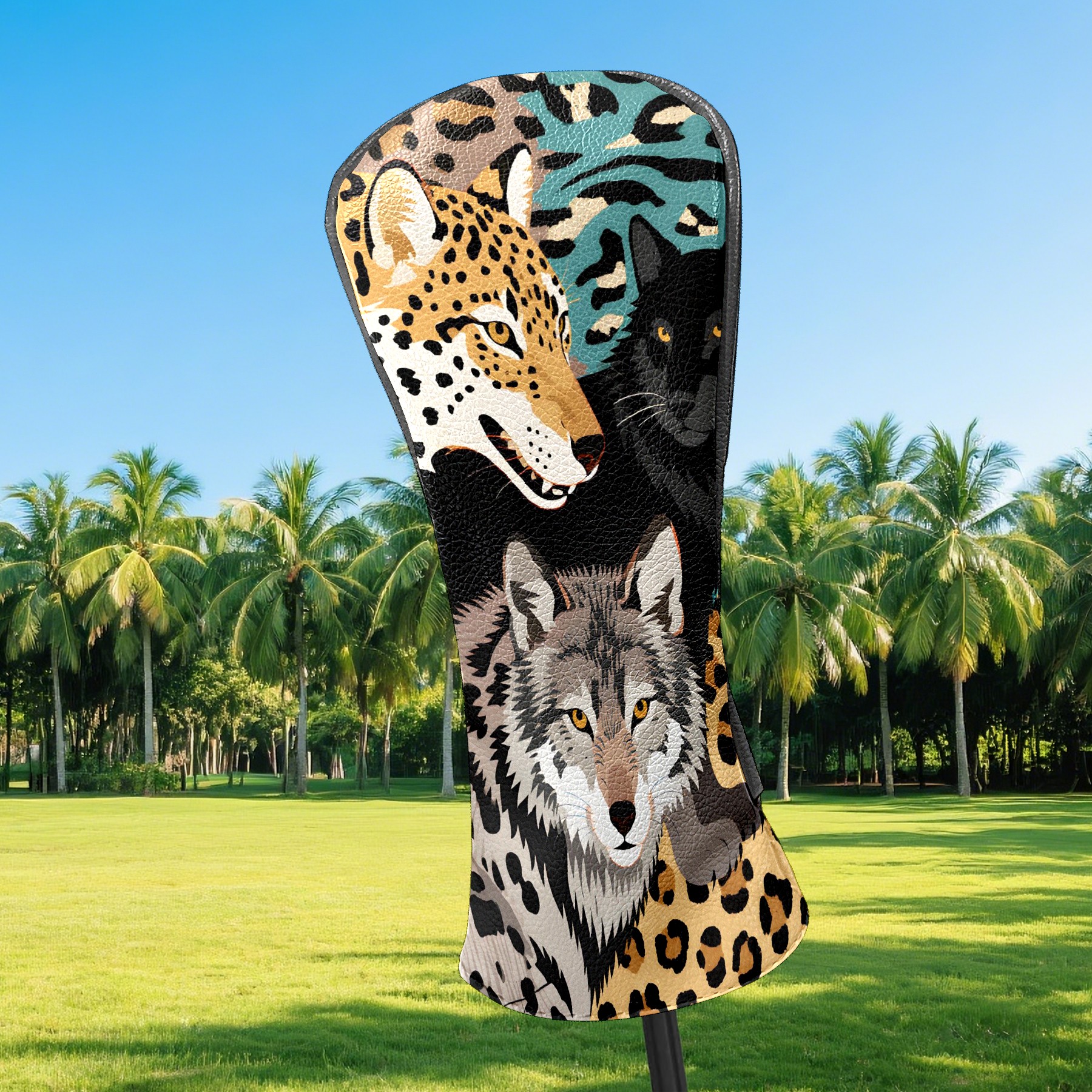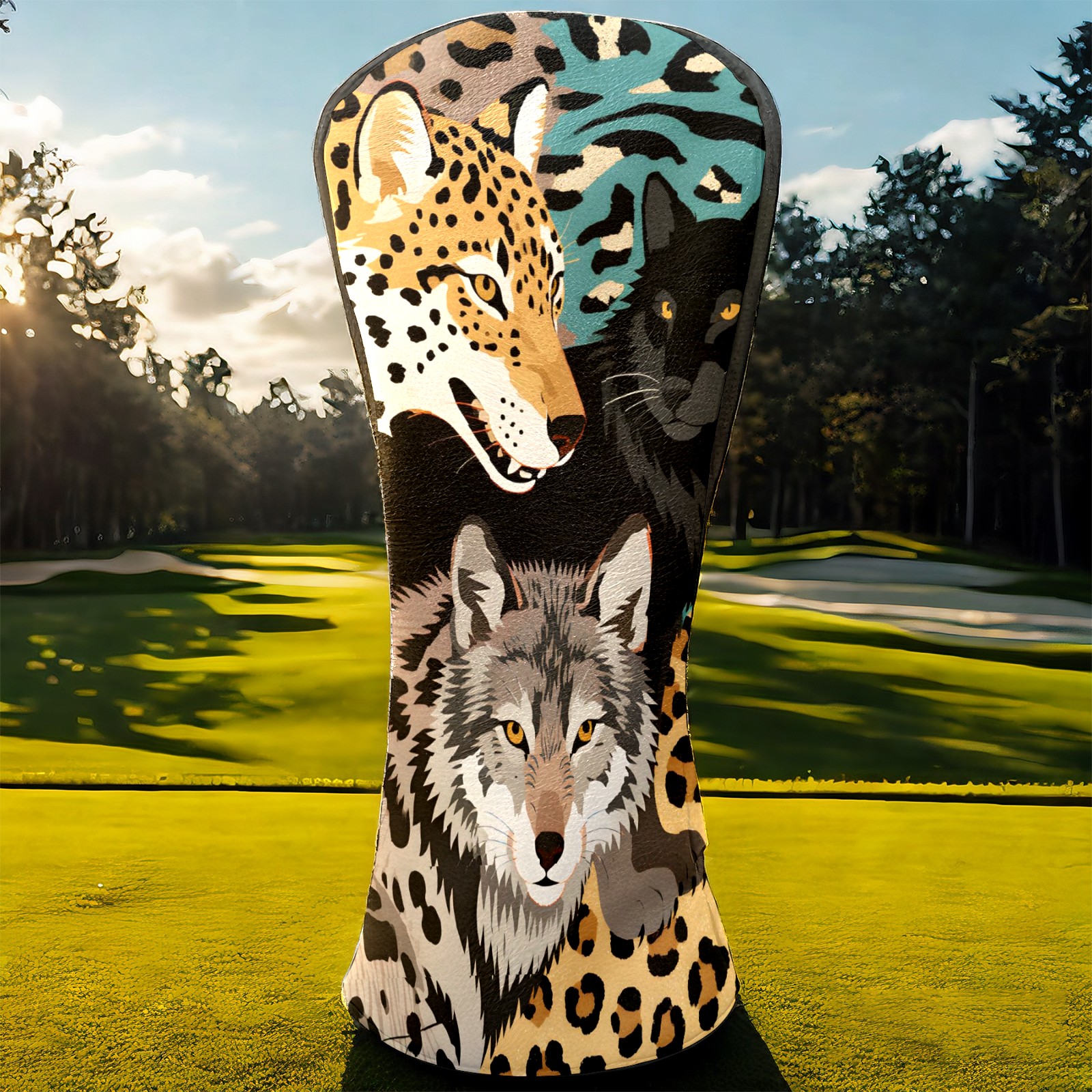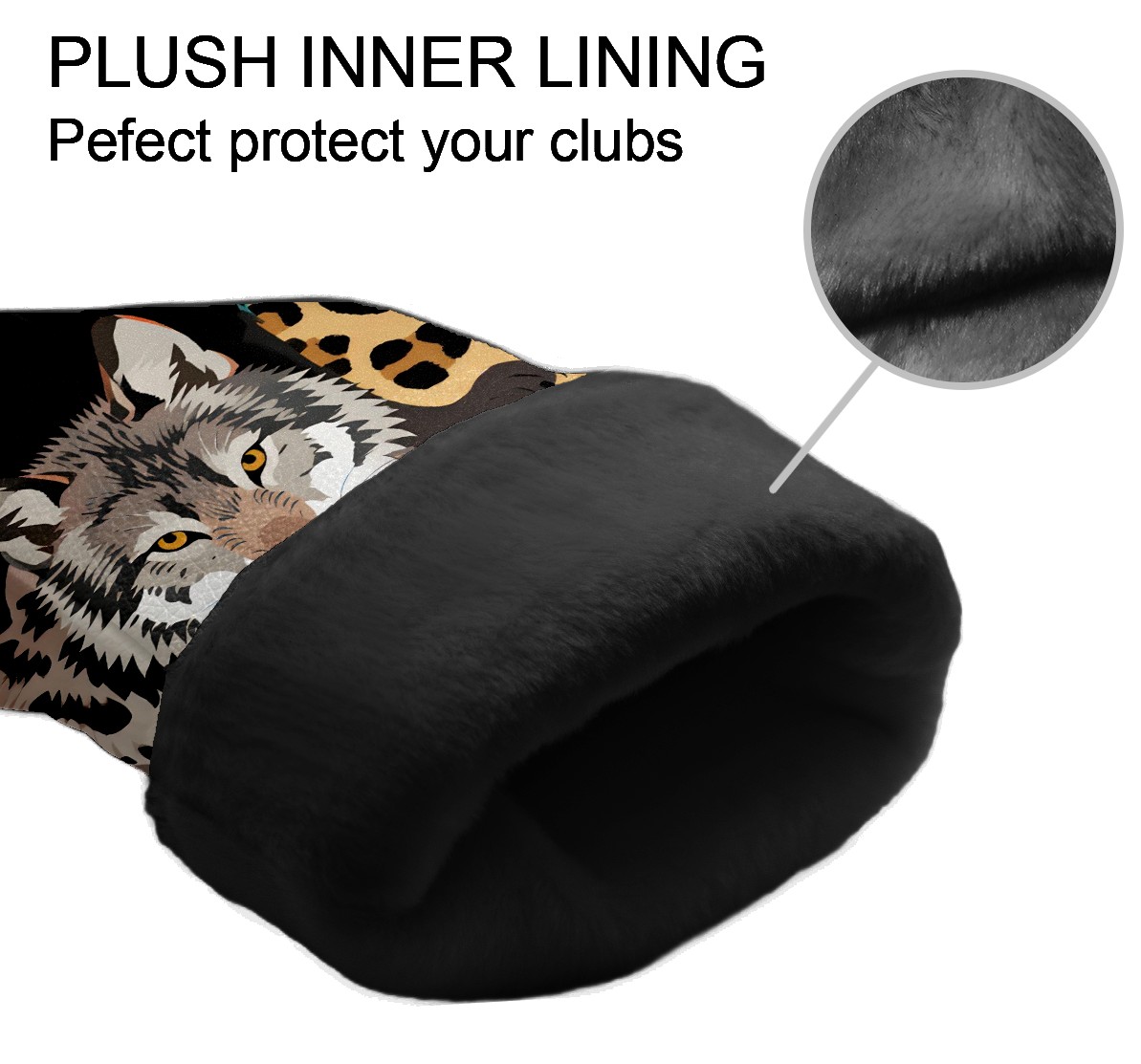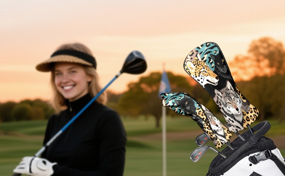 Golf Club Head Covers Brown WolfLeopard for Driver, Hybrid, Putter - Waterproof, Velvet Lining, Gift for Men & Women