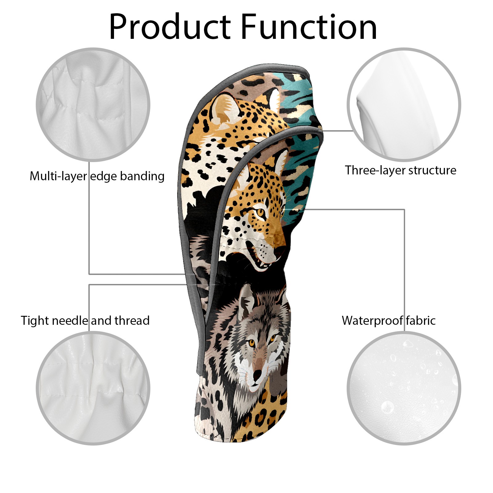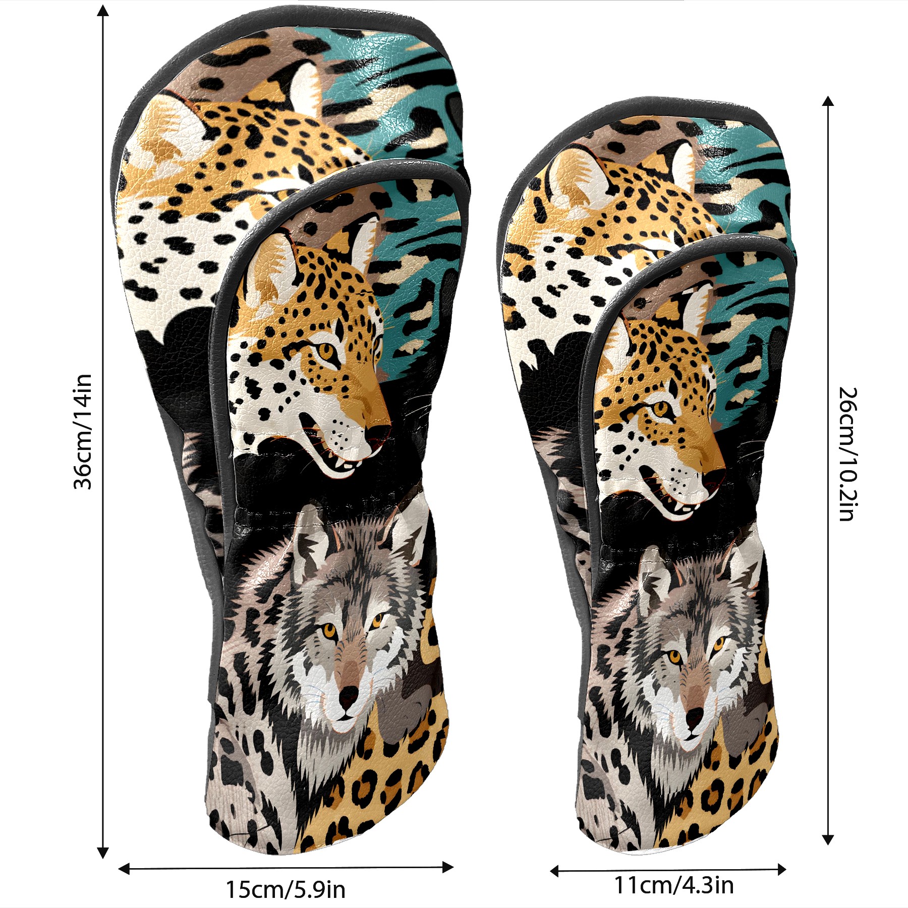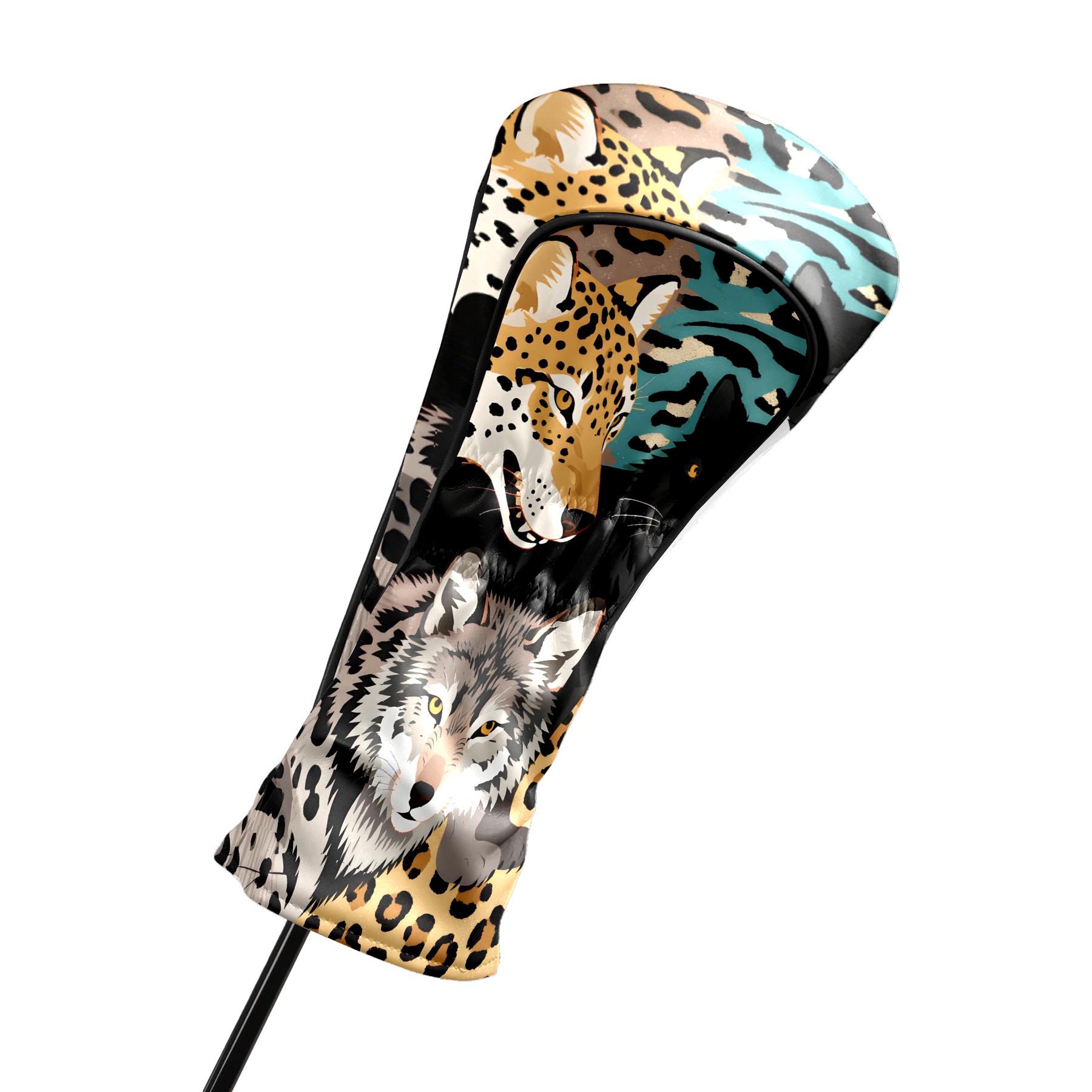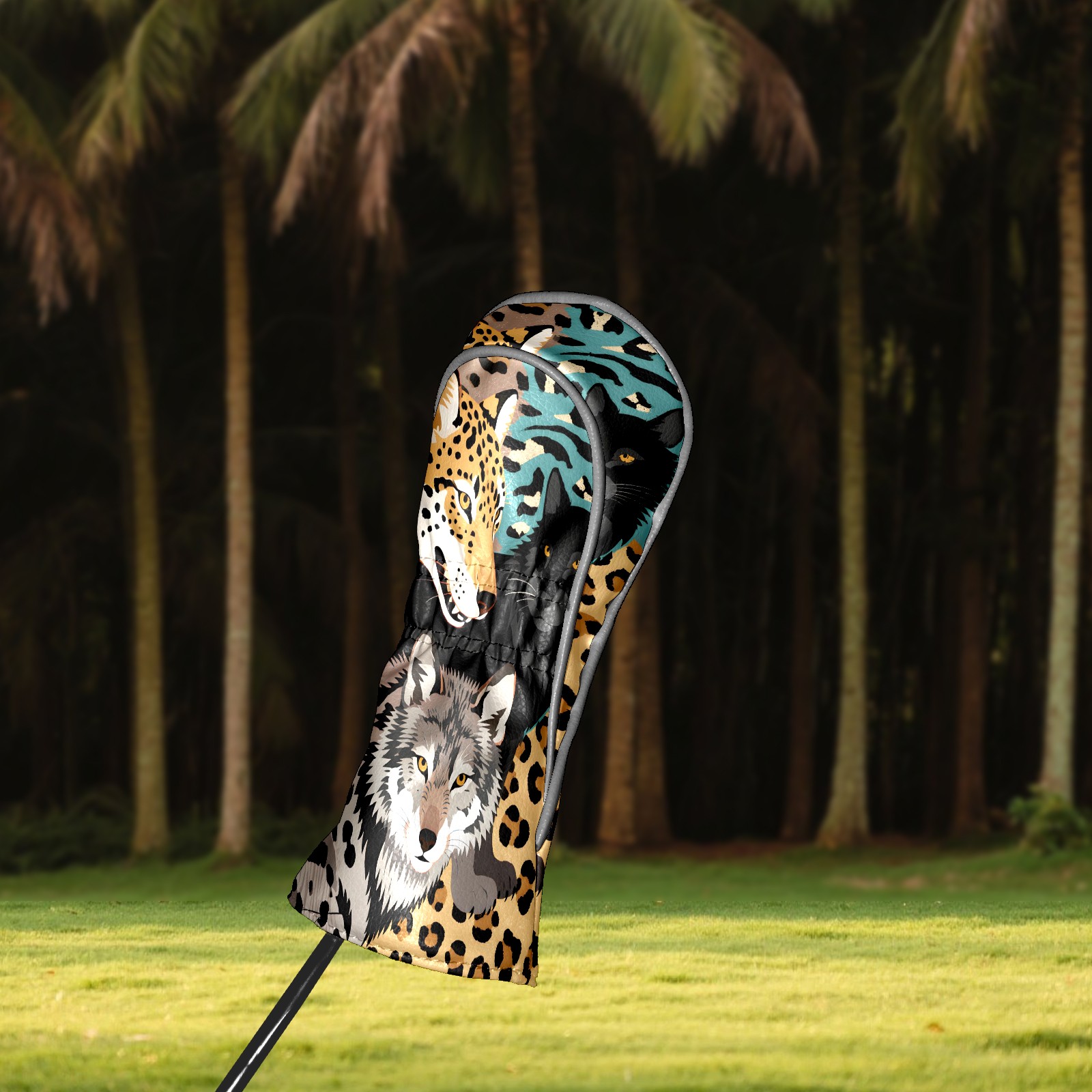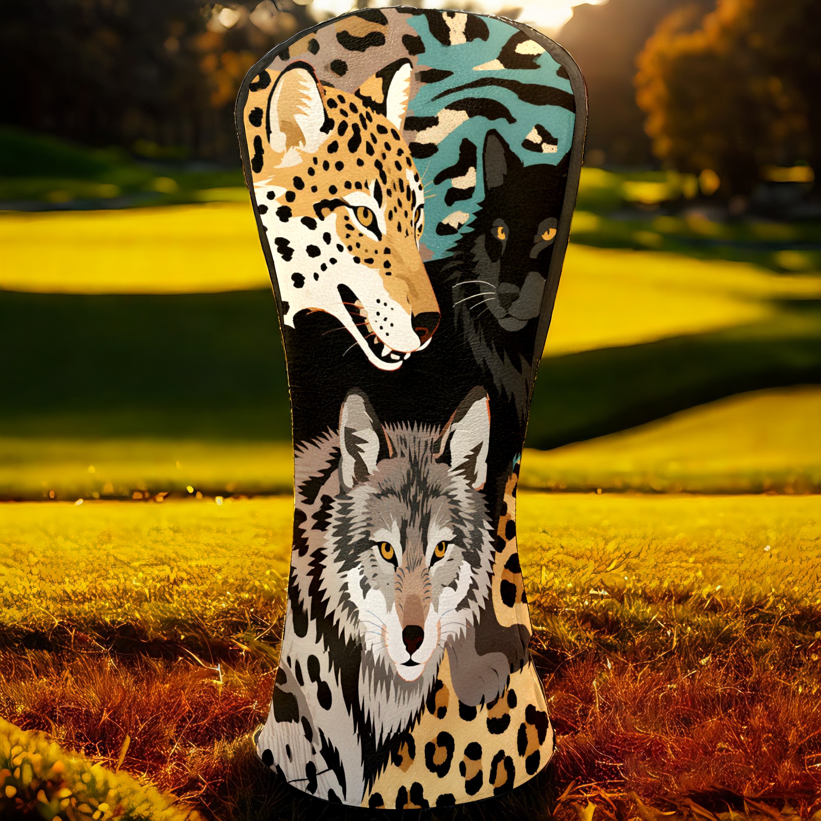 Golf Club Head Covers Brown WolfLeopard for Driver, Hybrid, Putter - Waterproof, Velvet Lining, Gift for Men & Women