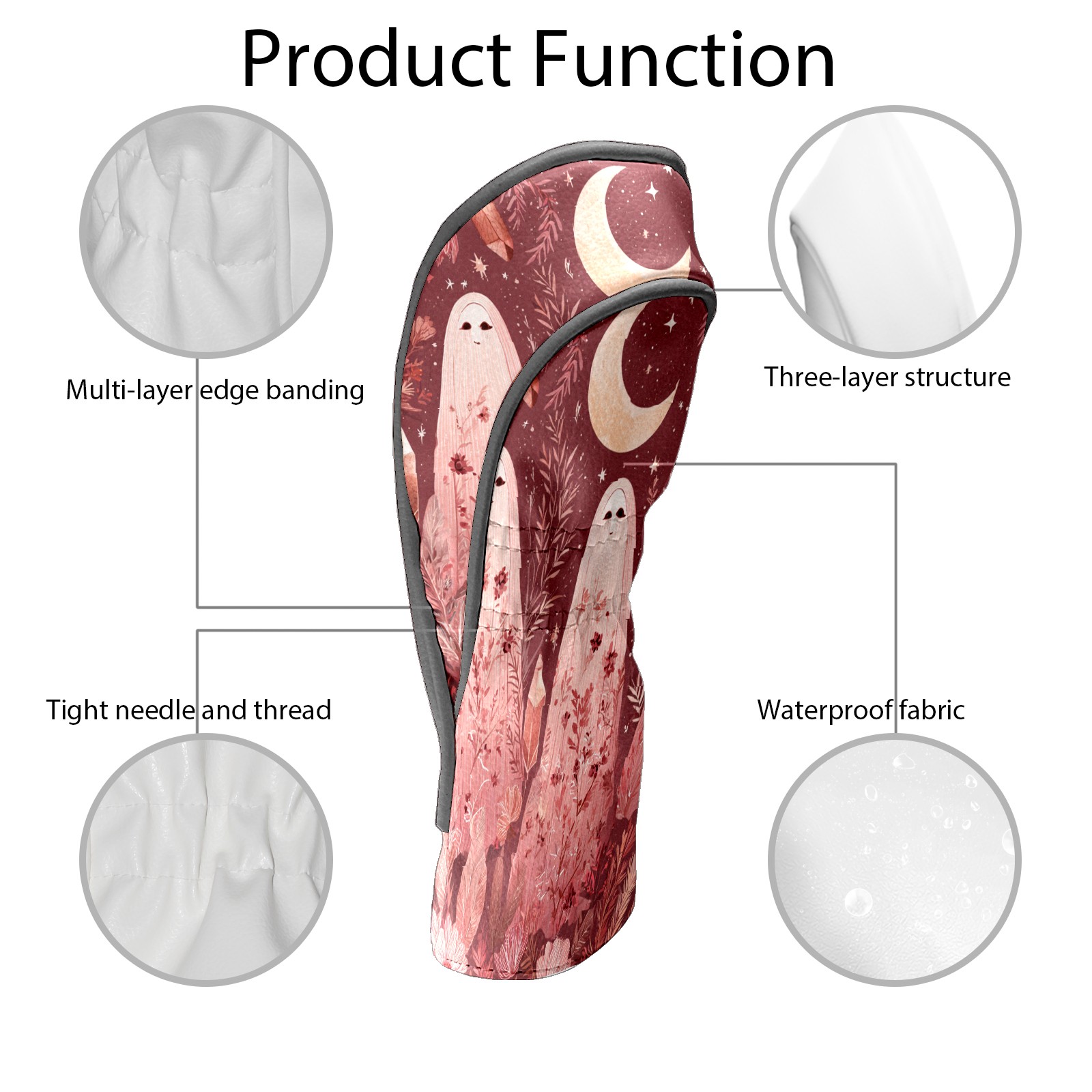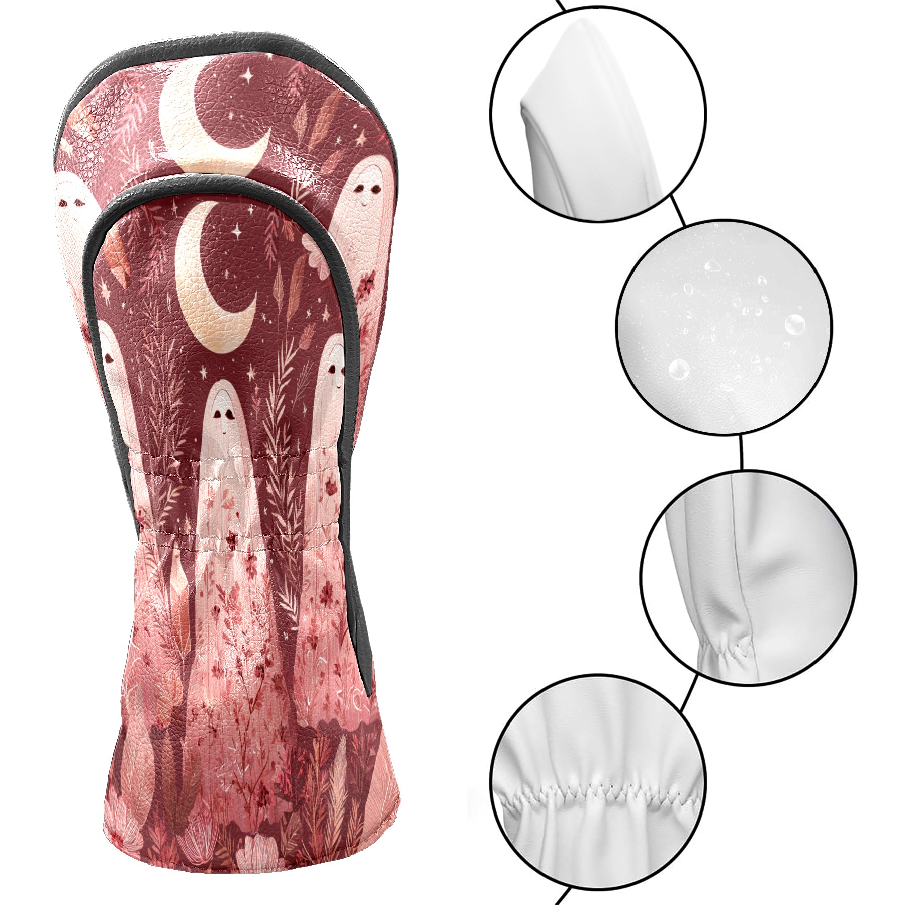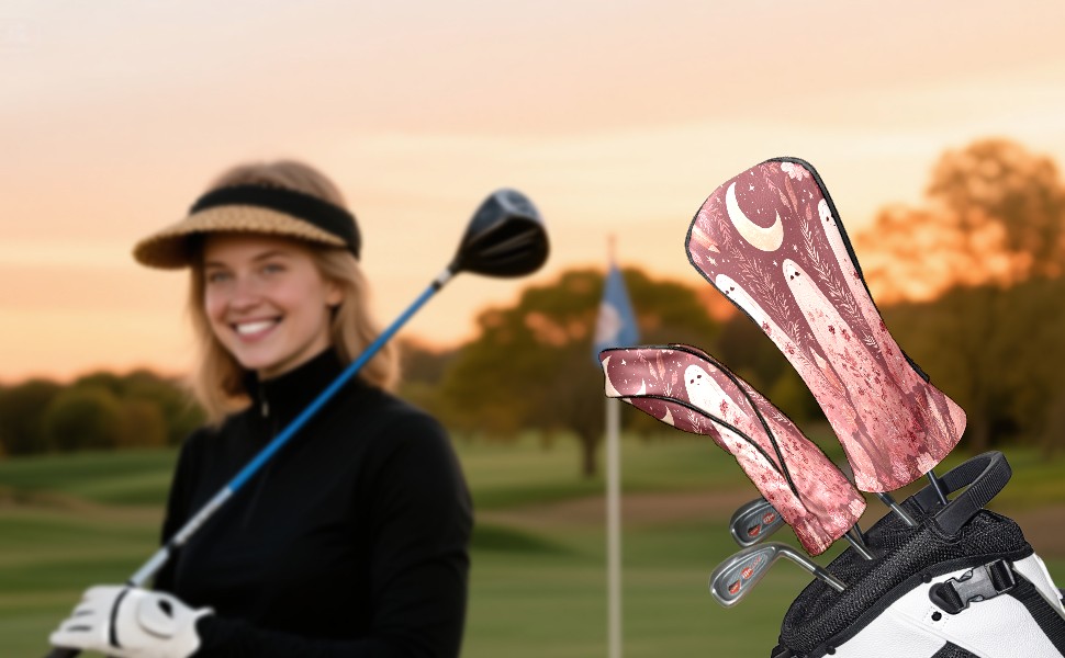 Golf Club Head Covers Pink GhostPlant for Driver, Hybrid, Putter - Waterproof, Velvet Lining, Gift for Men & Women