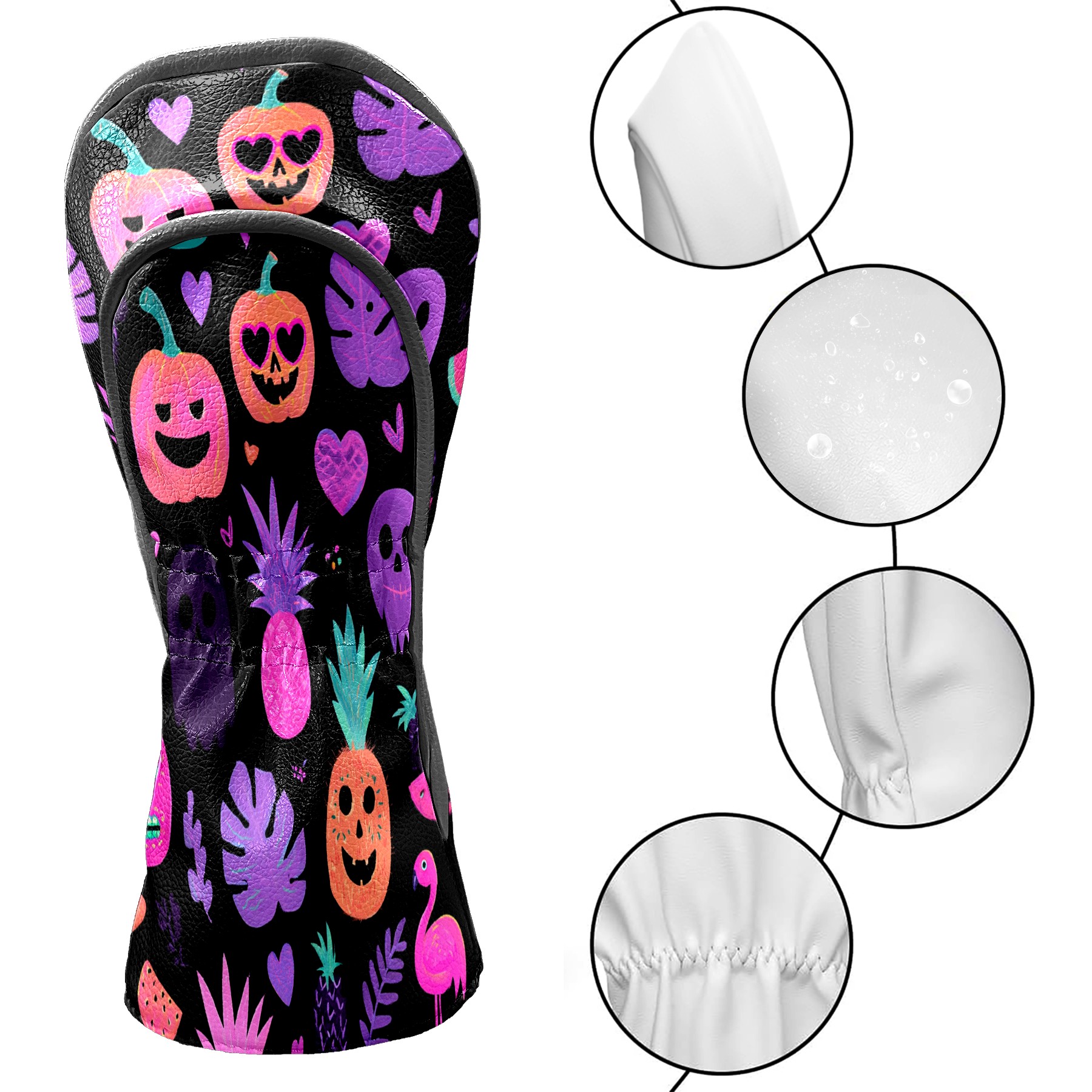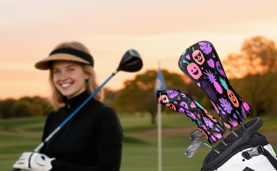 Golf Club Head Covers Purple Halloween for Driver, Hybrid, Putter - Waterproof, Velvet Lining, Gift for Men & Women