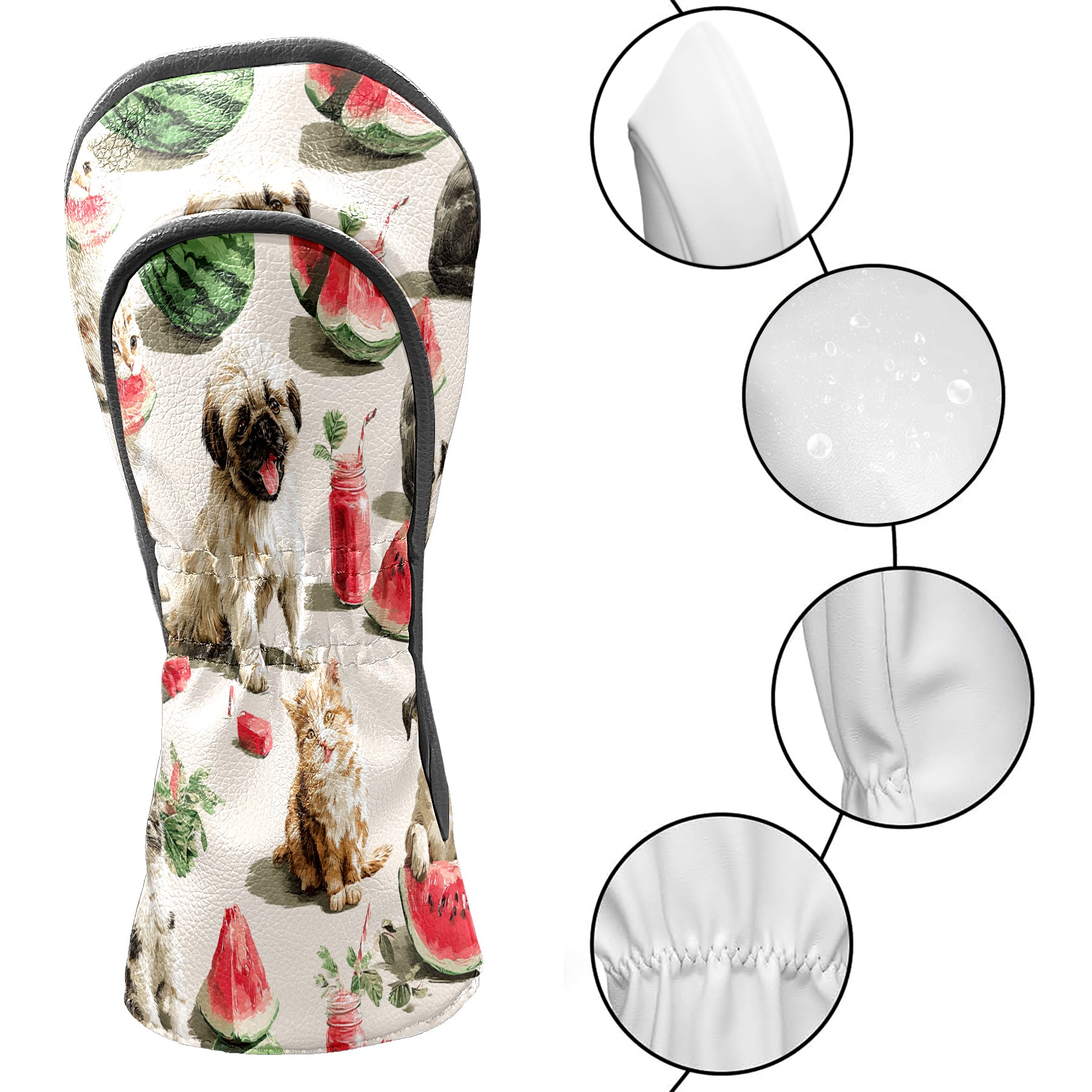 Golf Club Head Covers Colorful PetWatermelon for Driver, Hybrid, Putter - Waterproof, Velvet Lining, Gift for Men & Women
