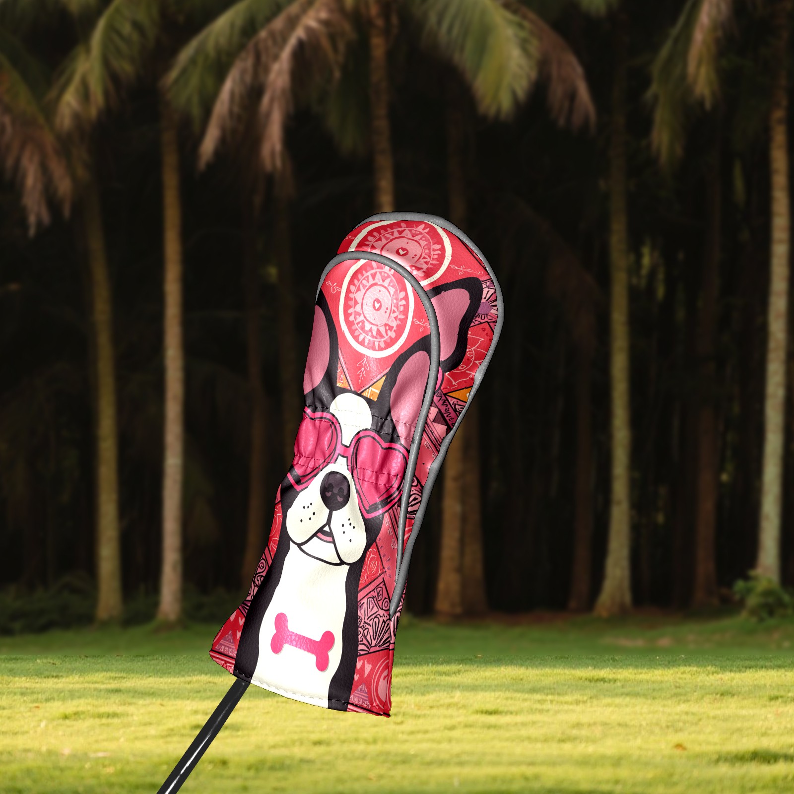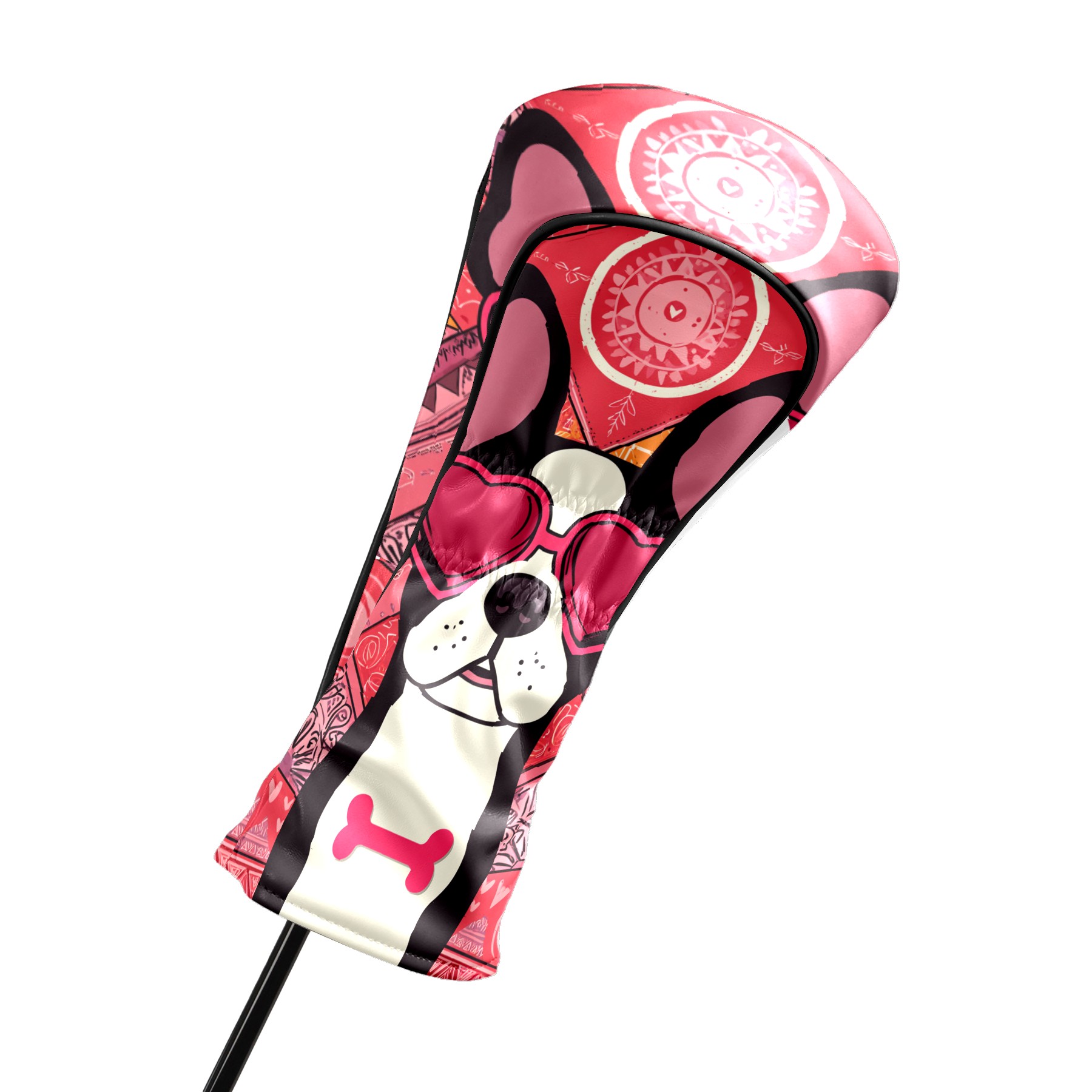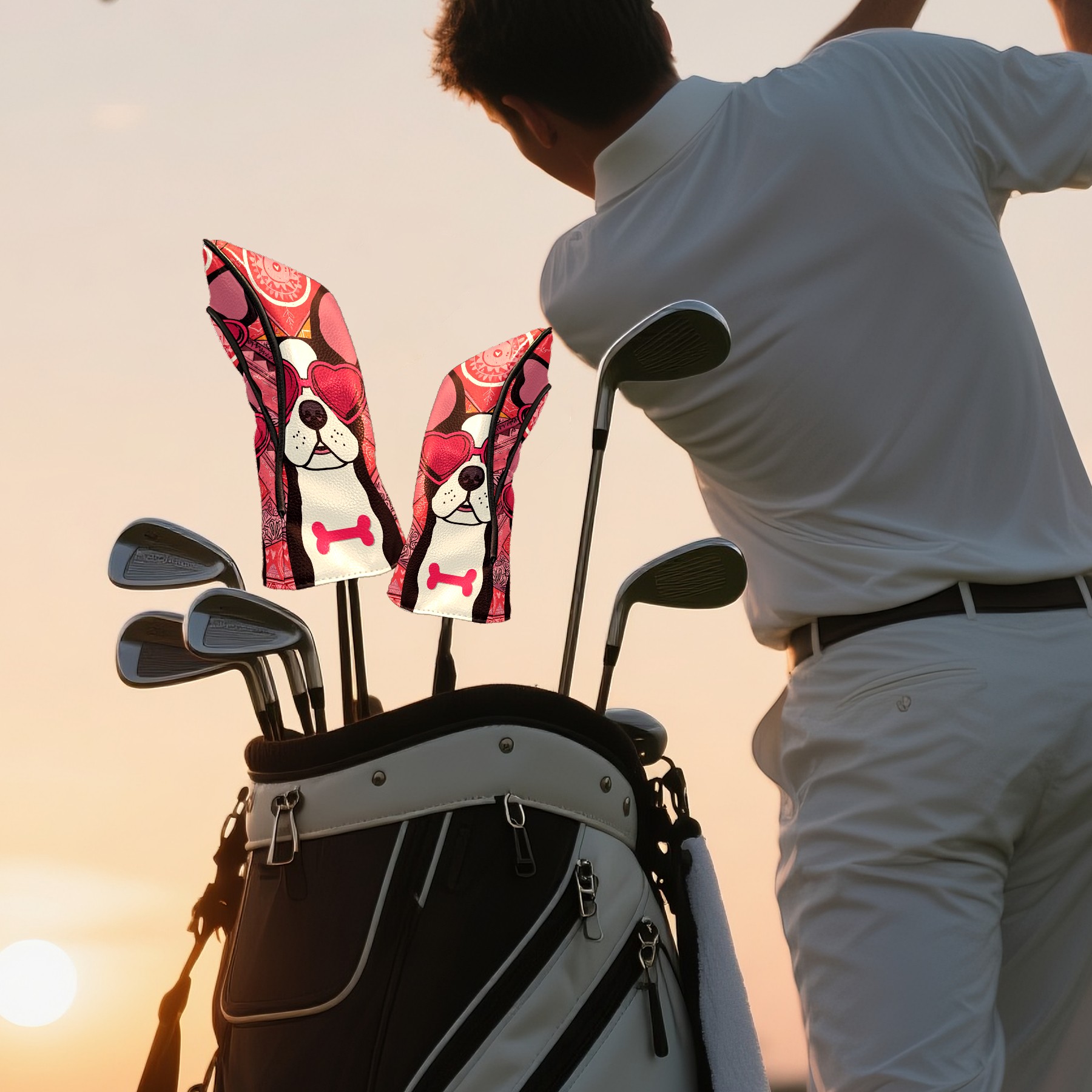 Golf Club Head Covers Pink Bulldog for Driver, Hybrid, Putter - Waterproof, Velvet Lining, Gift for Men & Women