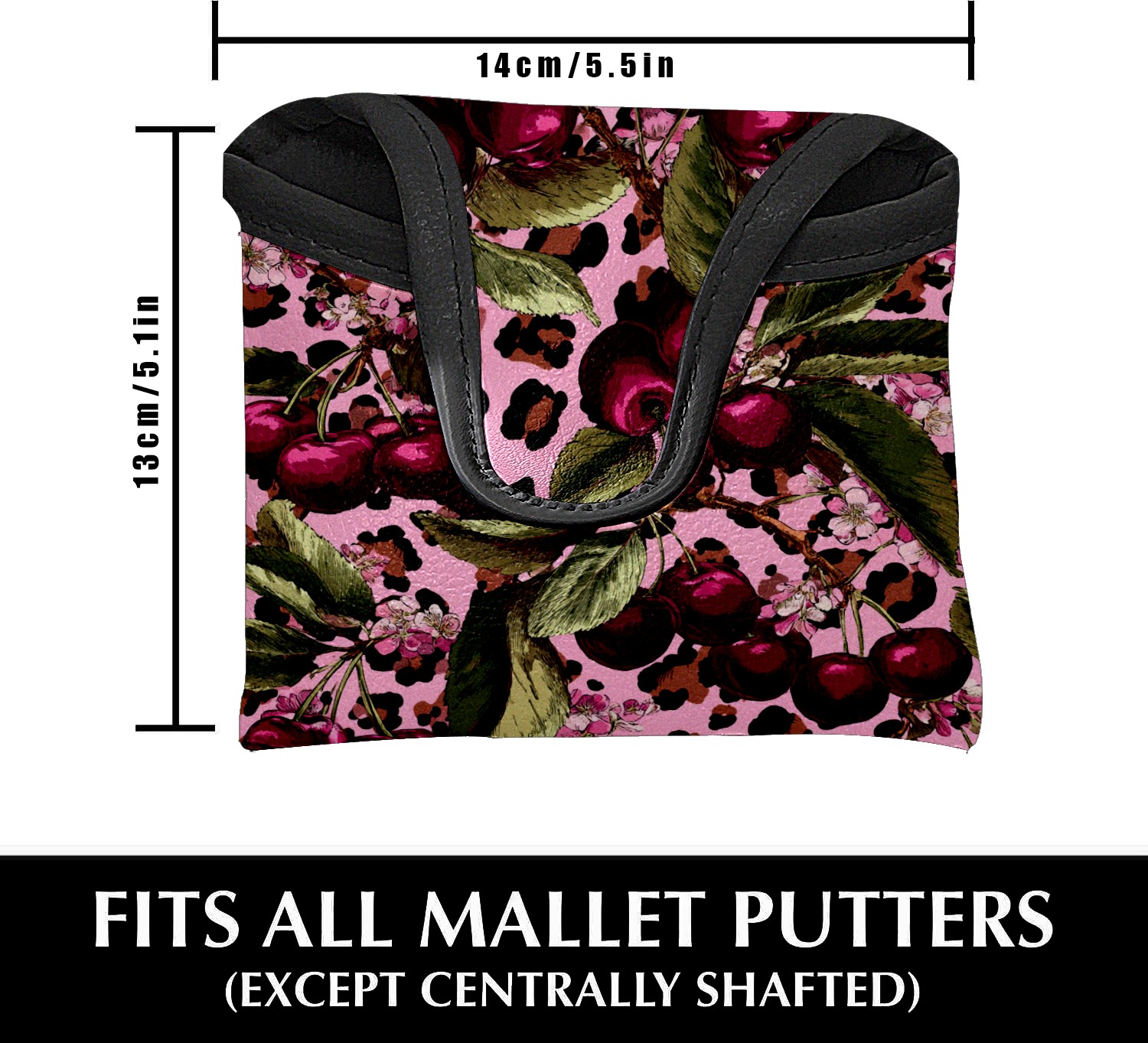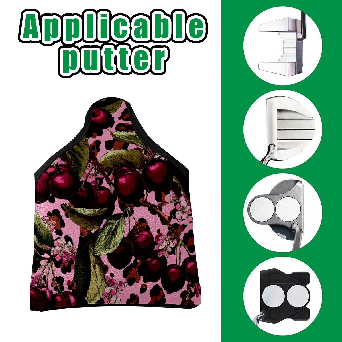 Putter Cover, Golf Club Headcovers Pink CherryLeopard Premium PU Leather with Velvet Lining, Waterproof Putter Head Cover for Men Women (5.1"x5.5")
