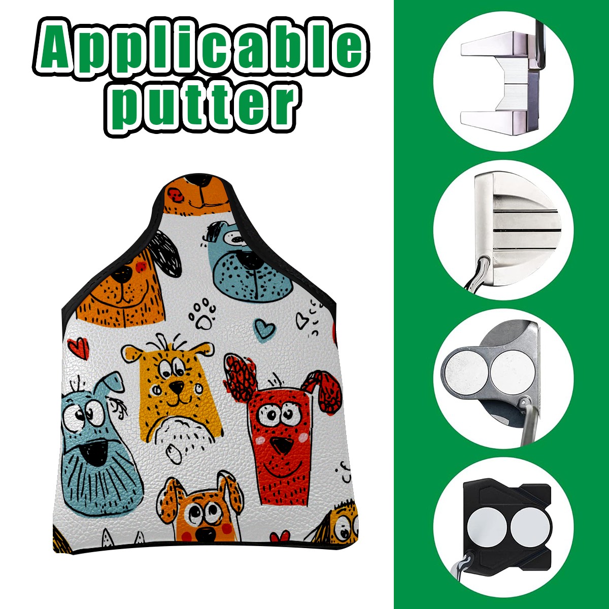 Putter Cover, Golf Club Headcovers Colorful CartoonDog Premium PU Leather with Velvet Lining, Waterproof Putter Head Cover for Men Women (5.1"x5.5")