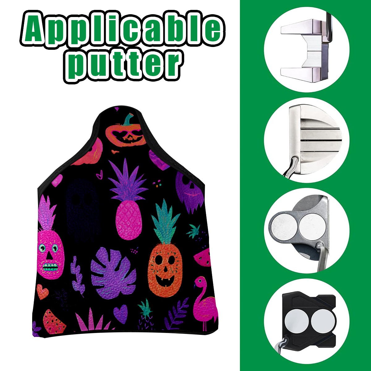 Putter Cover, Golf Club Headcovers Purple Halloween Premium PU Leather with Velvet Lining, Waterproof Putter Head Cover for Men Women (5.1"x5.5")