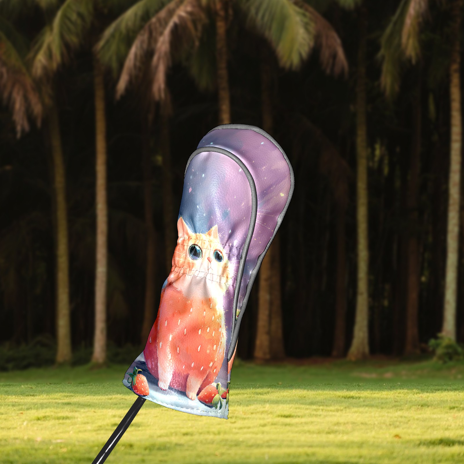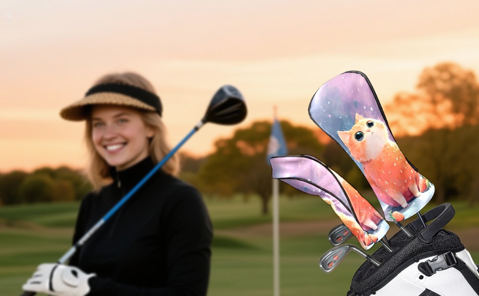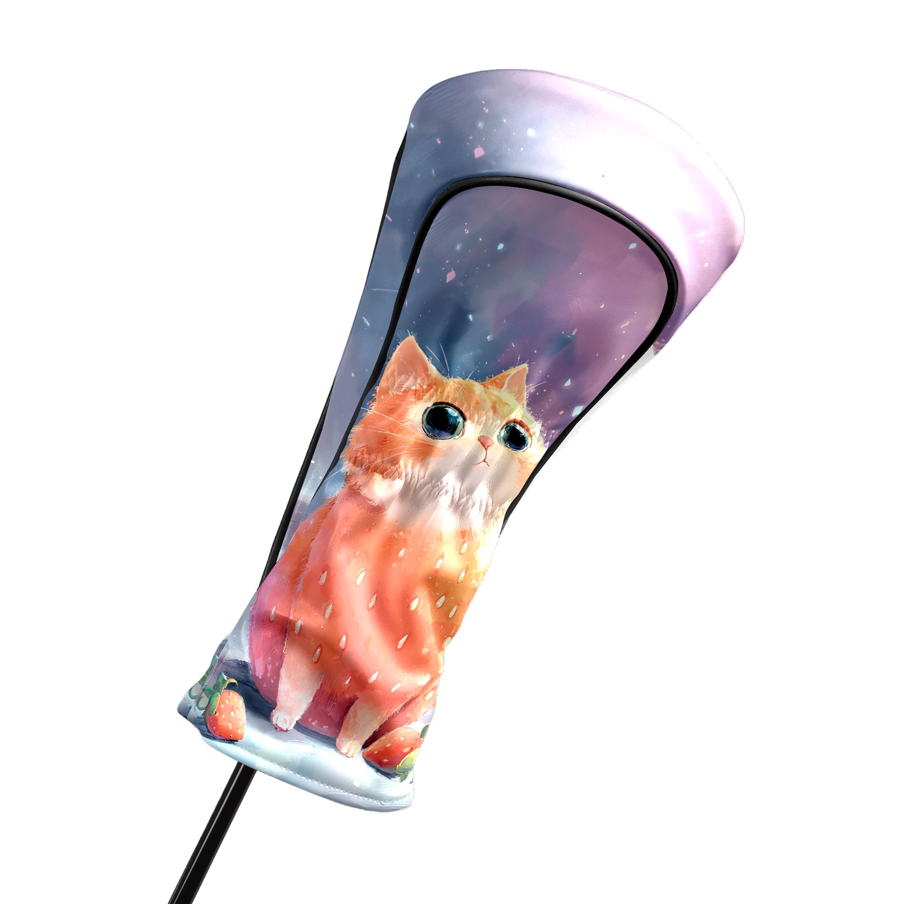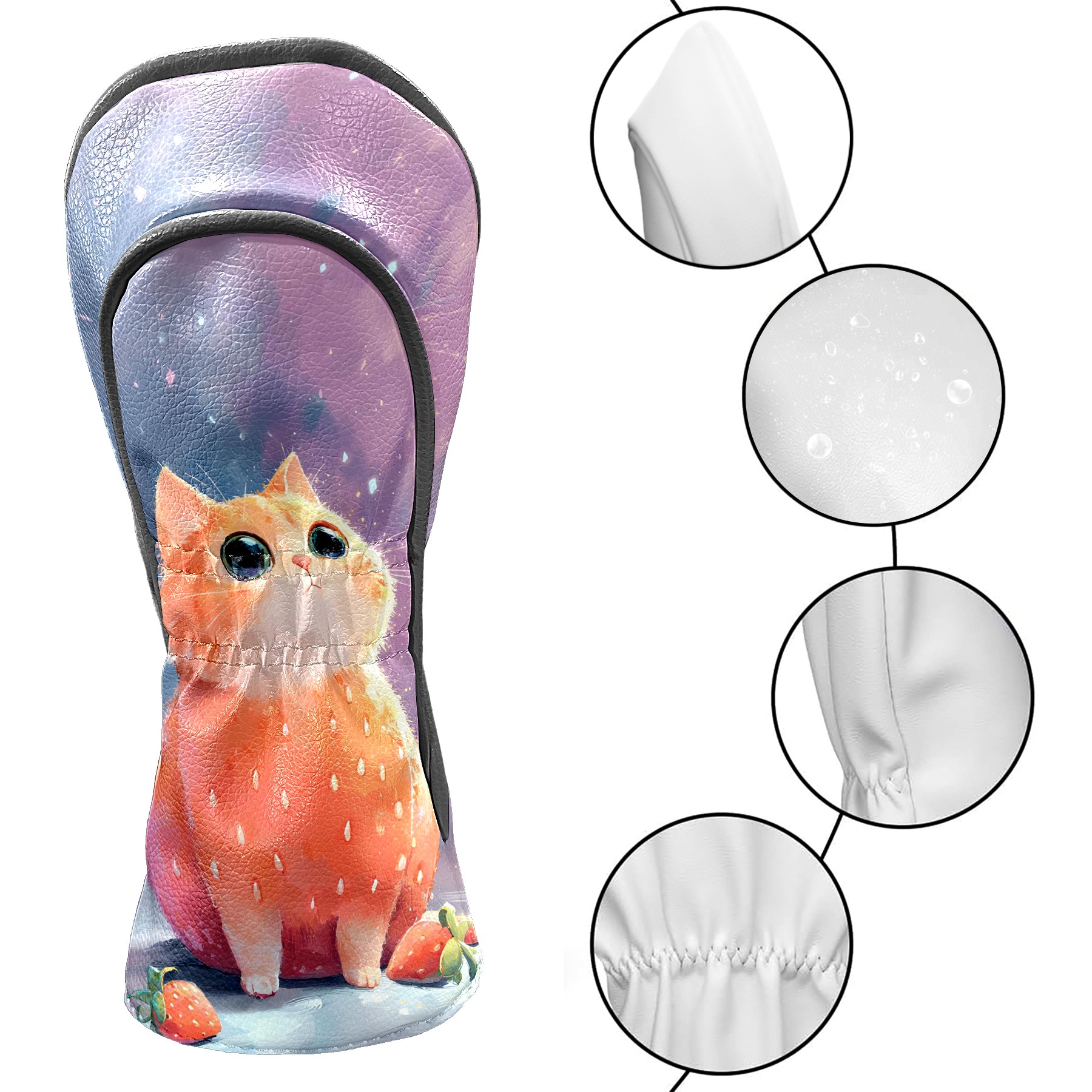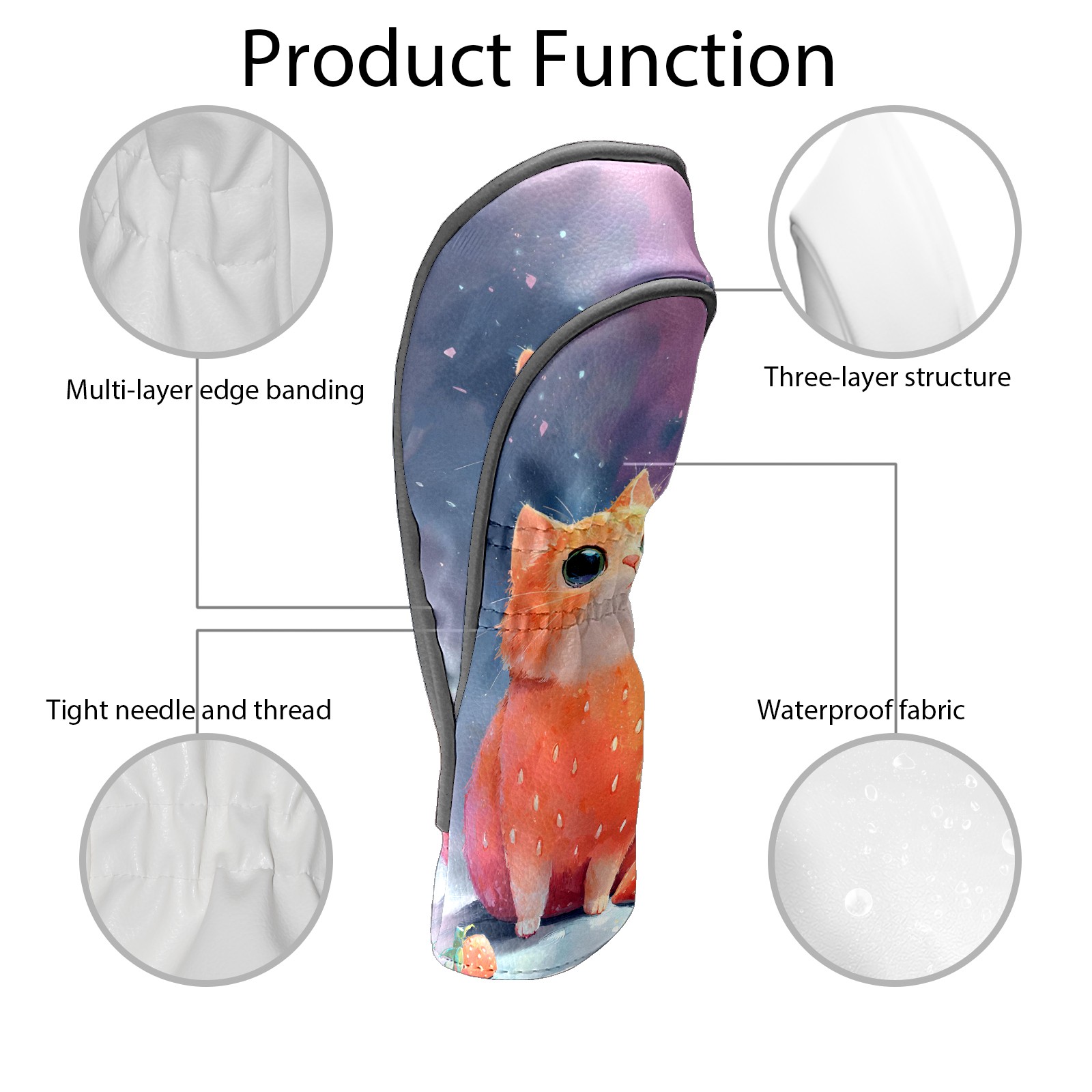 Golf Club Head Covers Counullo for Driver & Fairway Woods Orange Cat Premium Plush Velvet Lining, Waterproof Golf Headcovers for Scratch Protection Novelty Gift for Men & Women