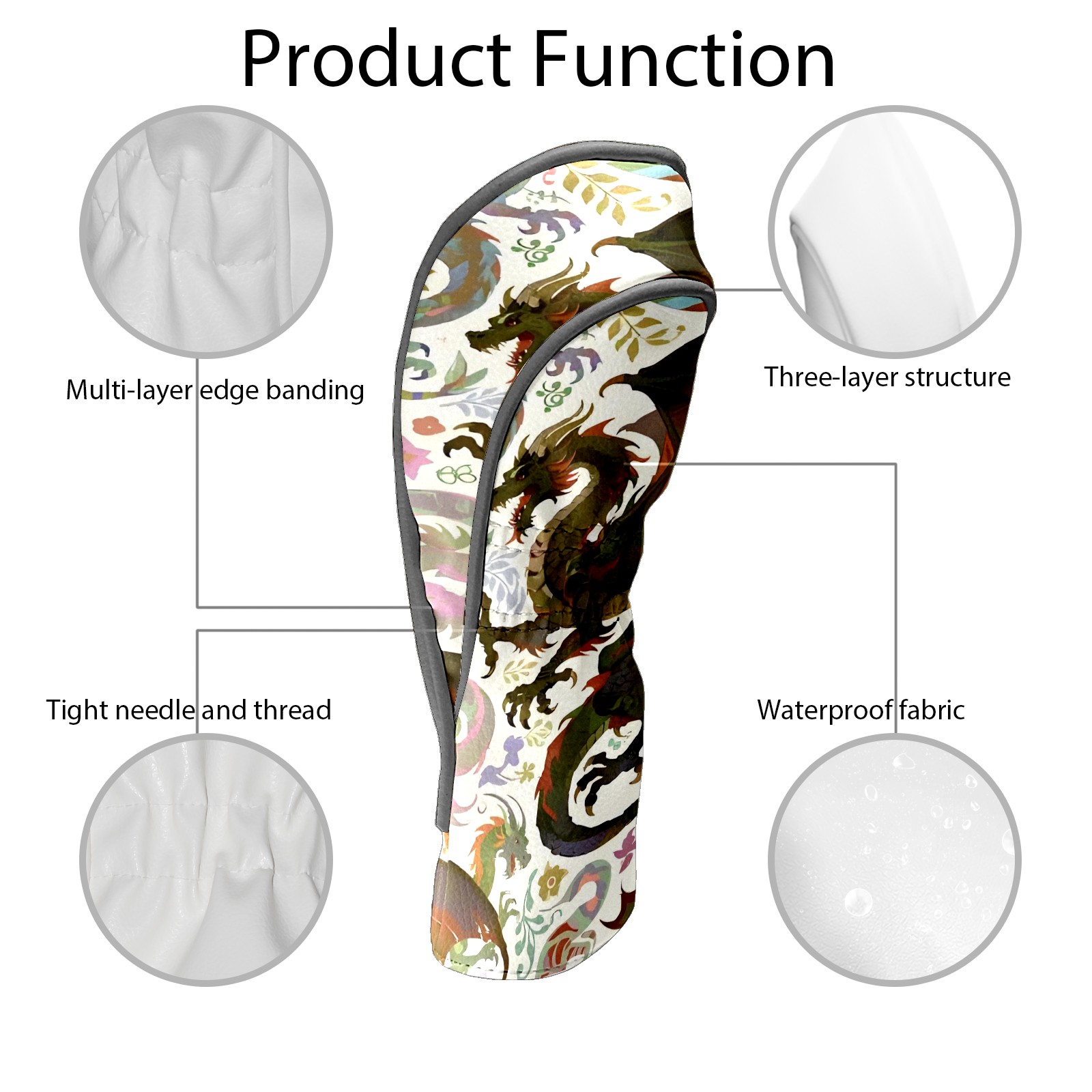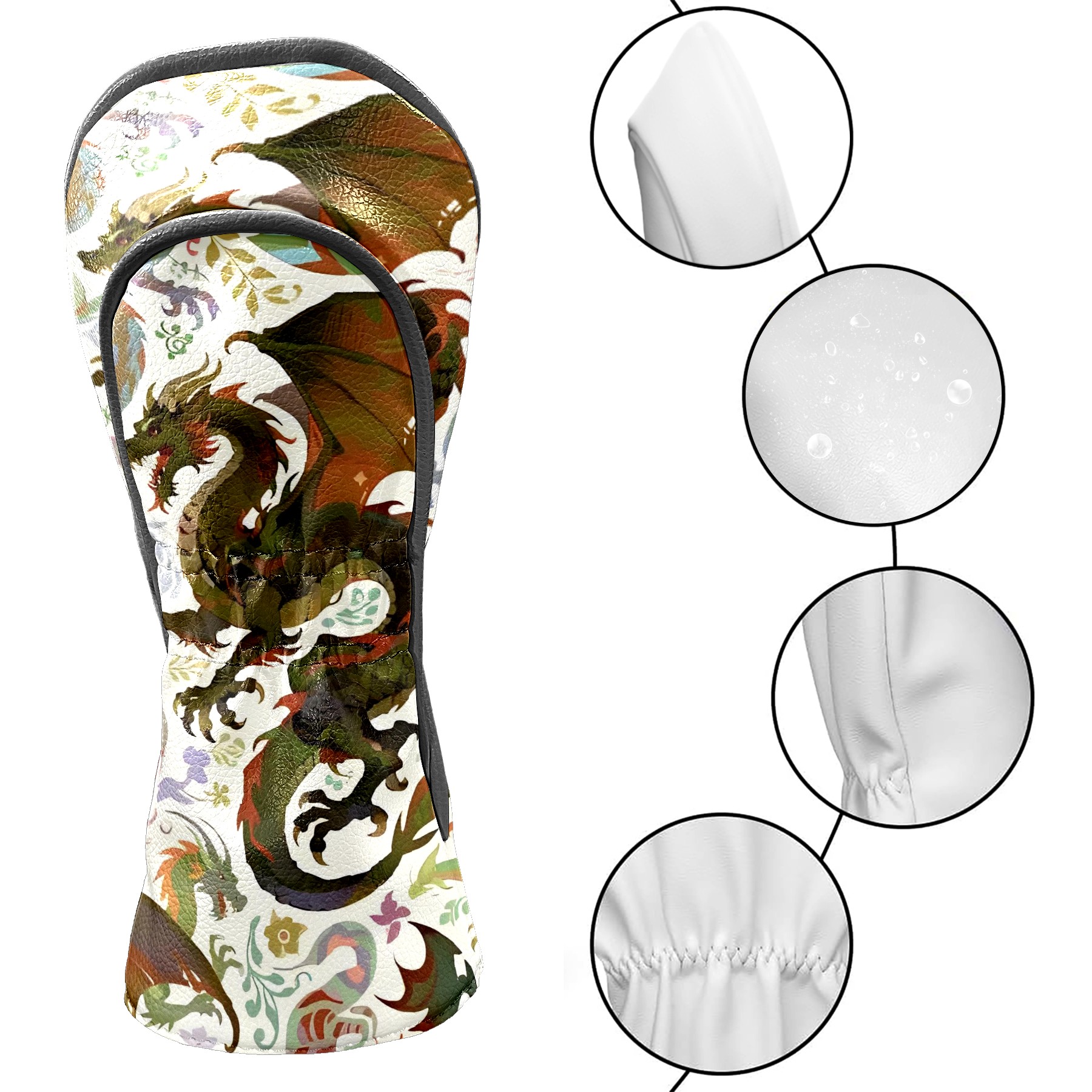 Golf Club Head Covers Counullo for Driver & Fairway Woods Green Dragon Premium Plush Velvet Lining, Waterproof Golf Headcovers for Scratch Protection Novelty Gift for Men & Women