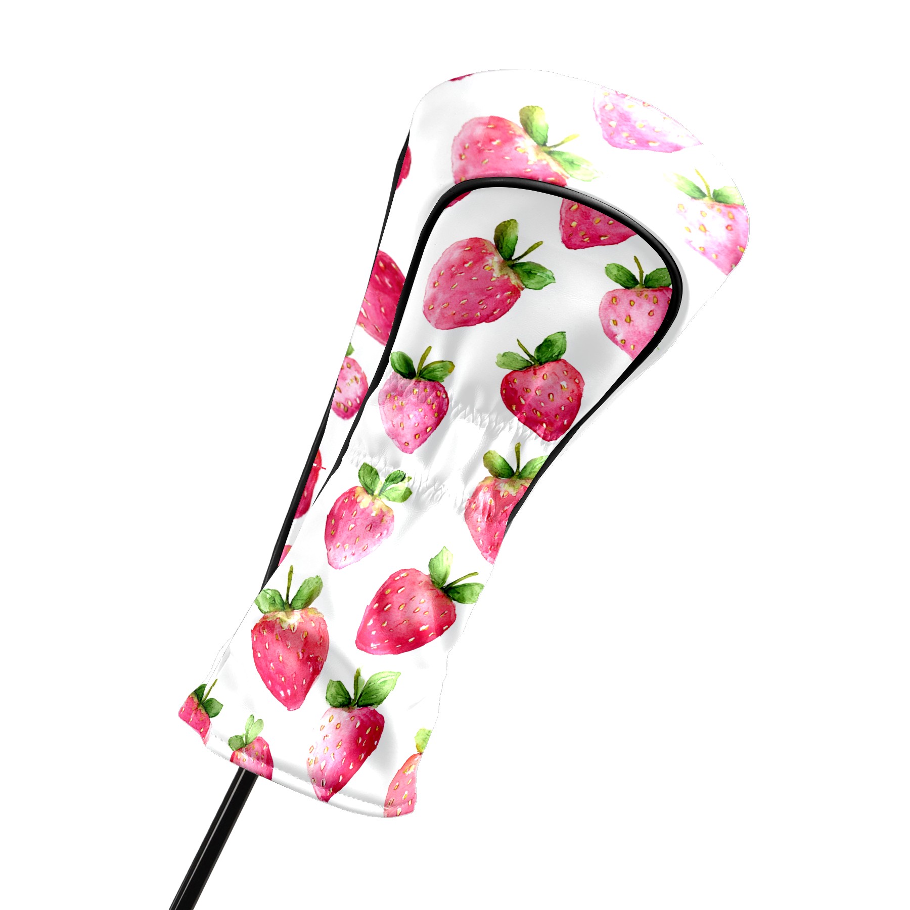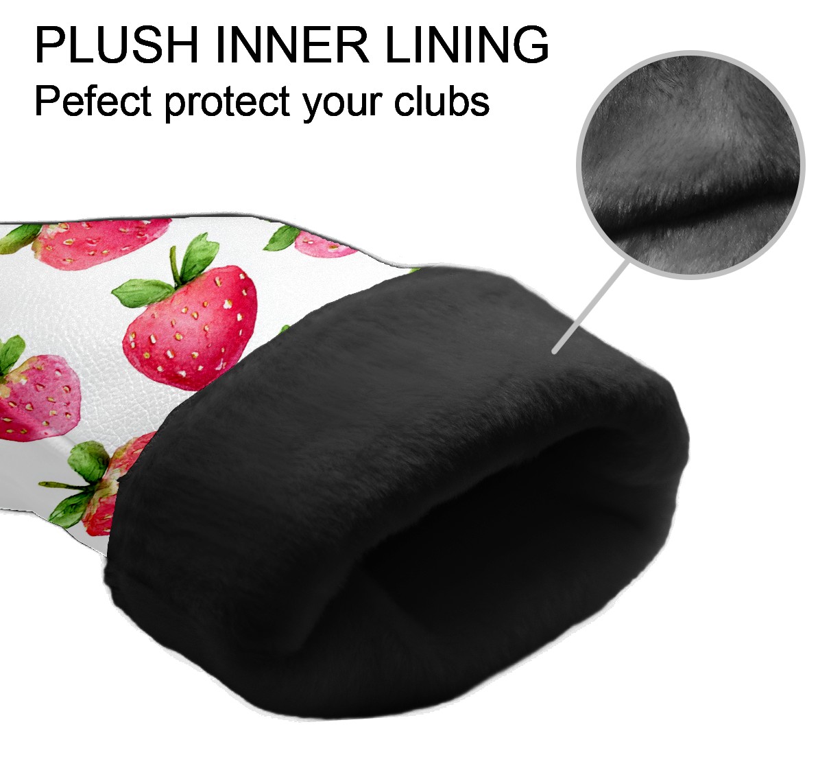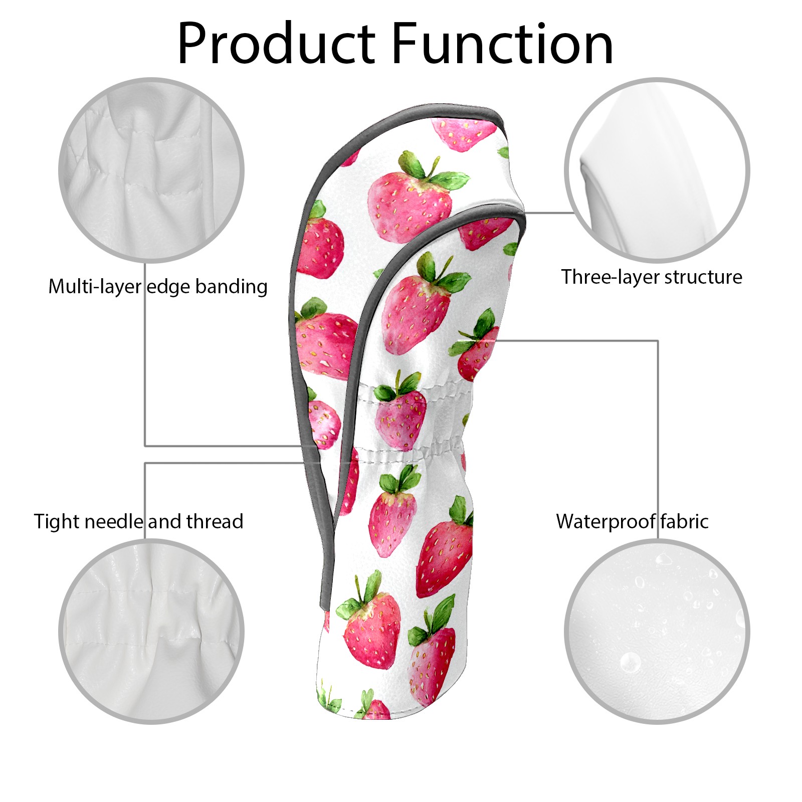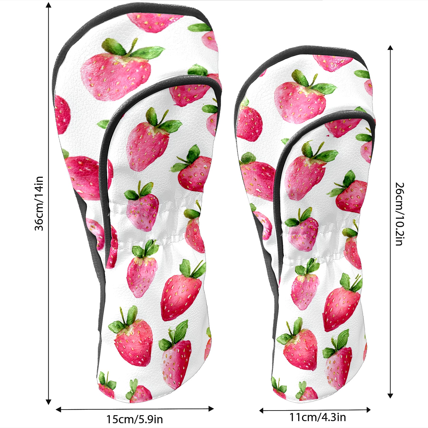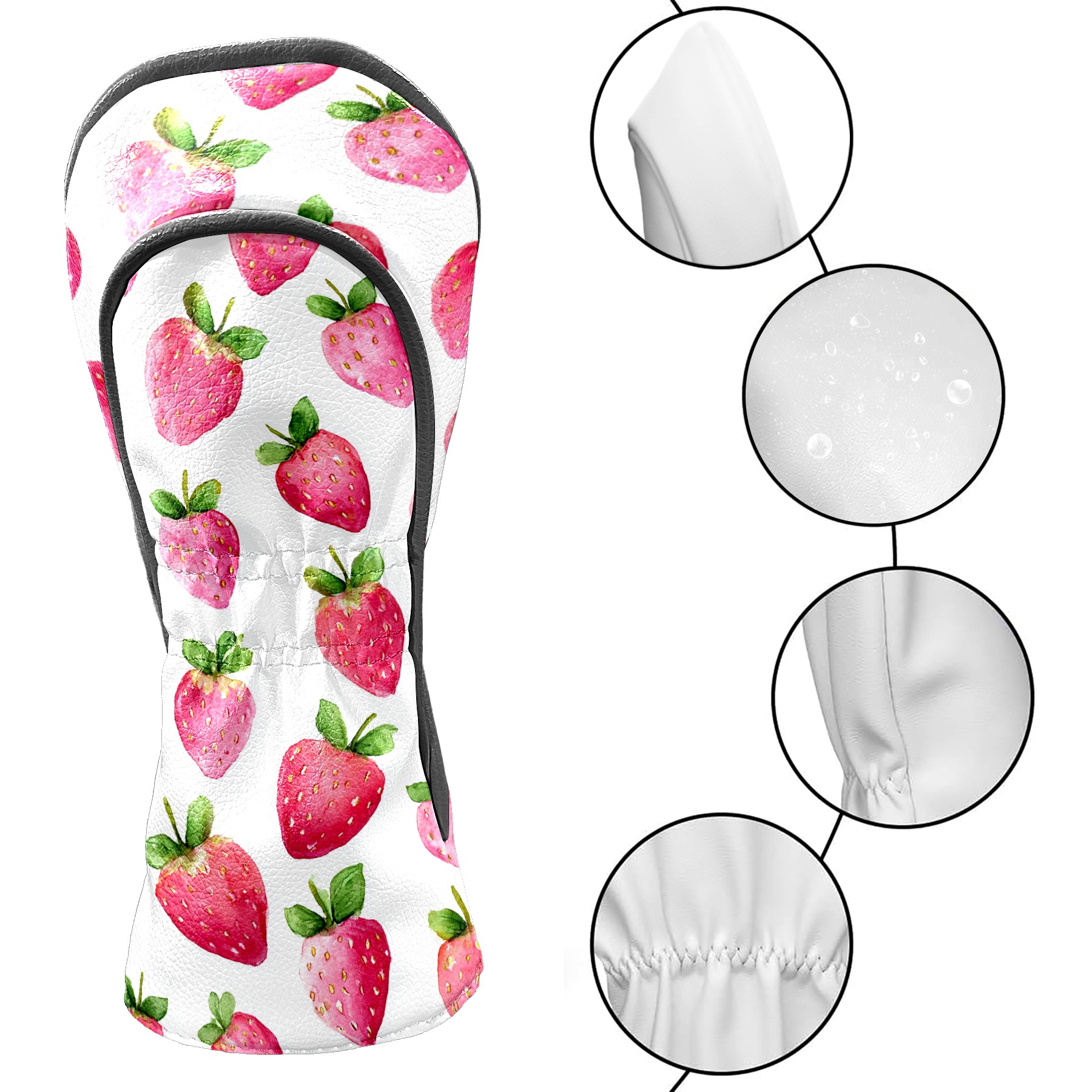 Golf Club Head Covers Counullo for Driver & Fairway Woods Pink Strawberry Premium Plush Velvet Lining, Waterproof Golf Headcovers for Scratch Protection Novelty Gift for Men & Women