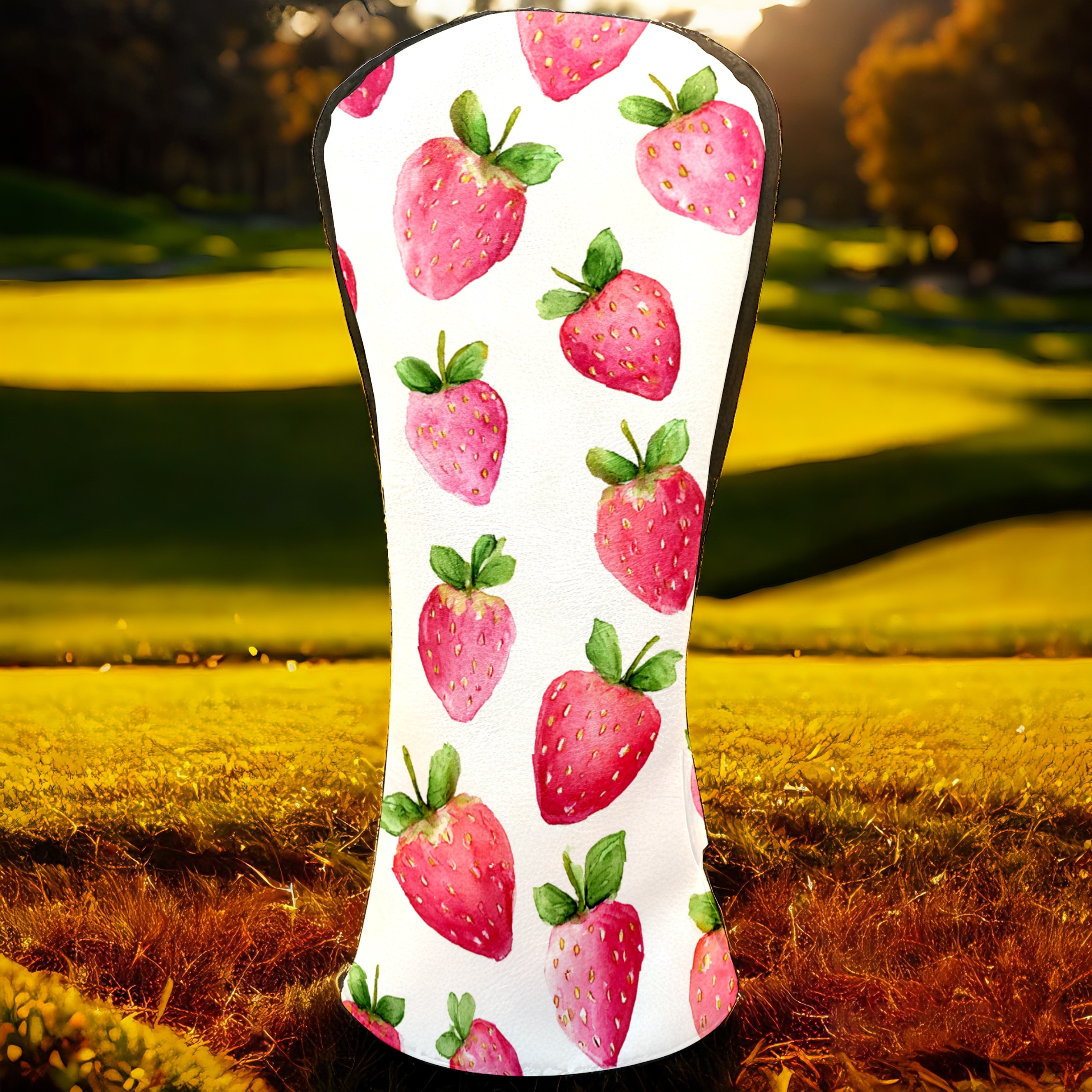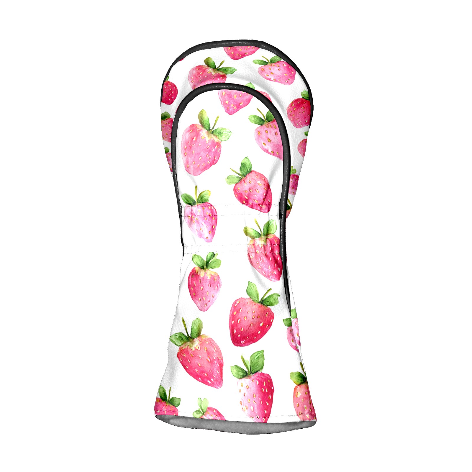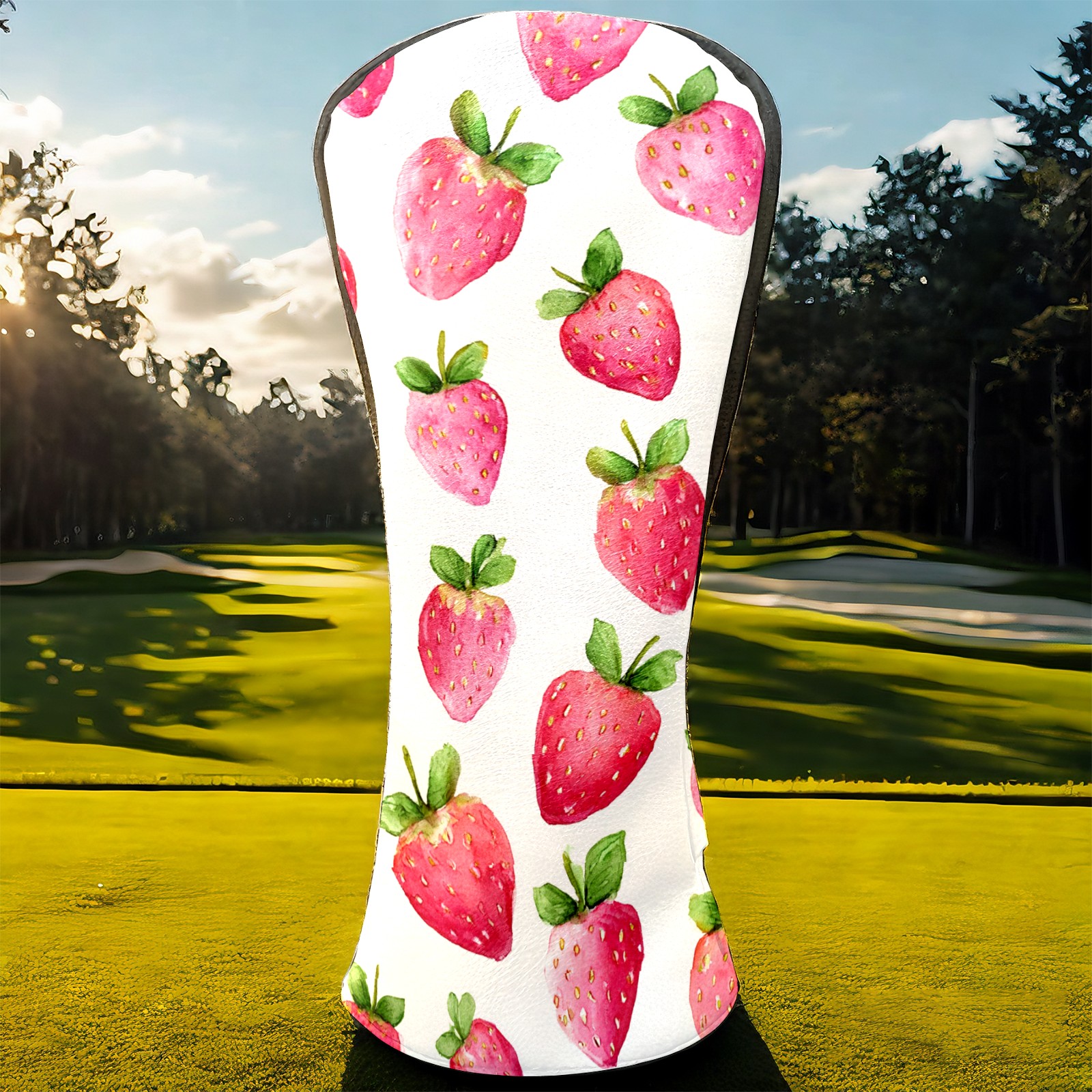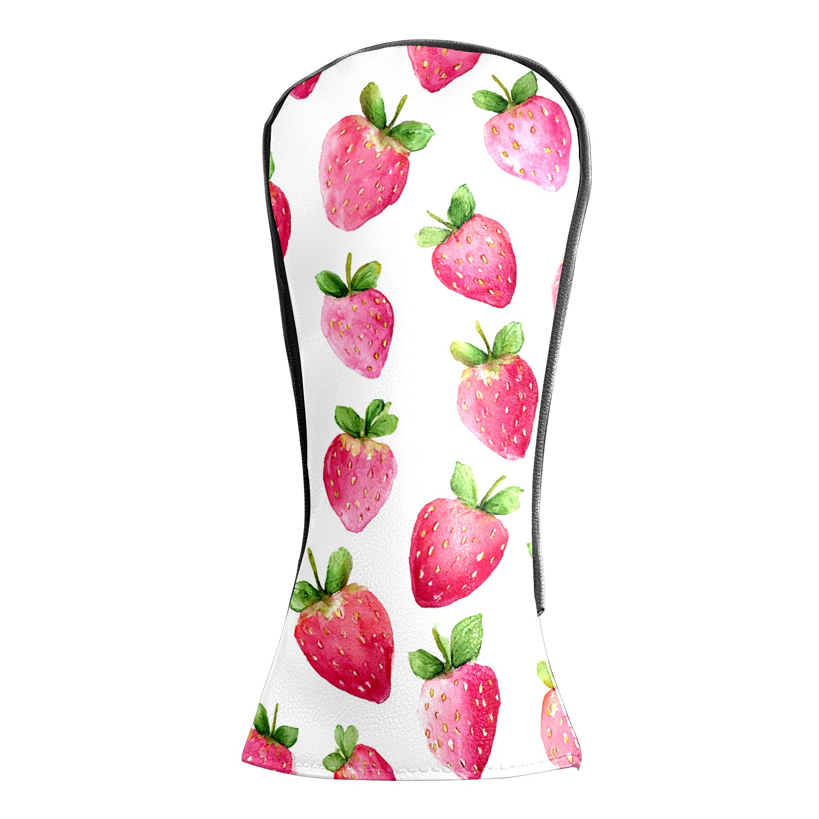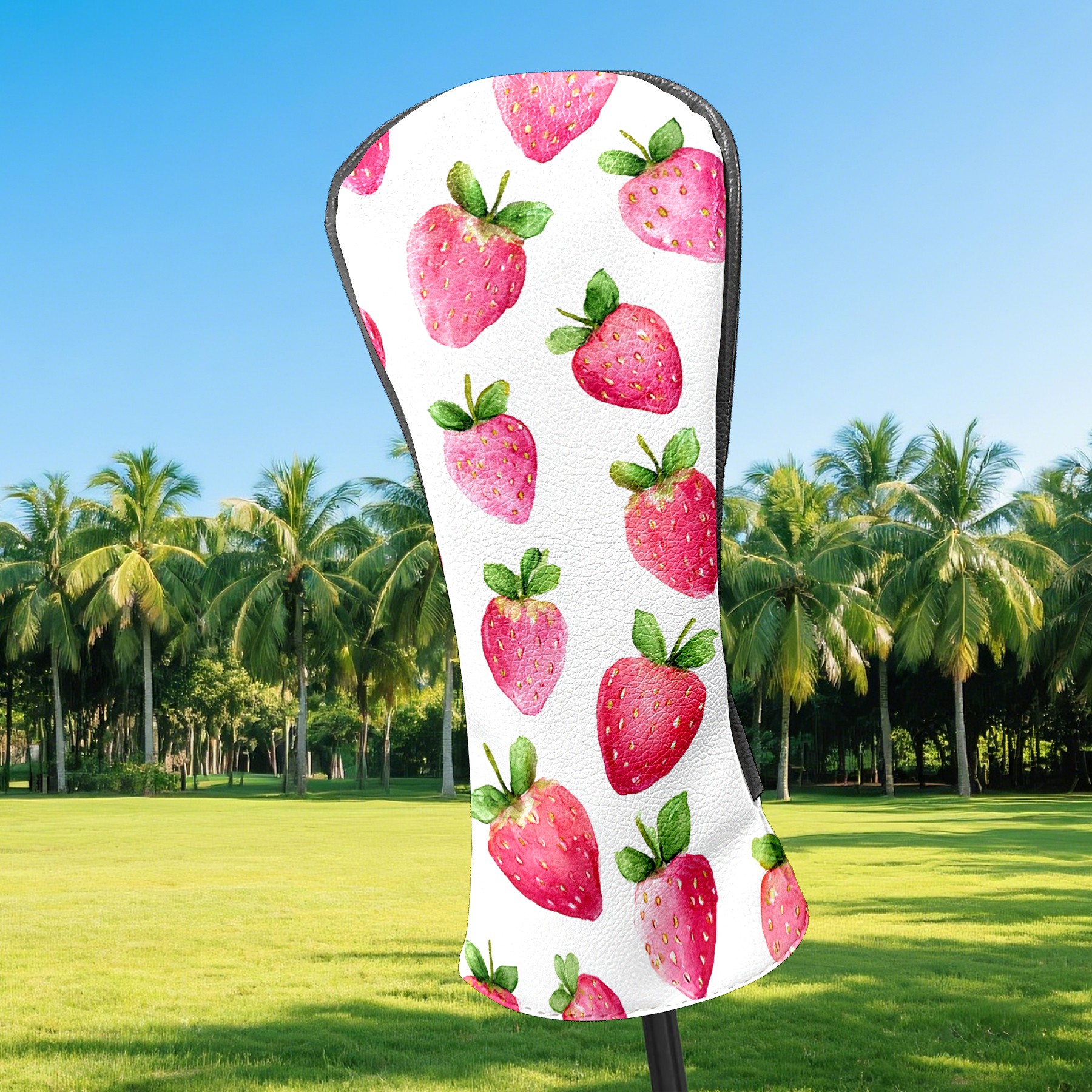 Golf Club Head Covers Counullo for Driver & Fairway Woods Pink Strawberry Premium Plush Velvet Lining, Waterproof Golf Headcovers for Scratch Protection Novelty Gift for Men & Women