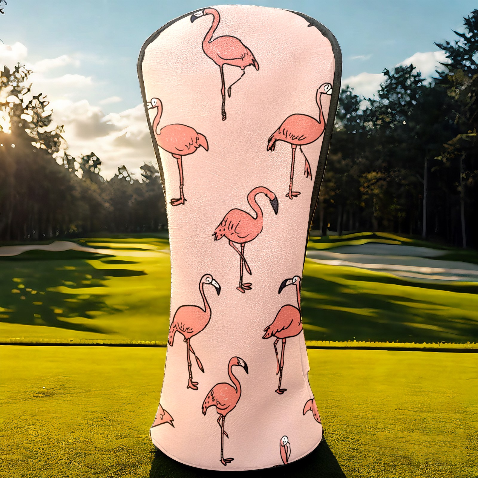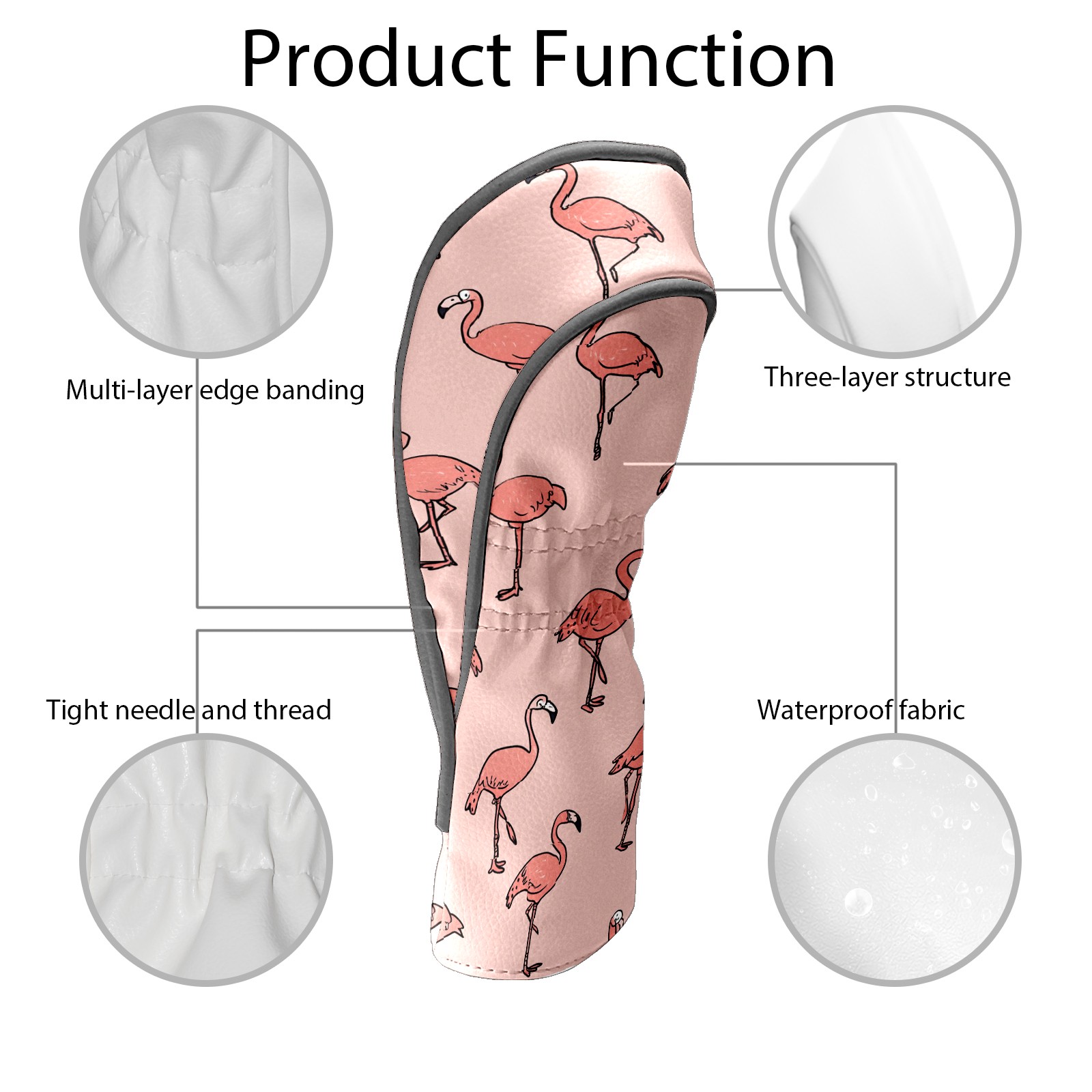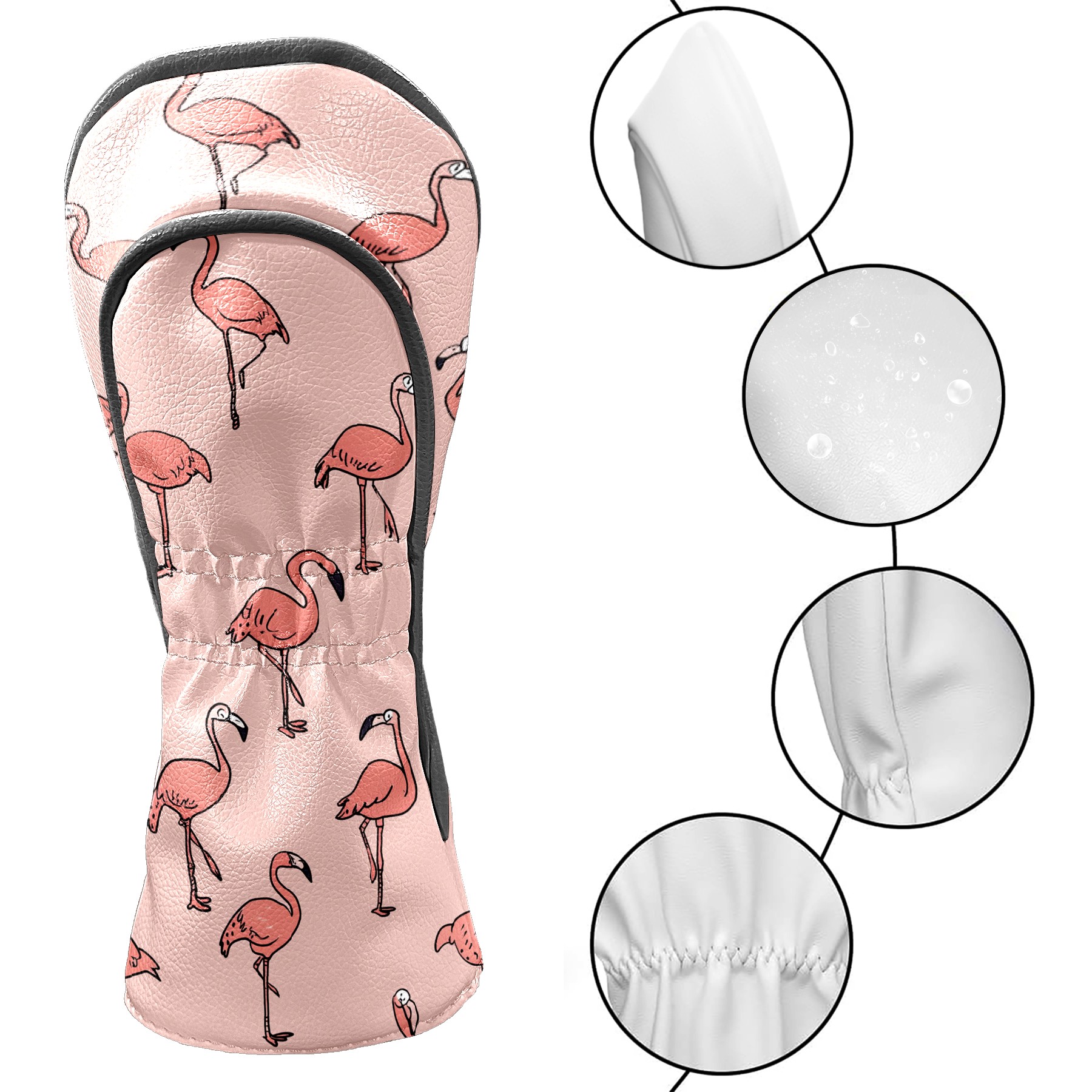 Golf Club Head Covers Counullo for Driver & Fairway Woods Pink Flamingo Premium Plush Velvet Lining, Waterproof Golf Headcovers for Scratch Protection Novelty Gift for Men & Women