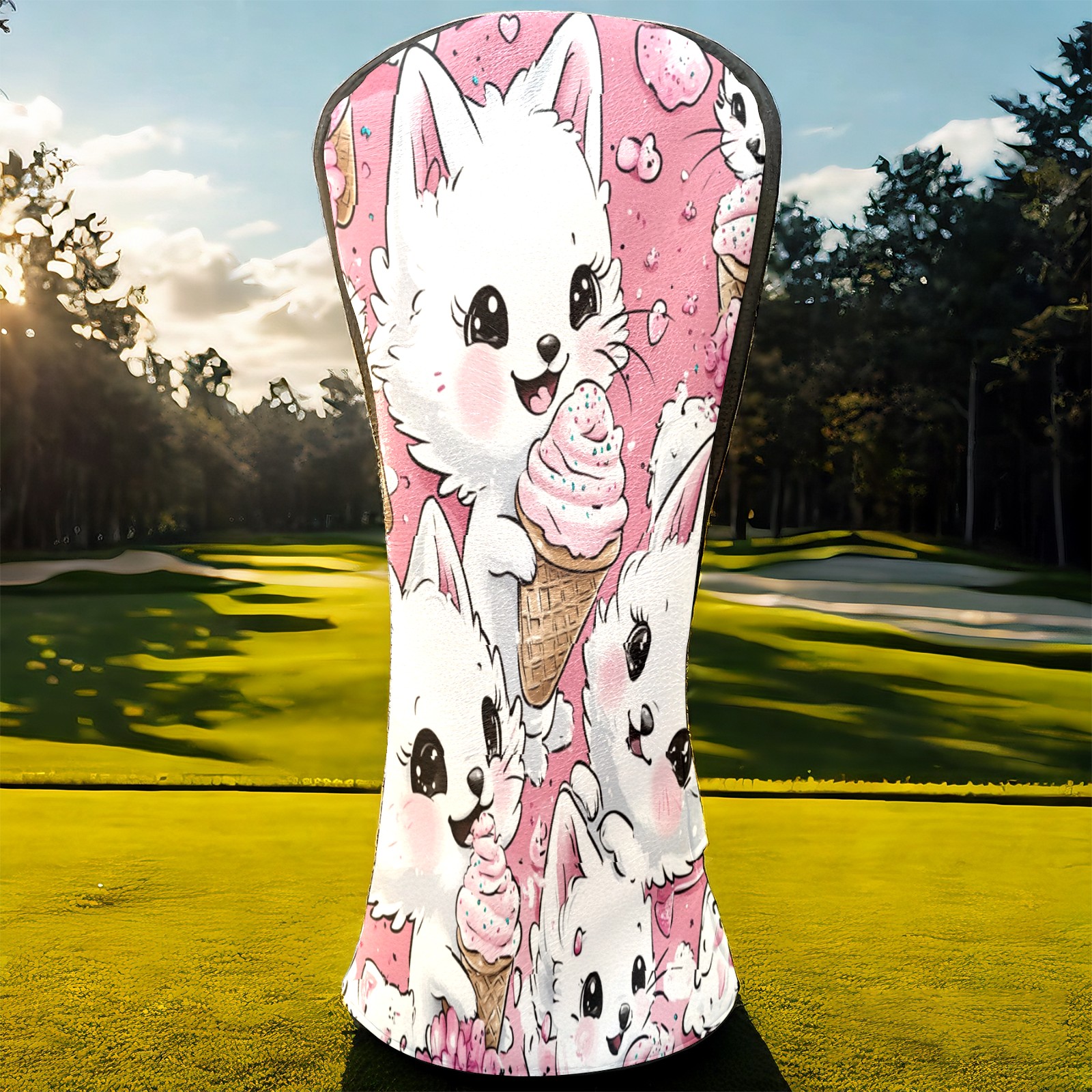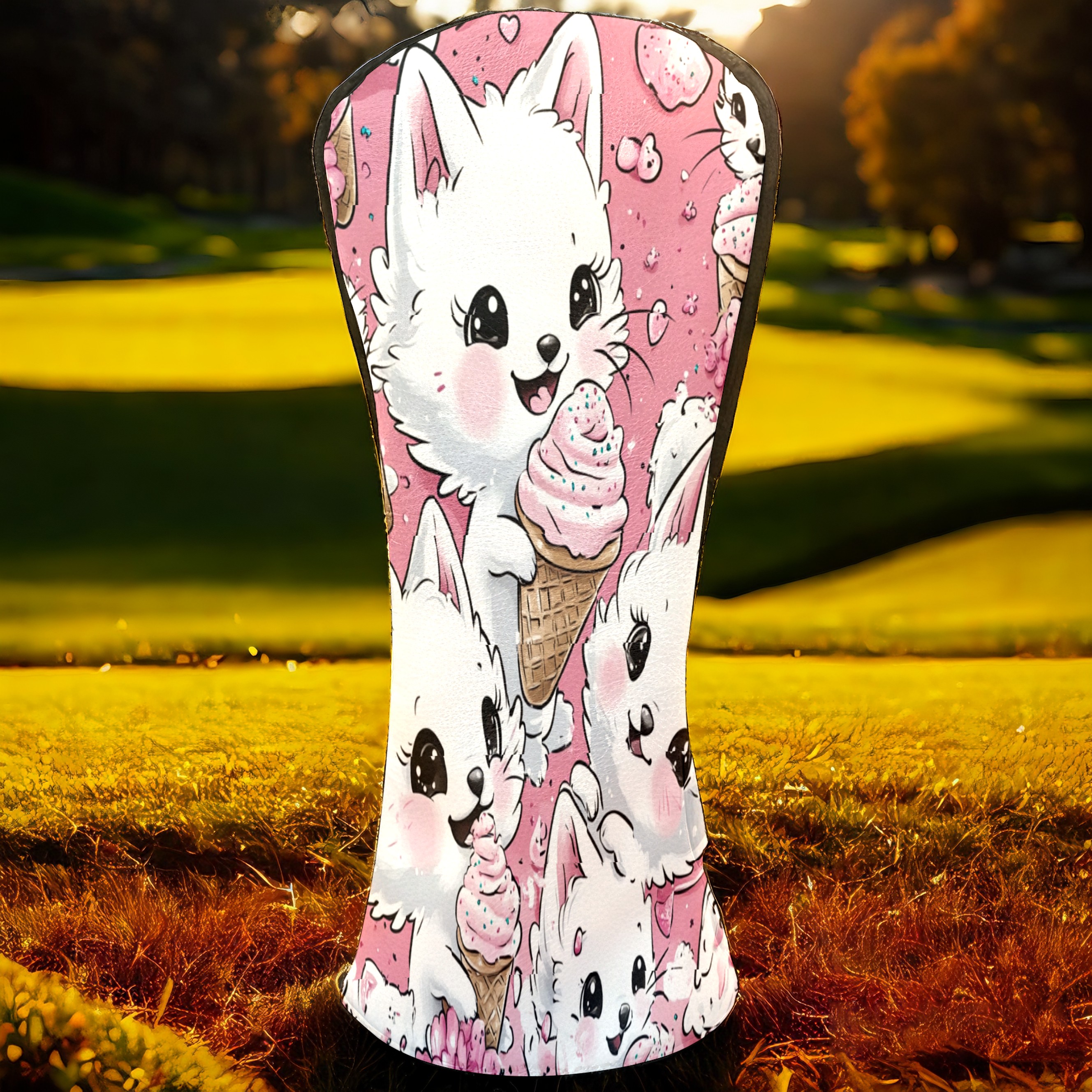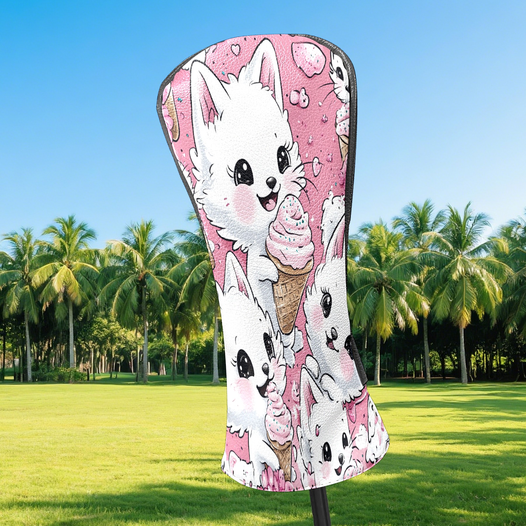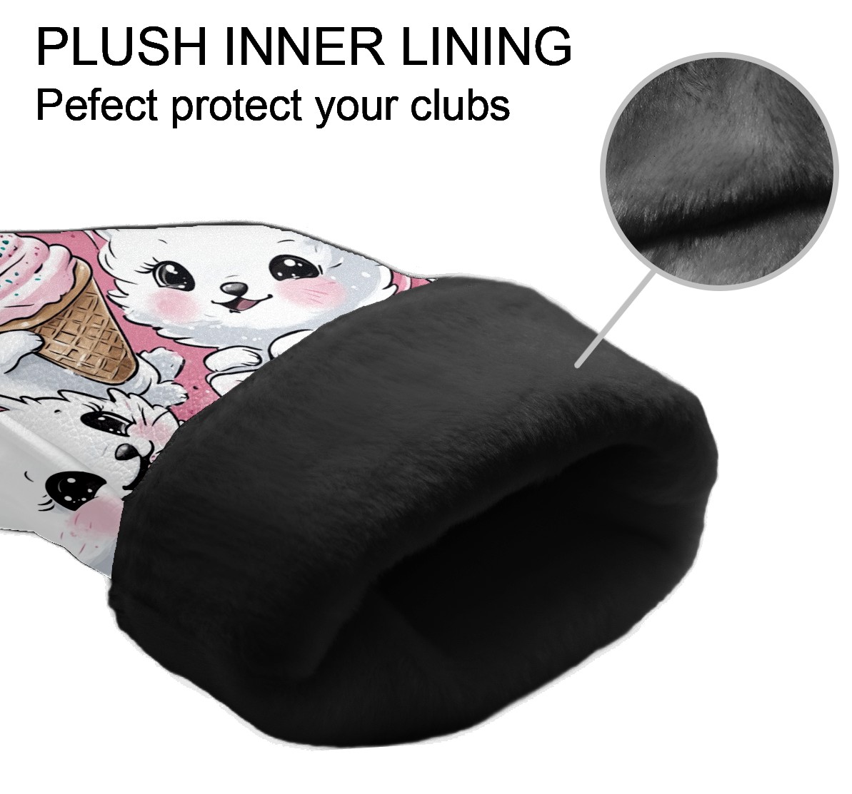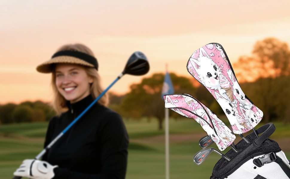 Golf Club Head Covers Counullo for Driver & Fairway Woods Pink CatIcecream Premium Plush Velvet Lining, Waterproof Golf Headcovers for Scratch Protection Novelty Gift for Men & Women