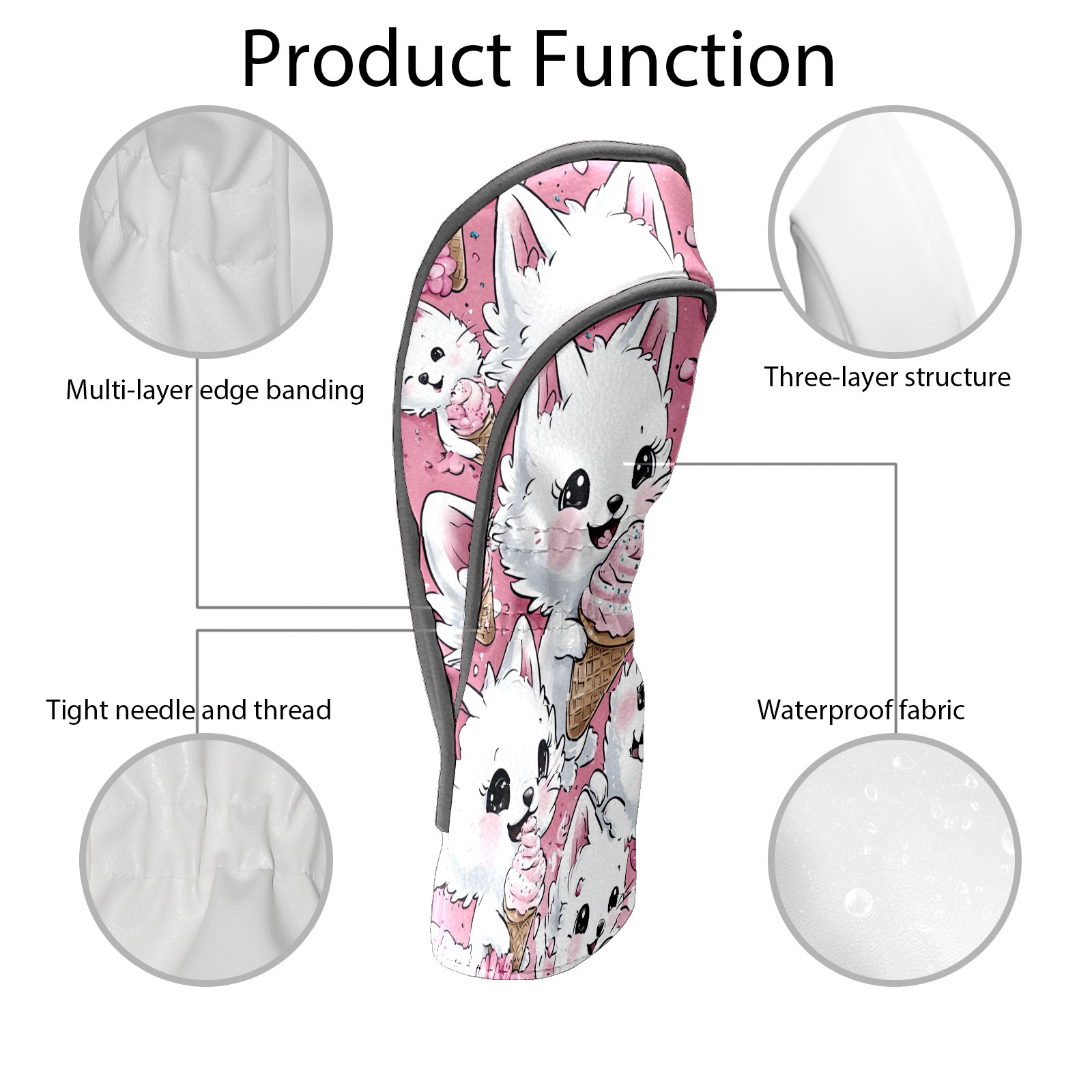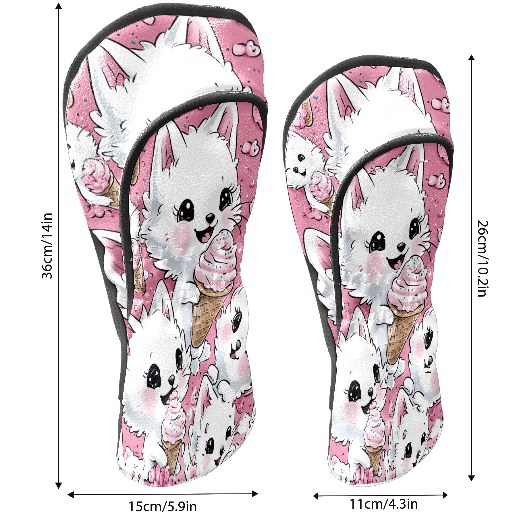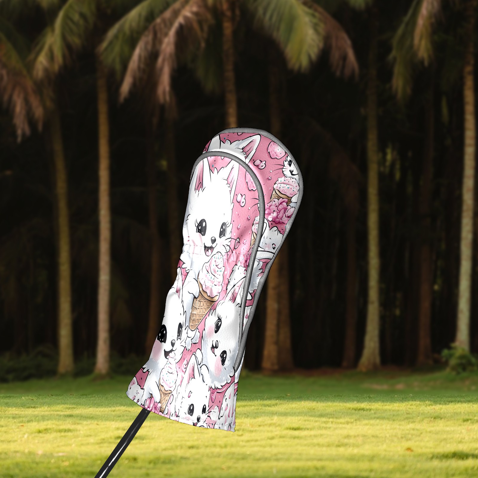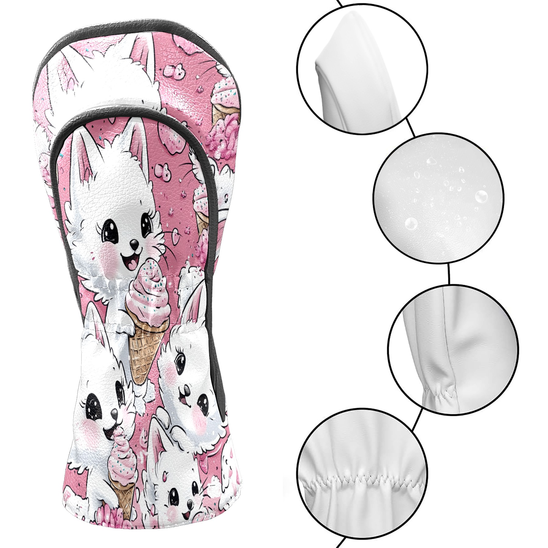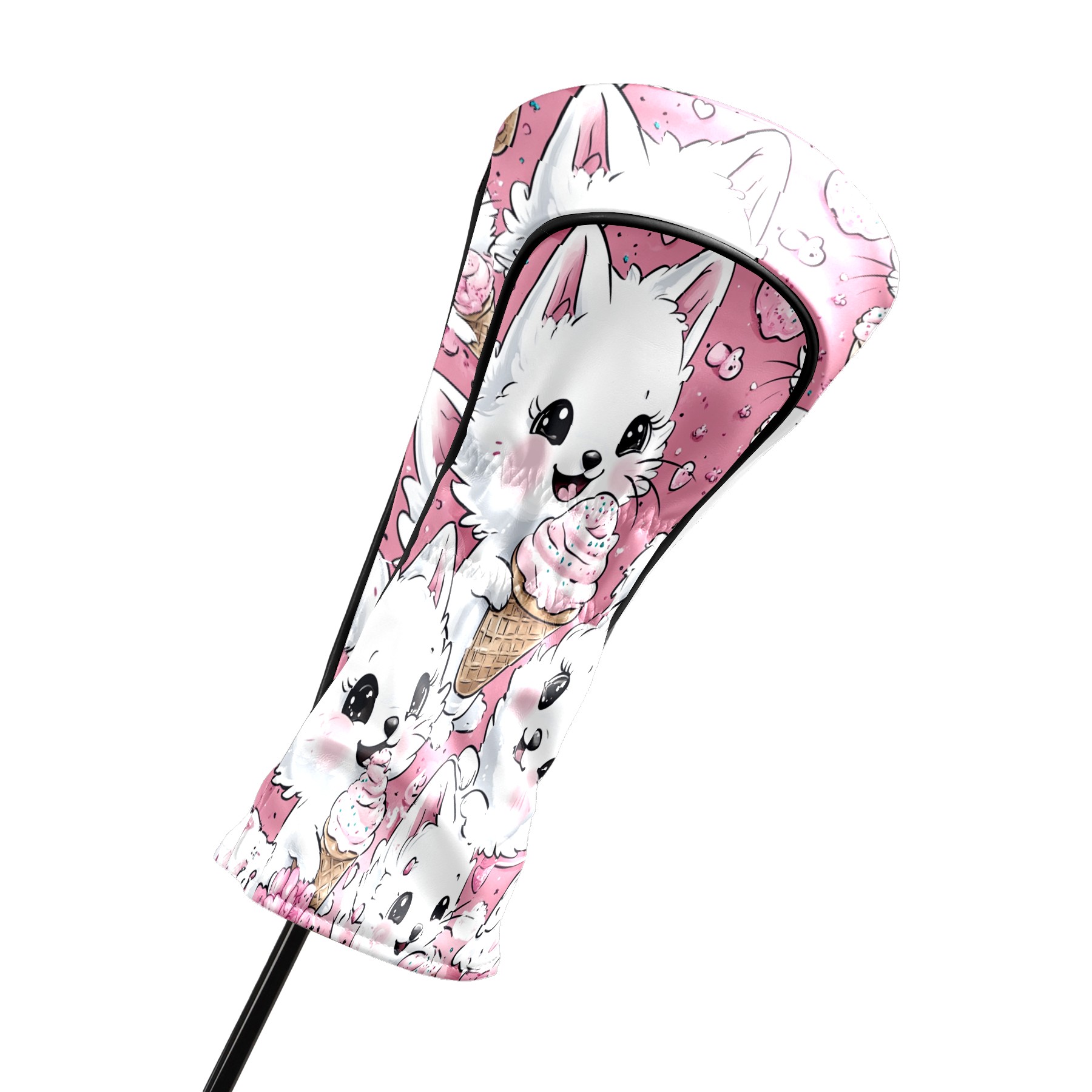 Golf Club Head Covers Counullo for Driver & Fairway Woods Pink CatIcecream Premium Plush Velvet Lining, Waterproof Golf Headcovers for Scratch Protection Novelty Gift for Men & Women