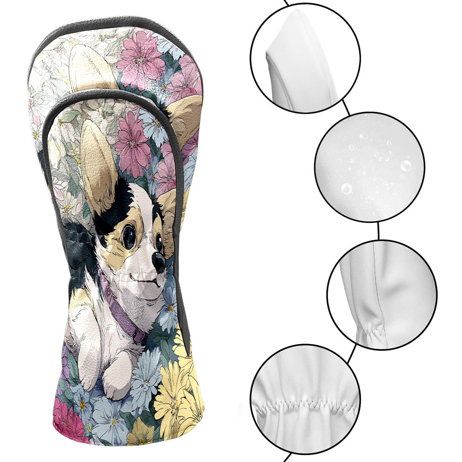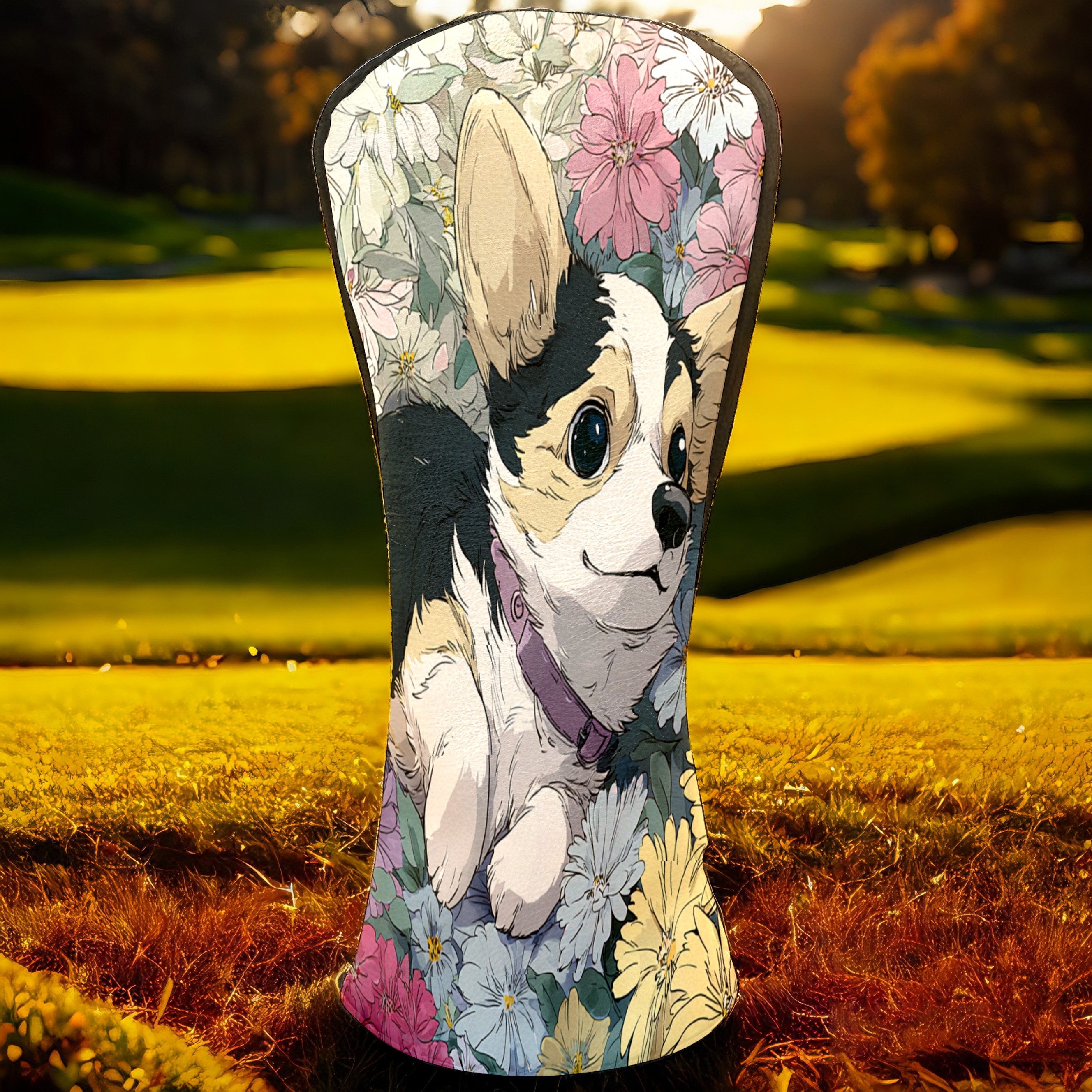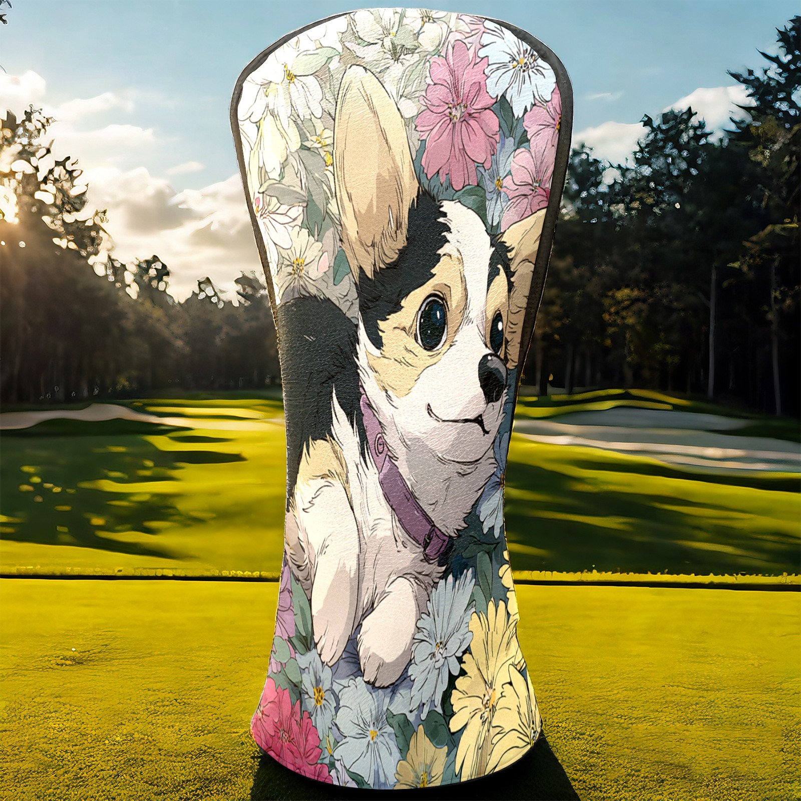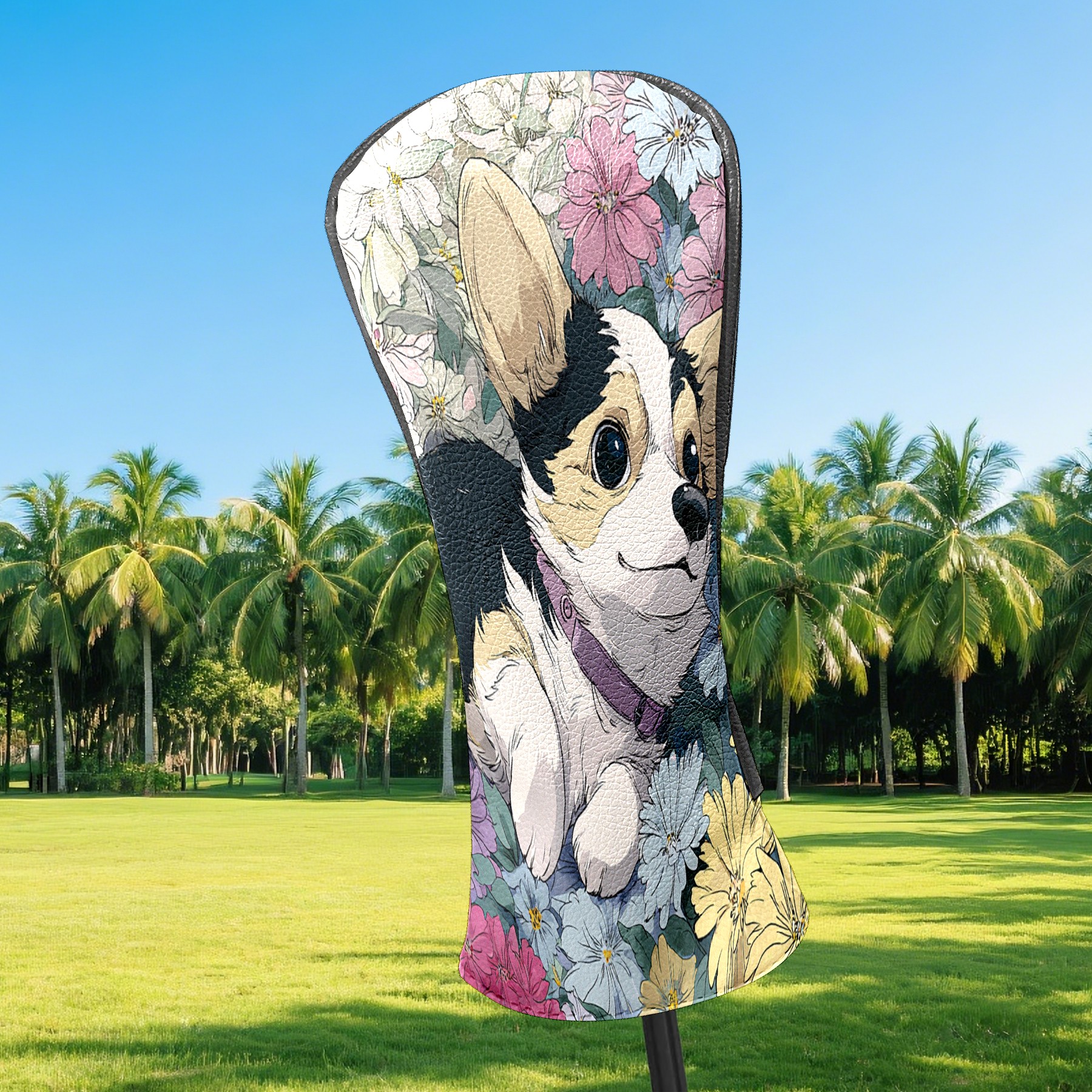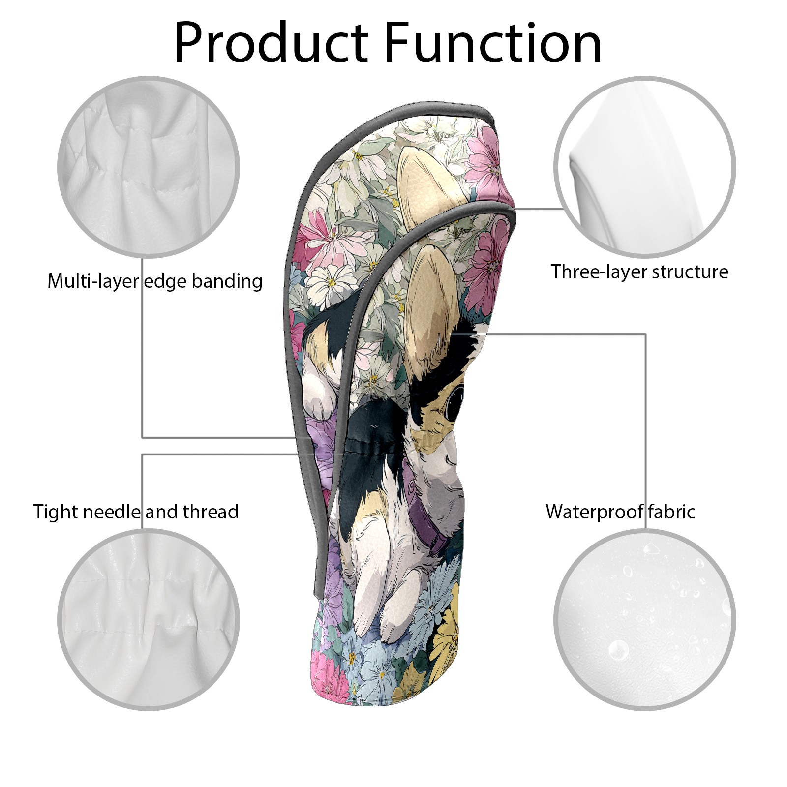 Golf Club Head Covers Counullo for Driver & Fairway Woods Colorful CorgiFlower Premium Plush Velvet Lining, Waterproof Golf Headcovers for Scratch Protection Novelty Gift for Men & Women