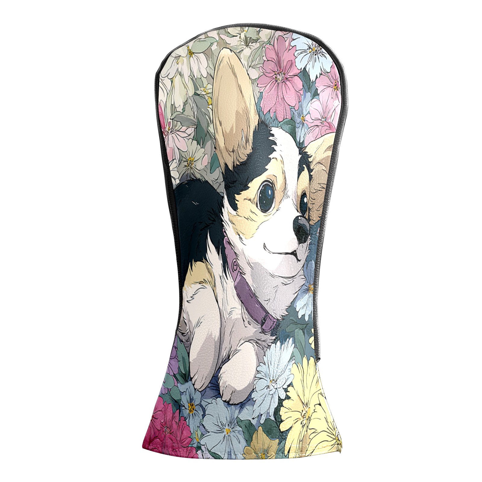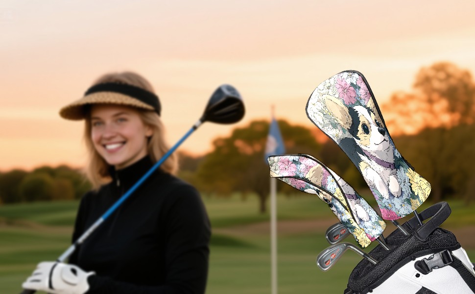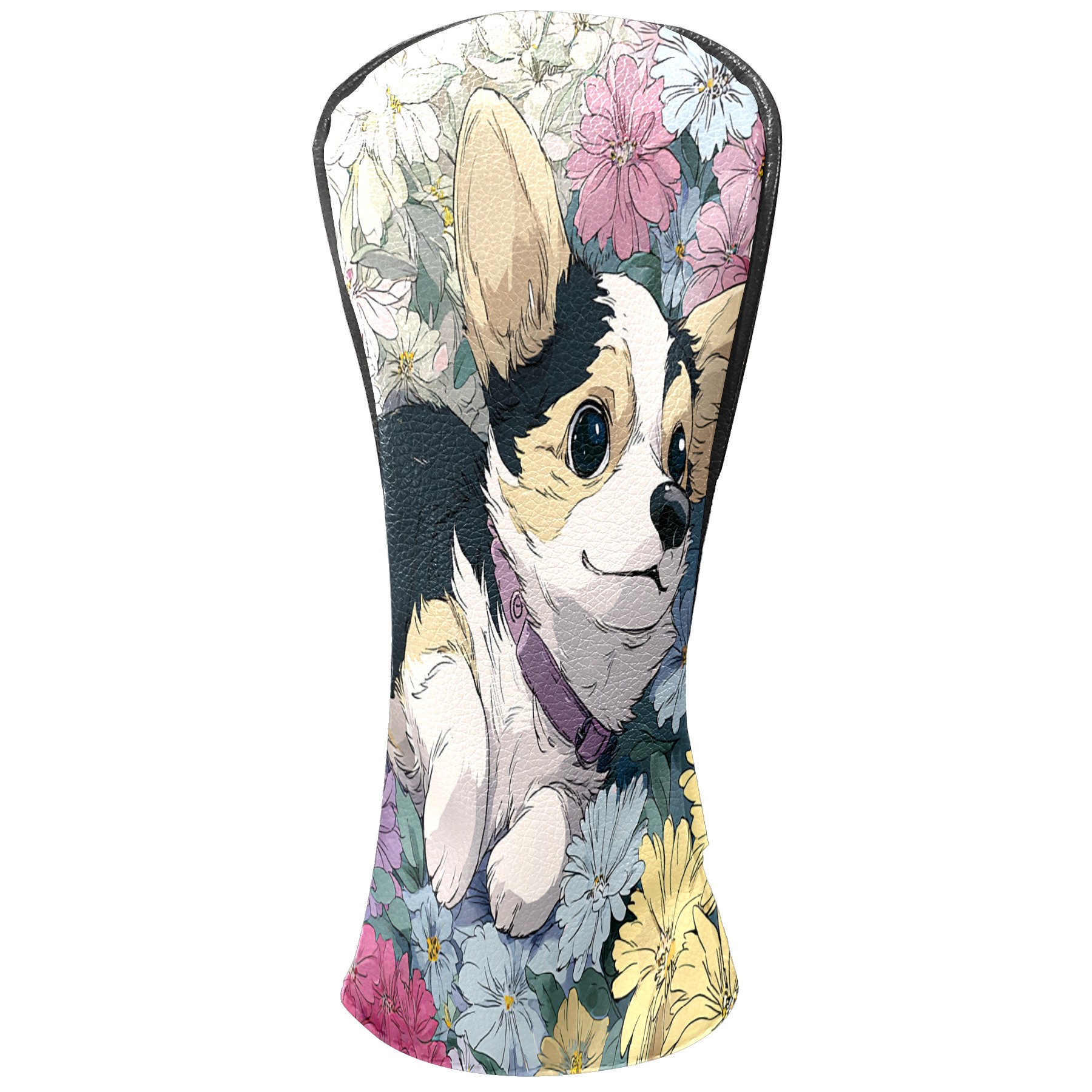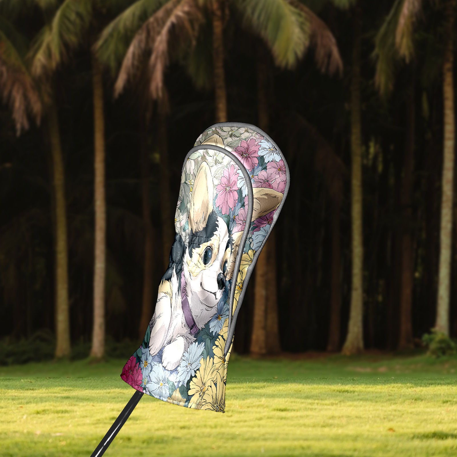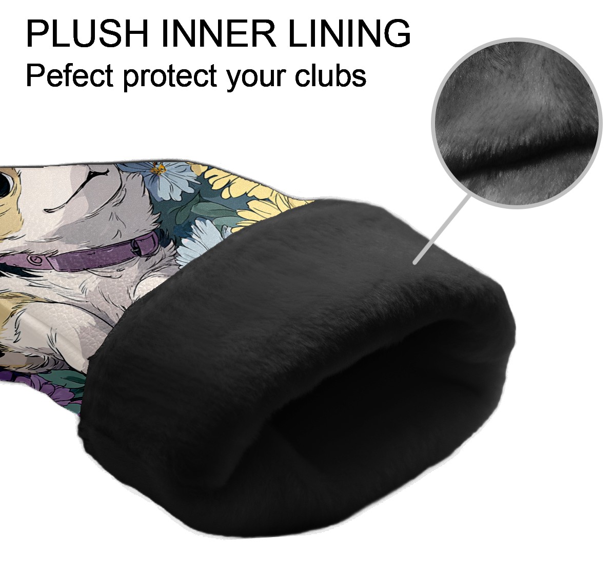 Golf Club Head Covers Counullo for Driver & Fairway Woods Colorful CorgiFlower Premium Plush Velvet Lining, Waterproof Golf Headcovers for Scratch Protection Novelty Gift for Men & Women