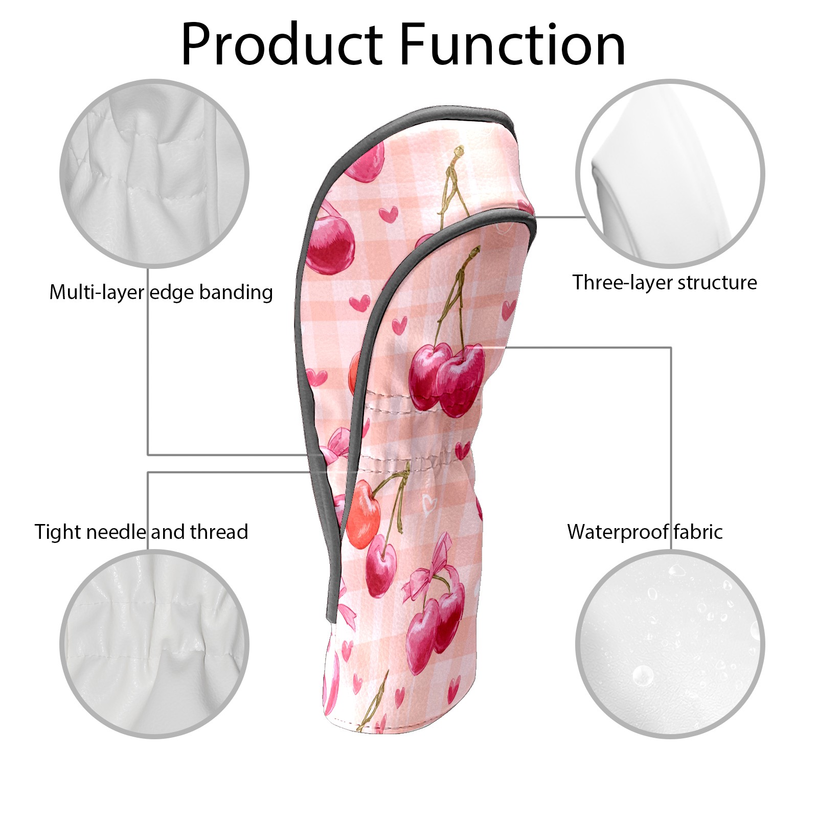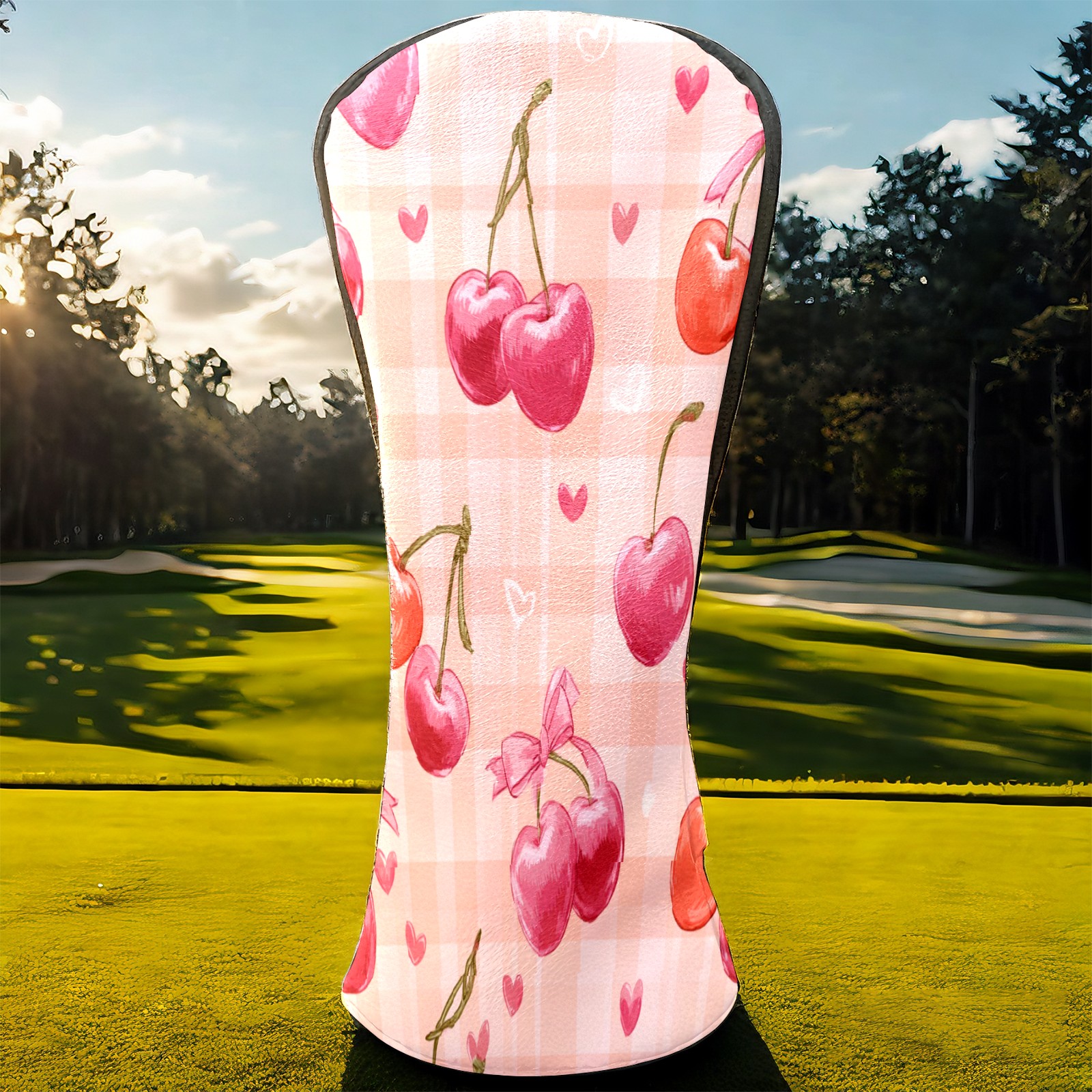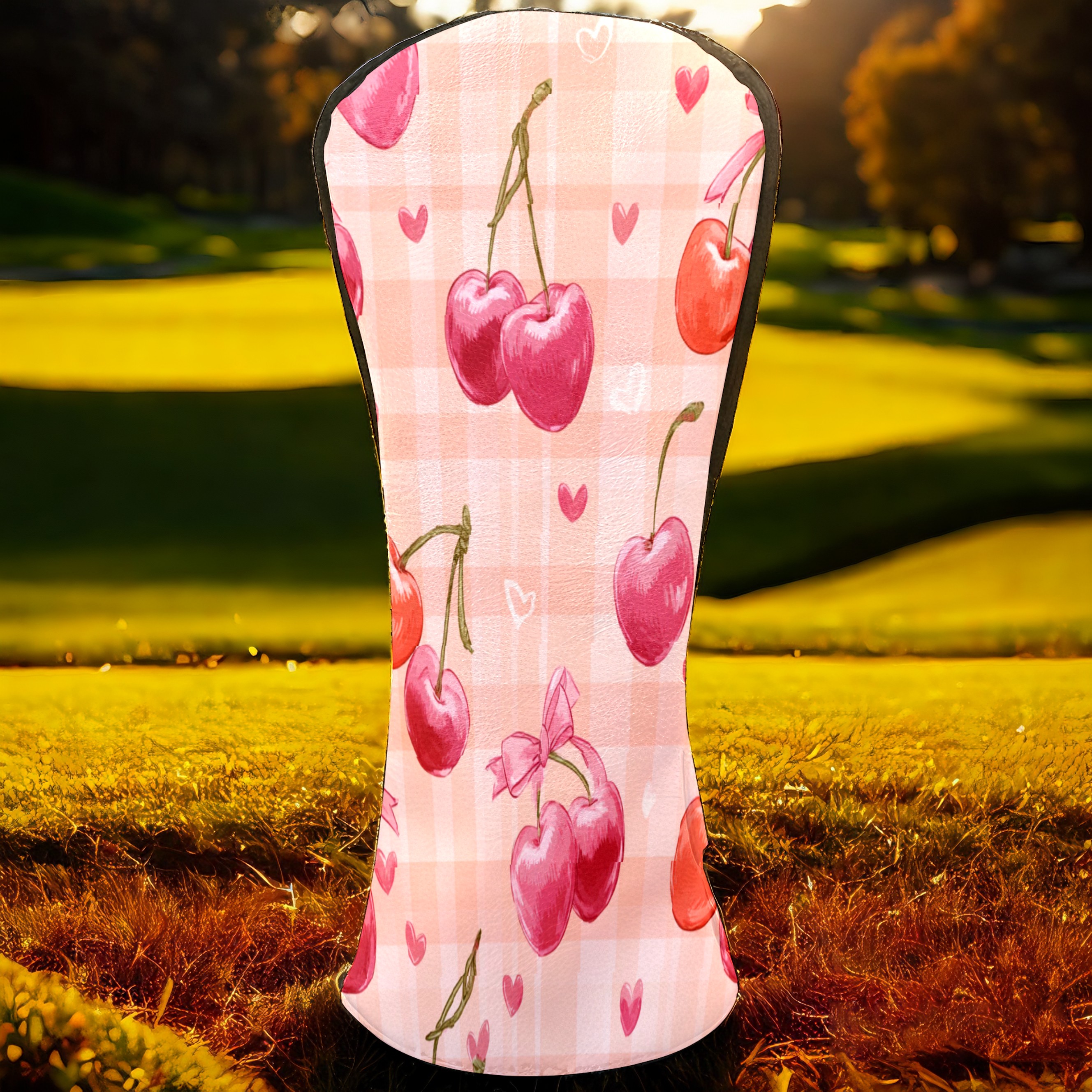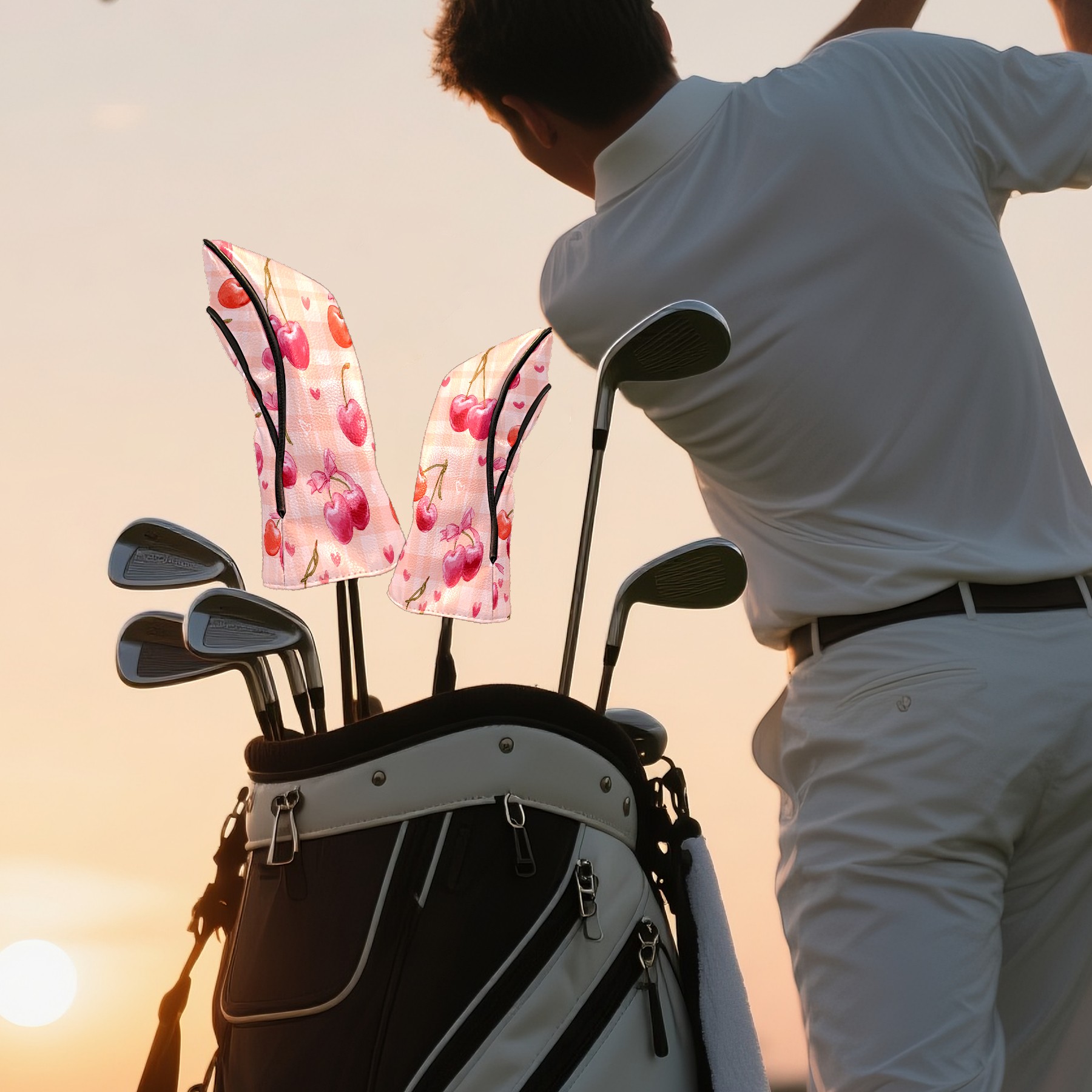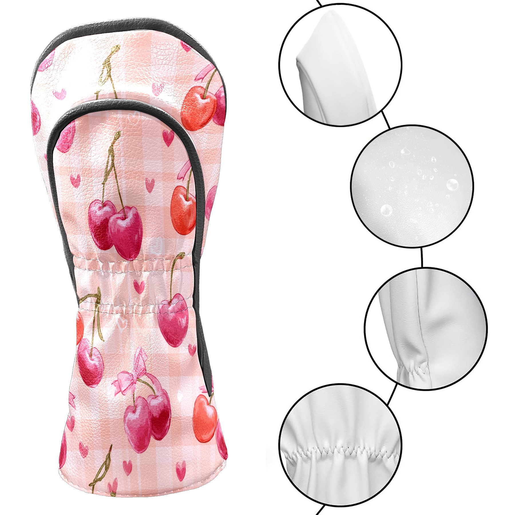 Golf Club Head Covers Counullo for Driver & Fairway Woods Pink Cherry Premium Plush Velvet Lining, Waterproof Golf Headcovers for Scratch Protection Novelty Gift for Men & Women