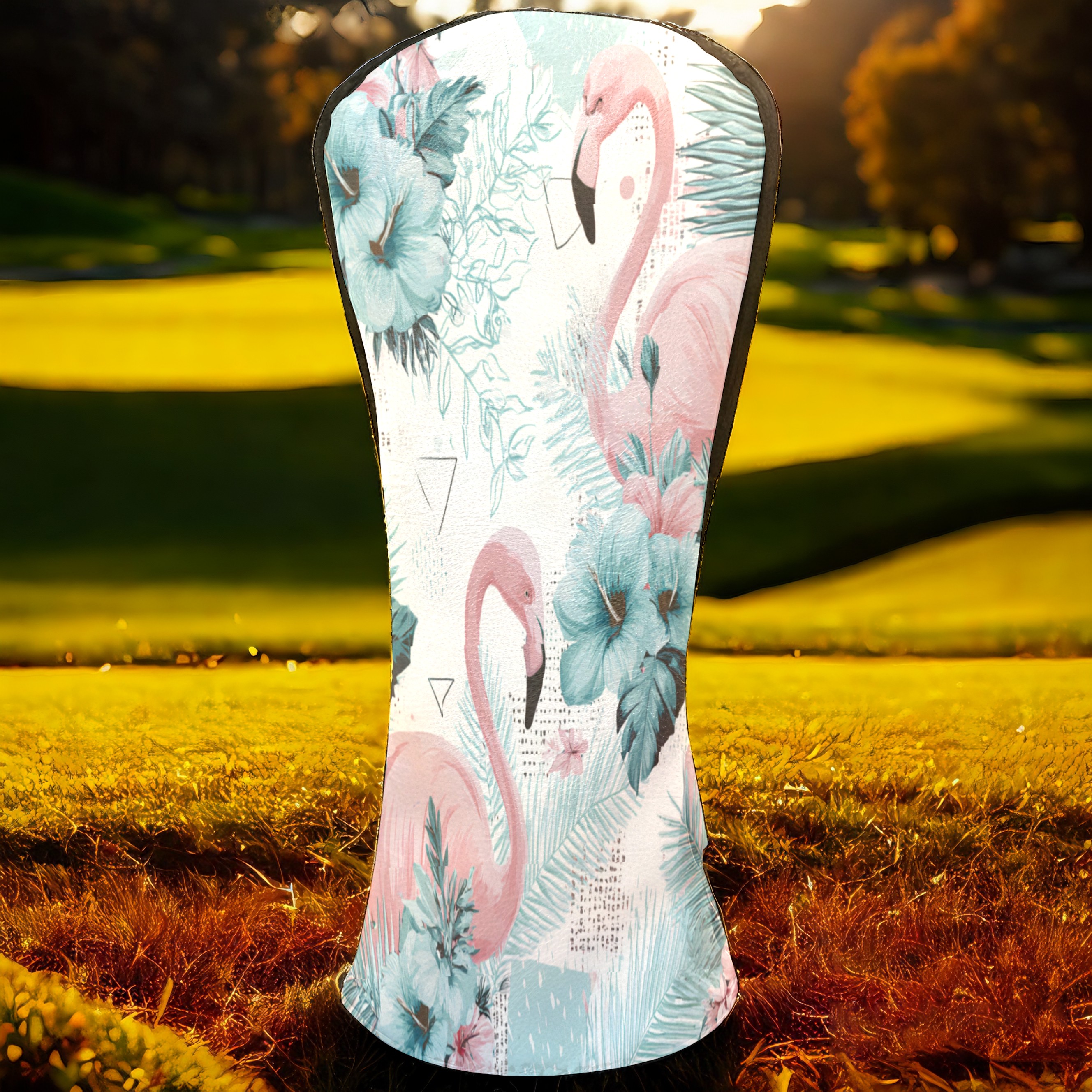 Golf Club Head Covers Counullo for Driver & Fairway Woods Pink FlamingoFlower Premium Plush Velvet Lining, Waterproof Golf Headcovers for Scratch Protection Novelty Gift for Men & Women