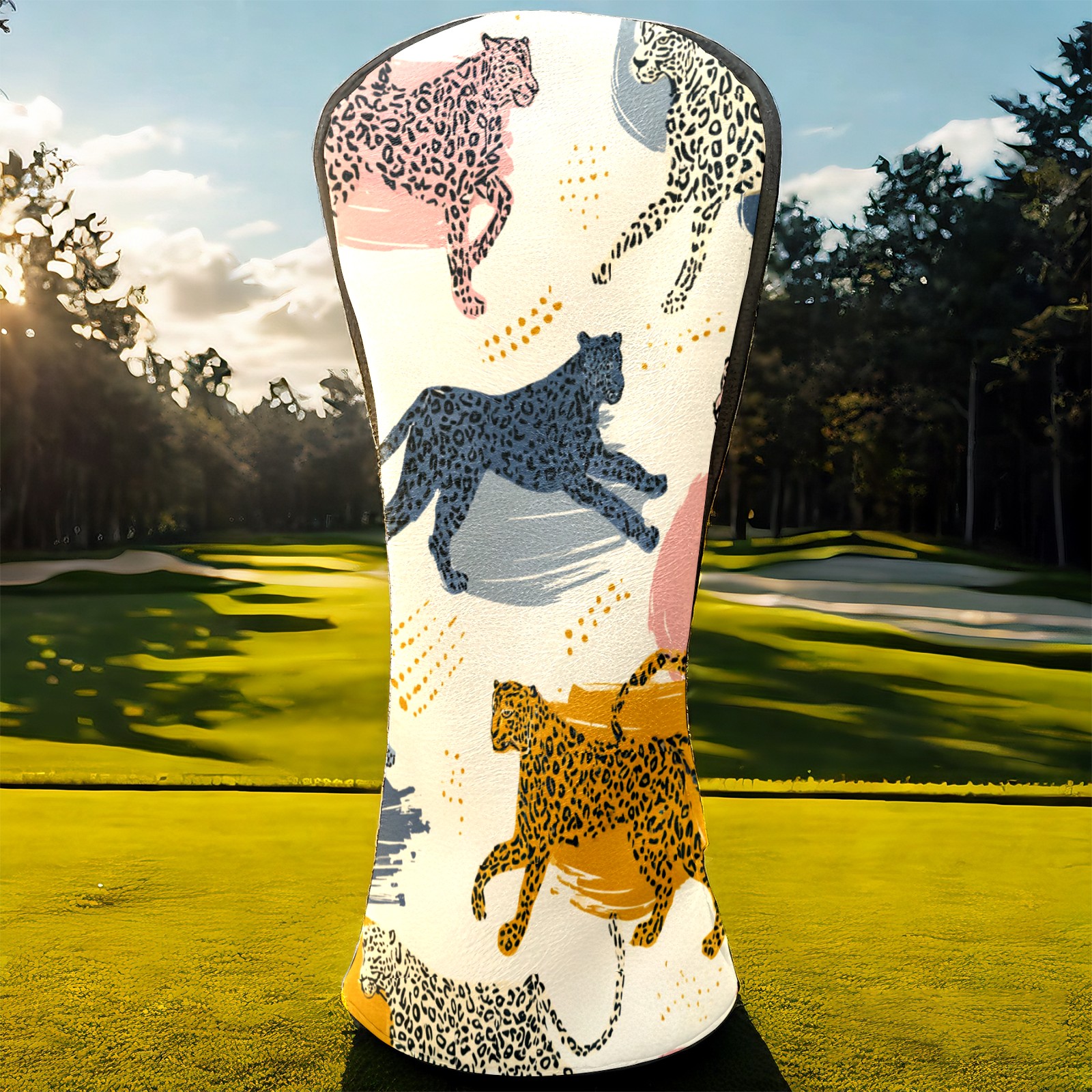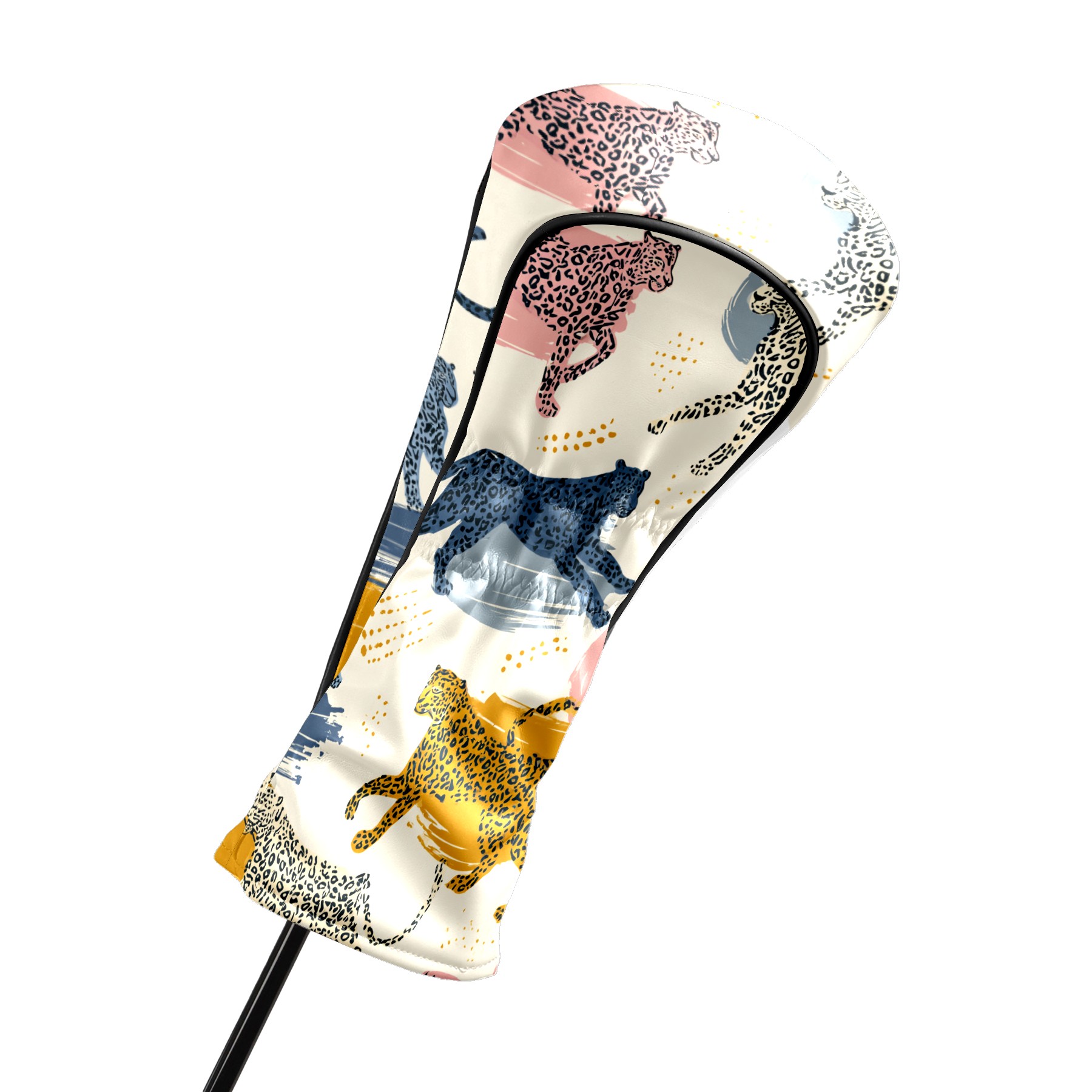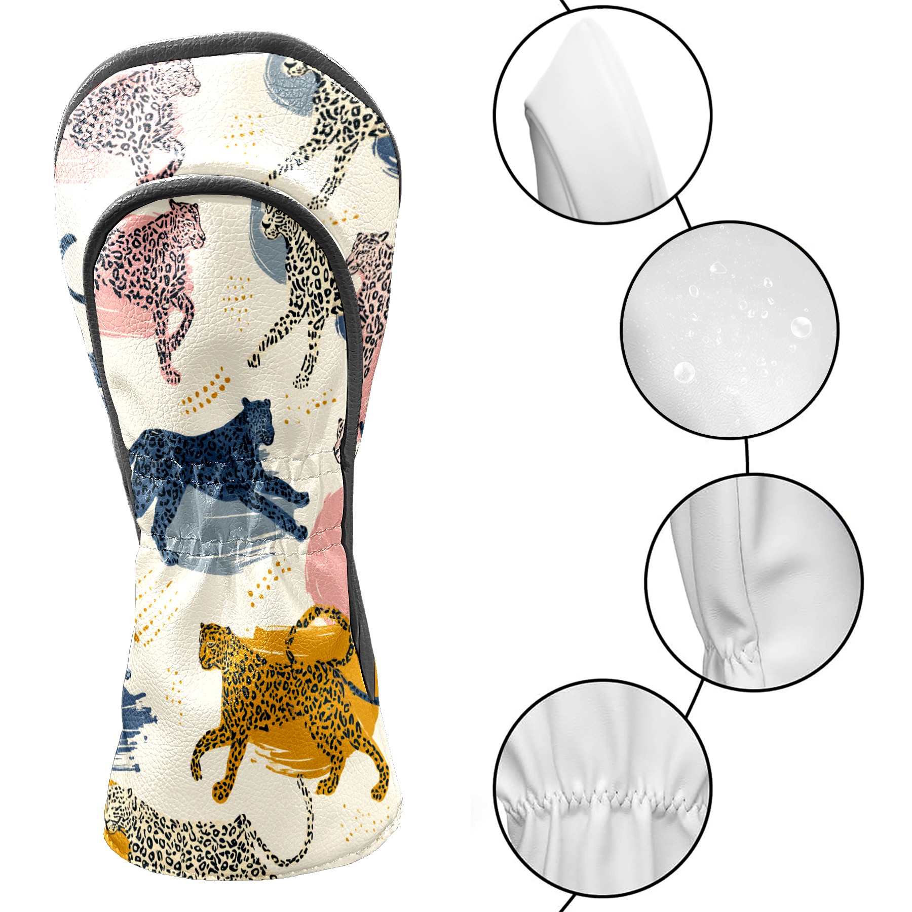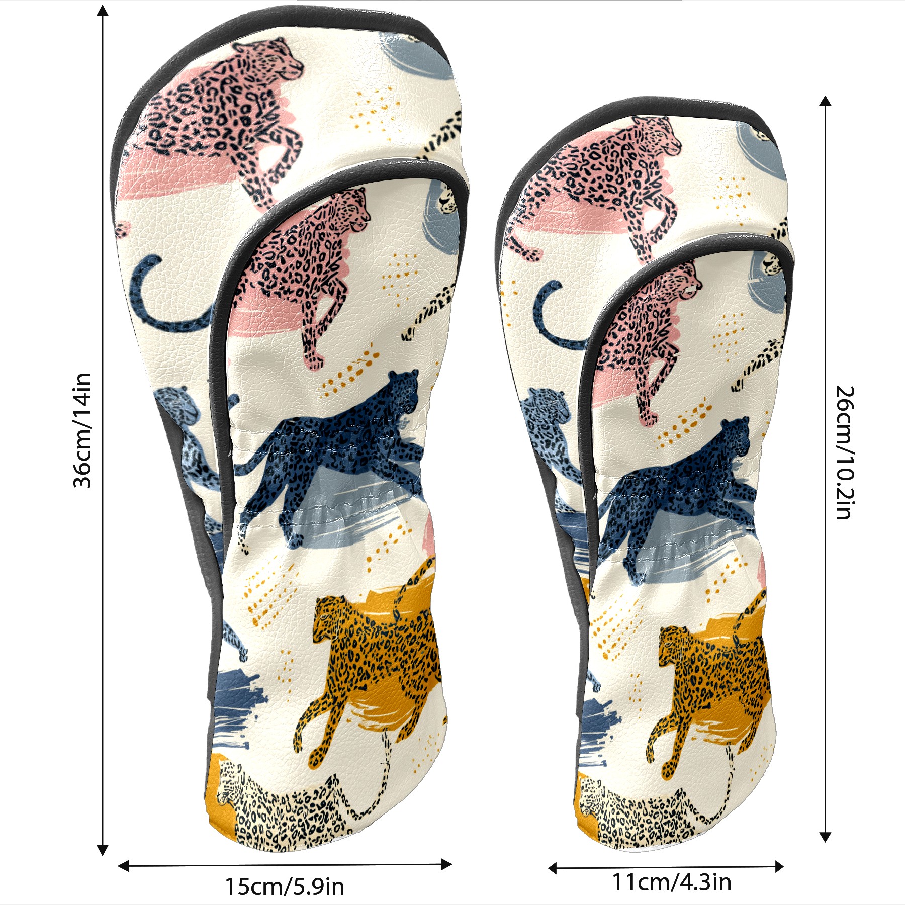 Golf Club Head Covers Counullo for Driver & Fairway Woods Colorful Leopard Premium Plush Velvet Lining, Waterproof Golf Headcovers for Scratch Protection Novelty Gift for Men & Women