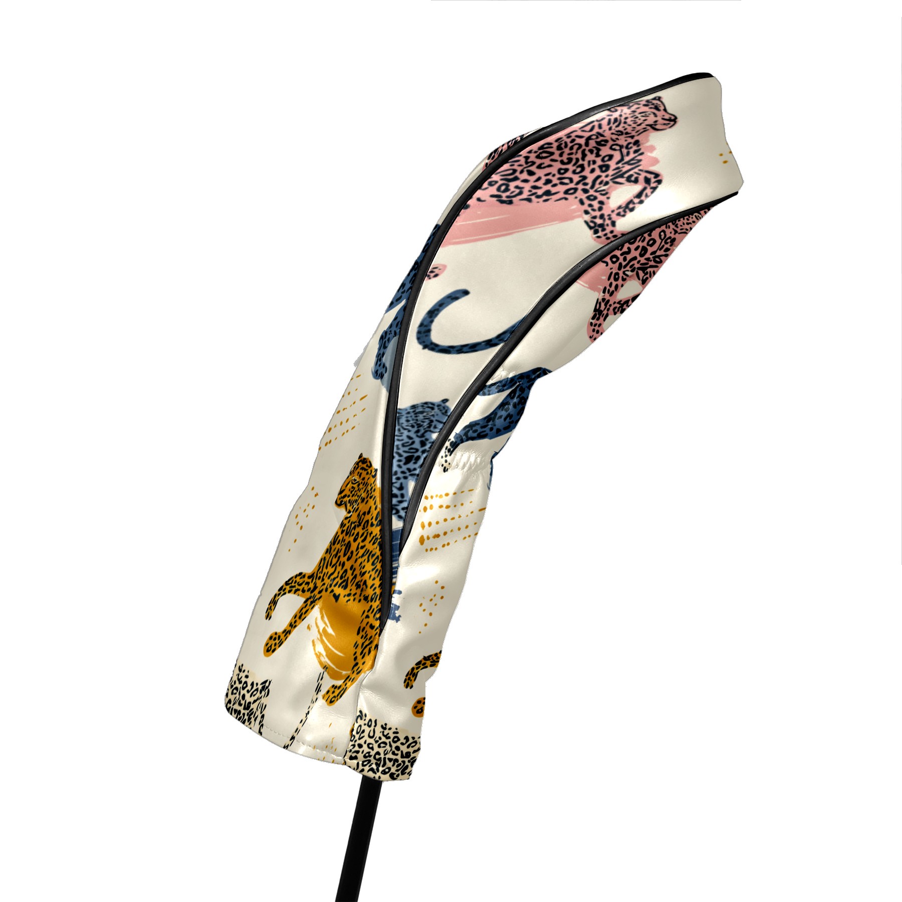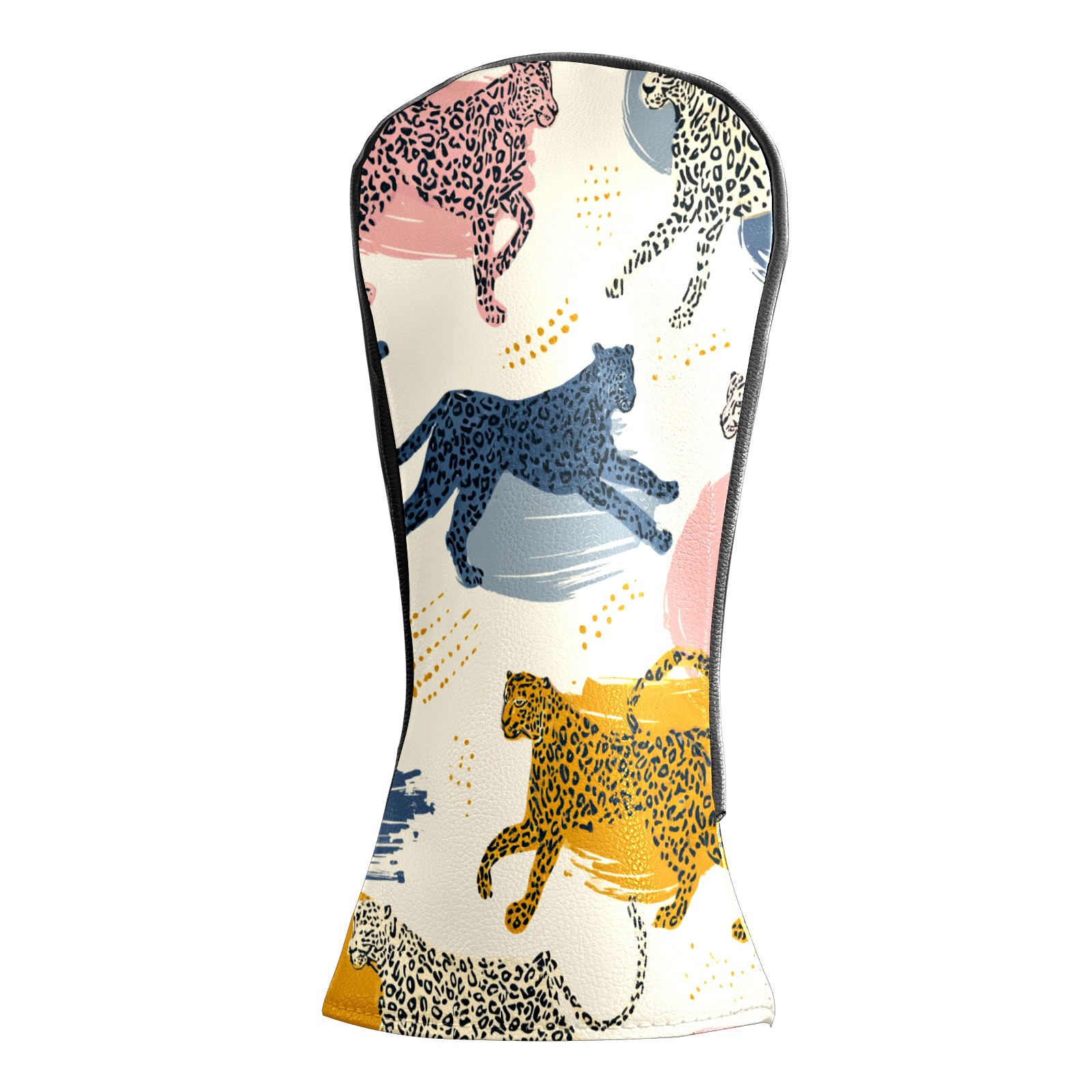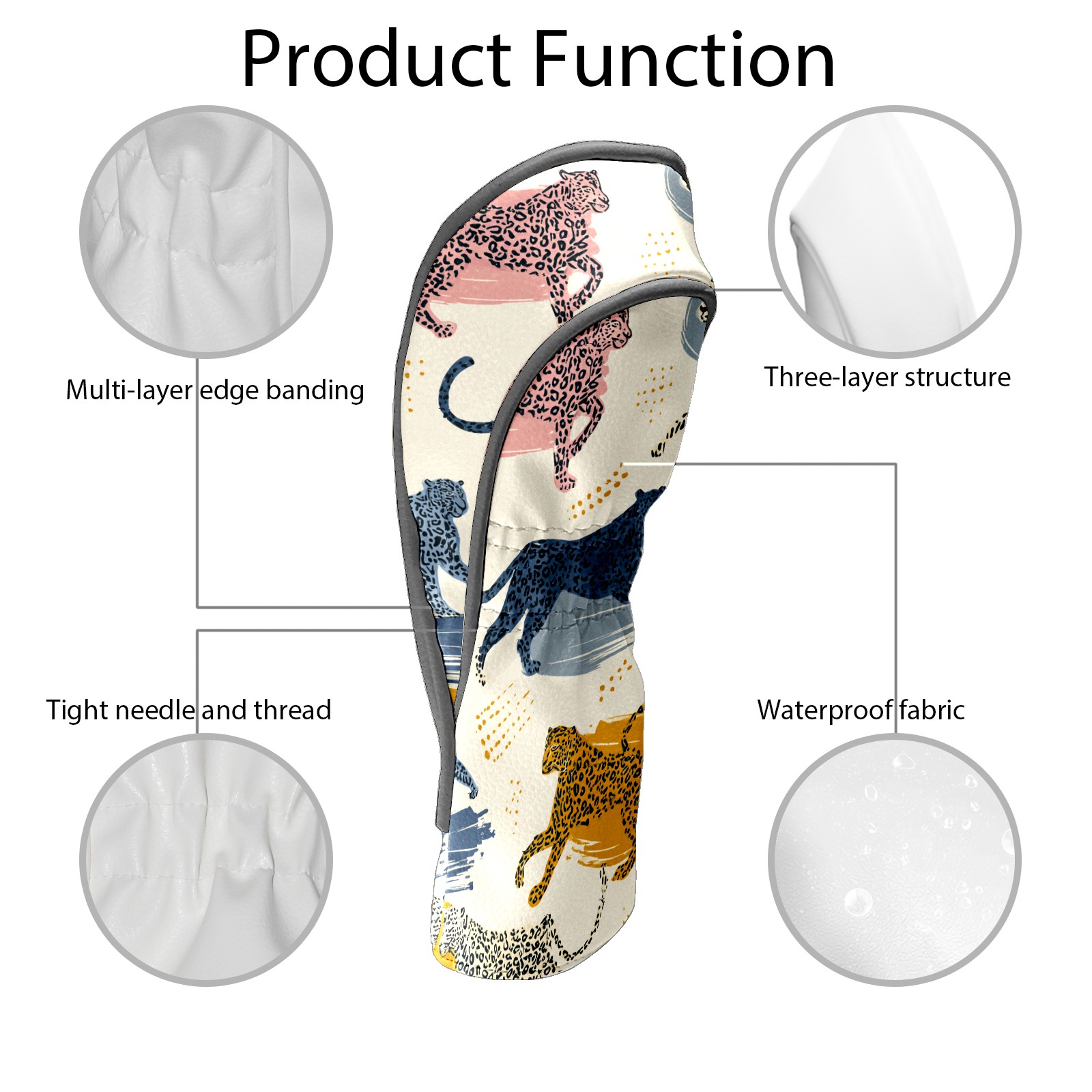 Golf Club Head Covers Counullo for Driver & Fairway Woods Colorful Leopard Premium Plush Velvet Lining, Waterproof Golf Headcovers for Scratch Protection Novelty Gift for Men & Women