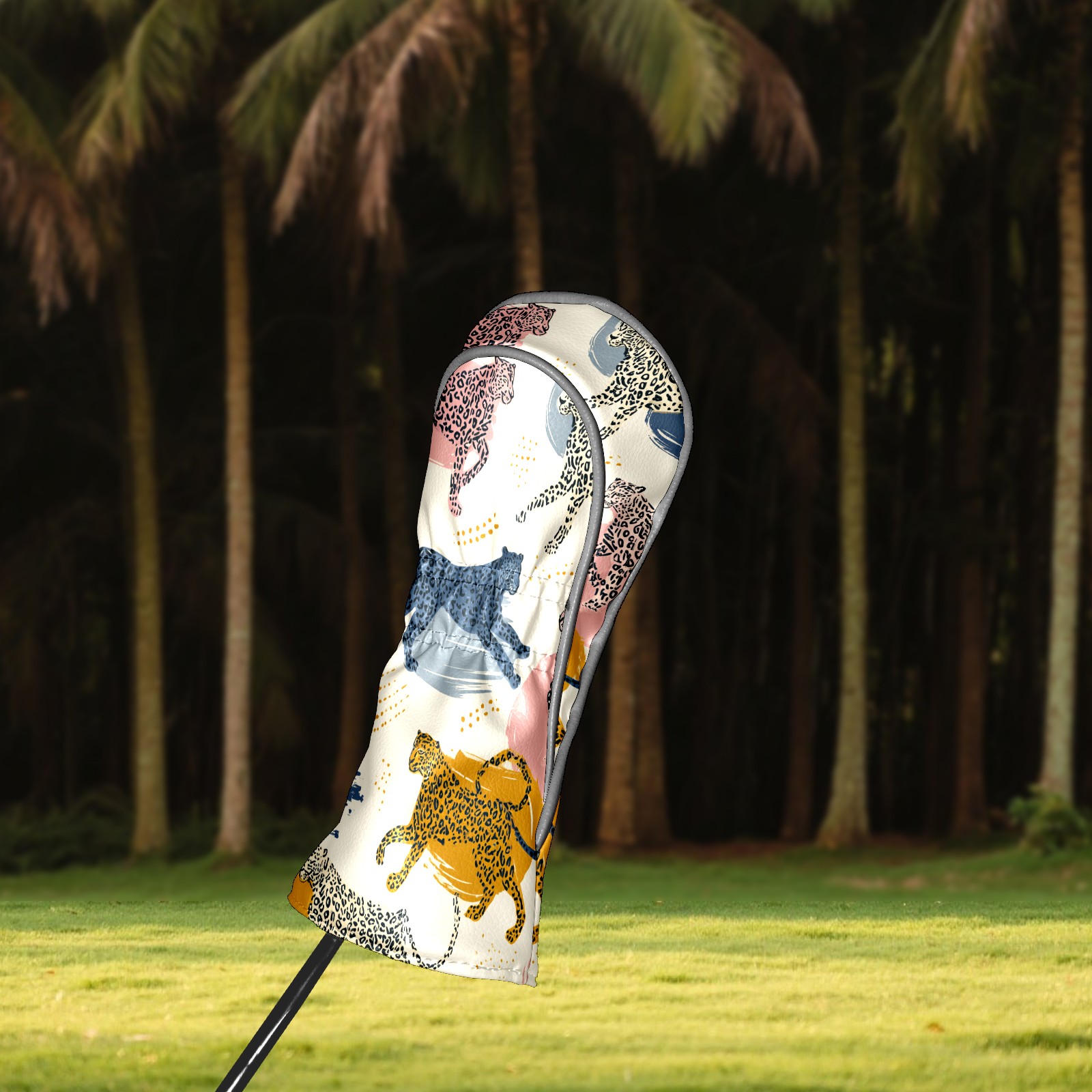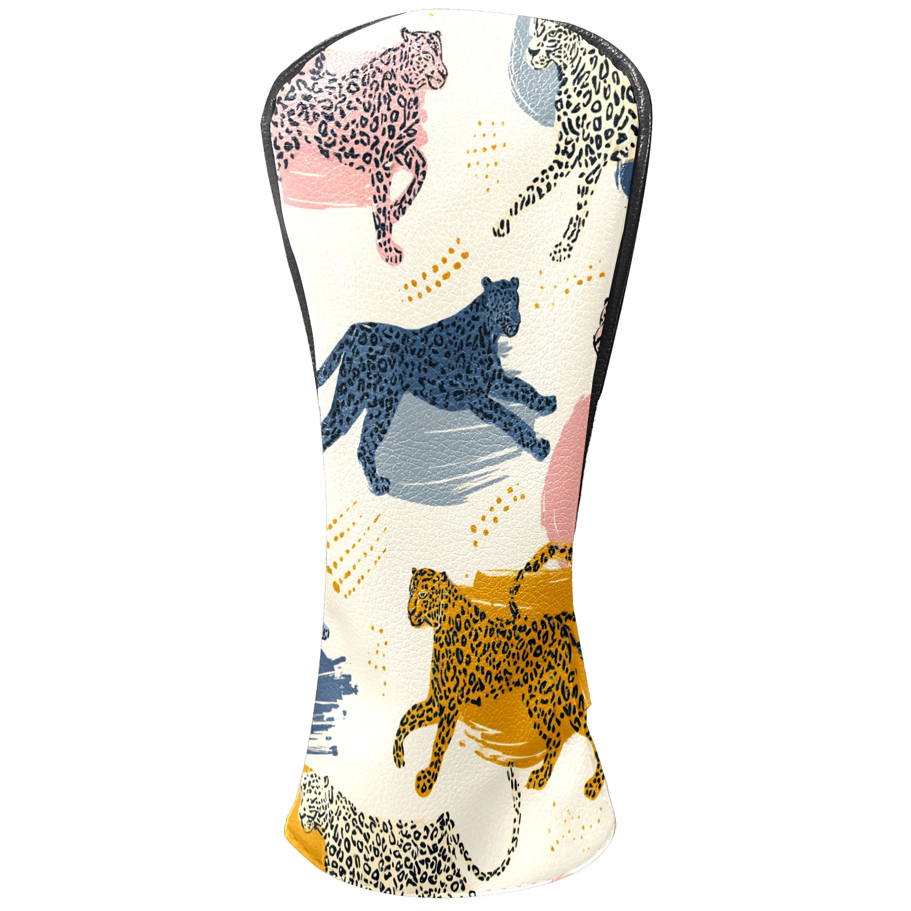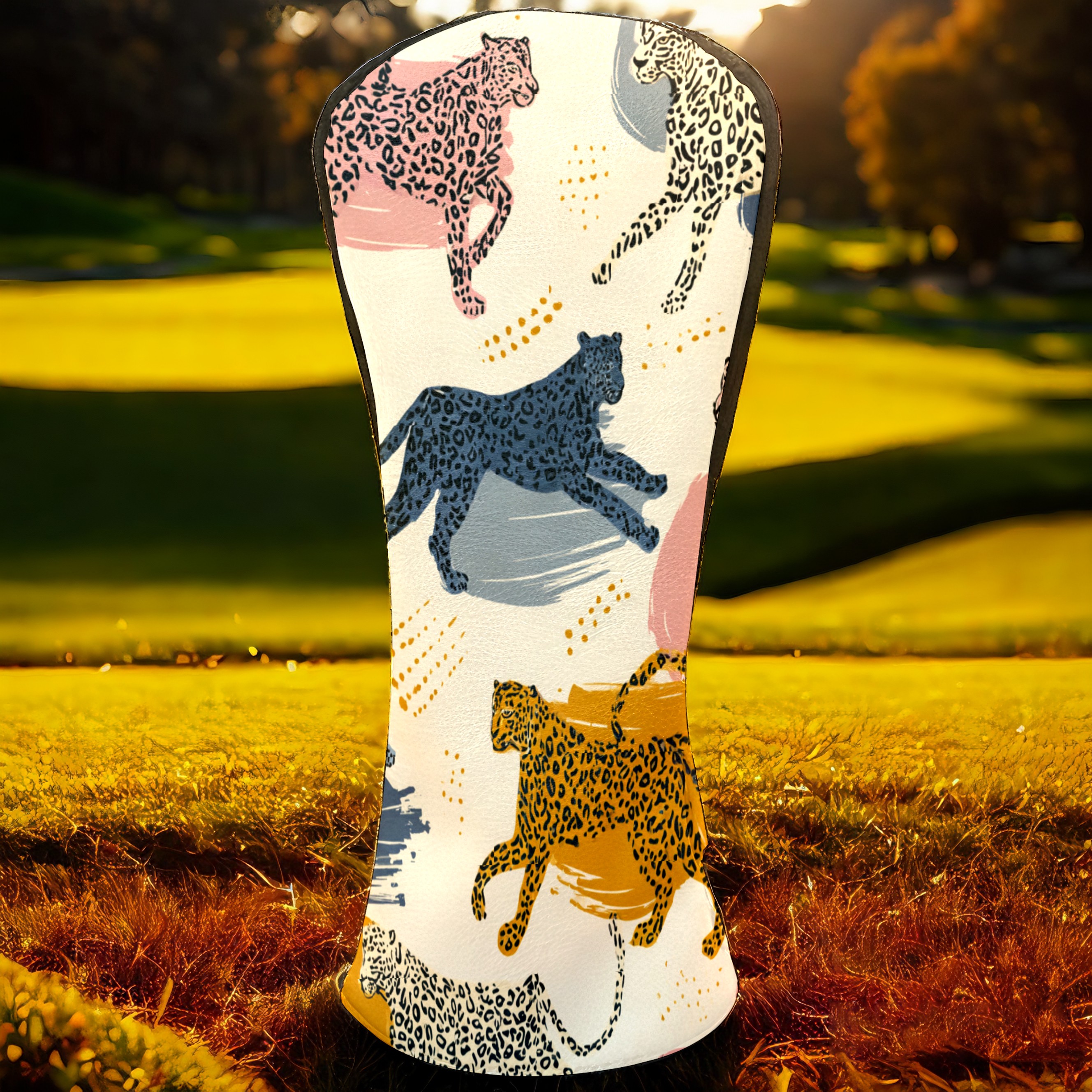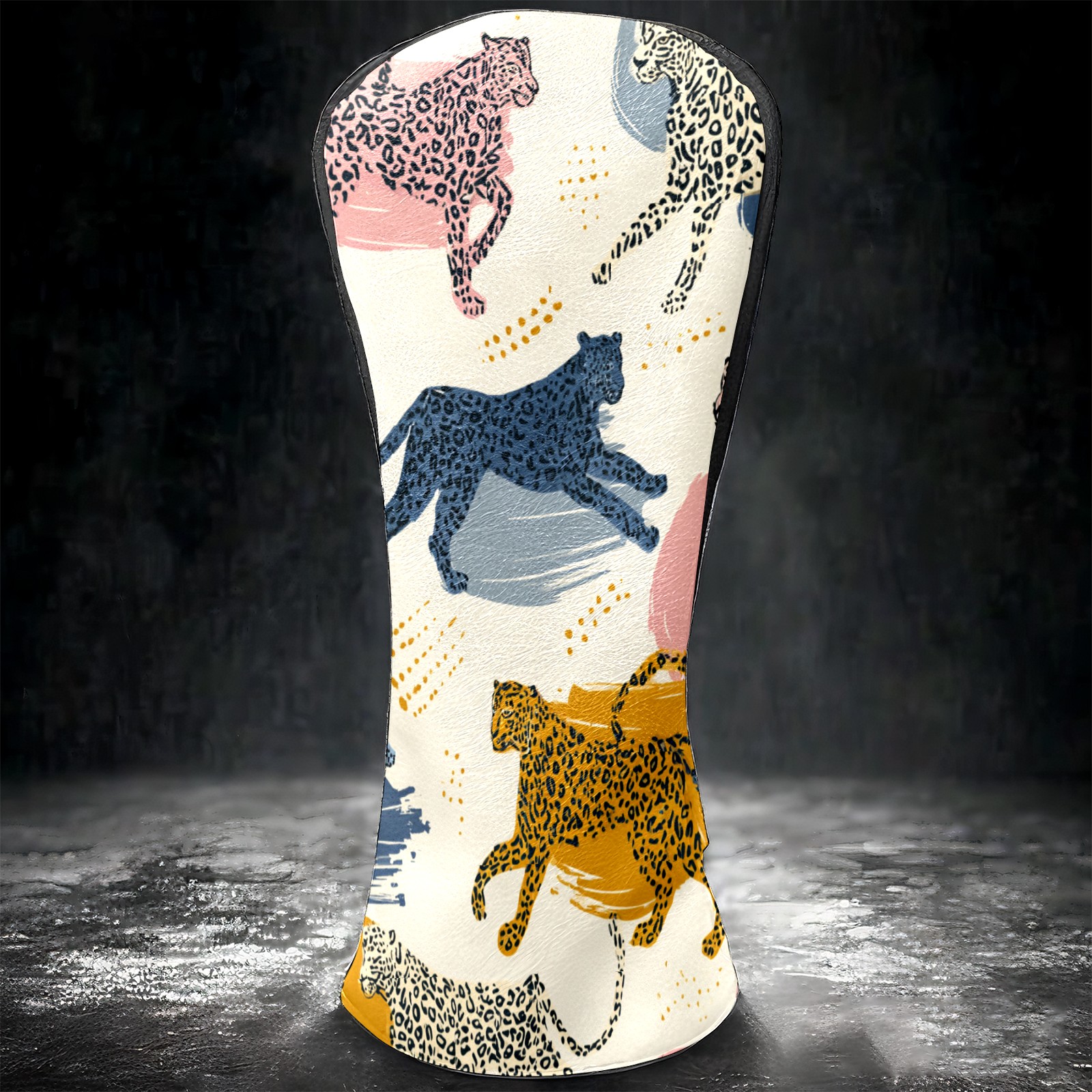 Golf Club Head Covers Counullo for Driver & Fairway Woods Colorful Leopard Premium Plush Velvet Lining, Waterproof Golf Headcovers for Scratch Protection Novelty Gift for Men & Women