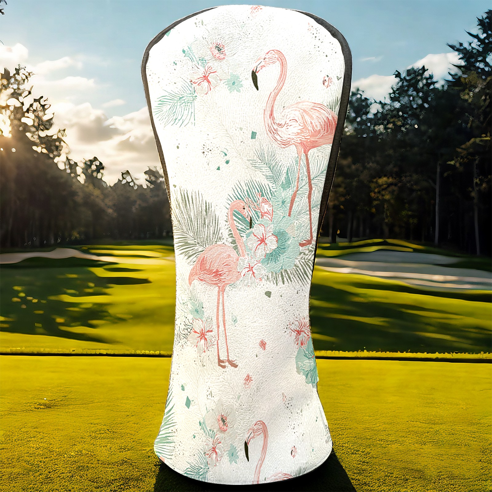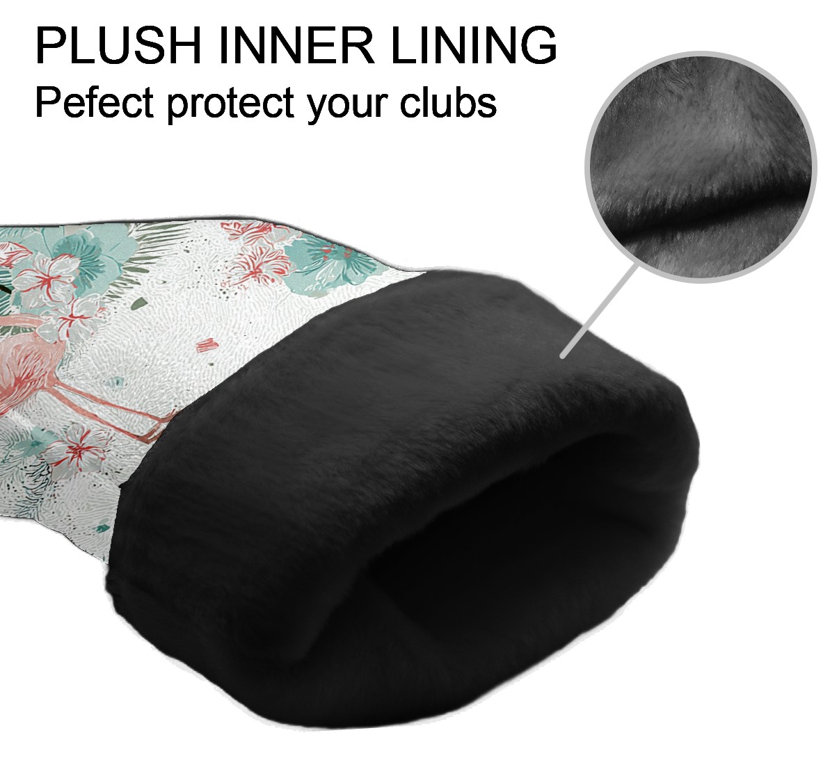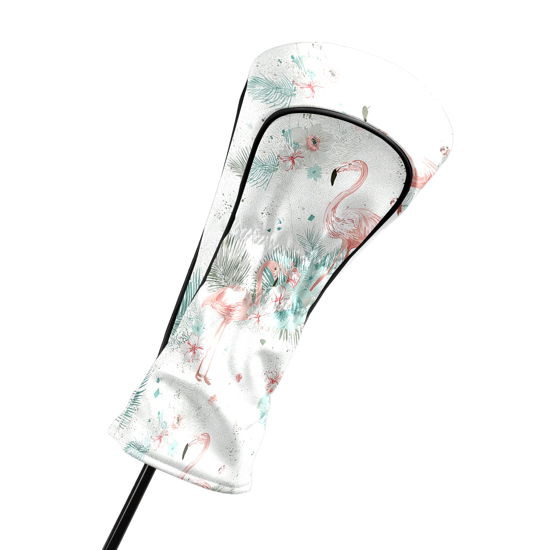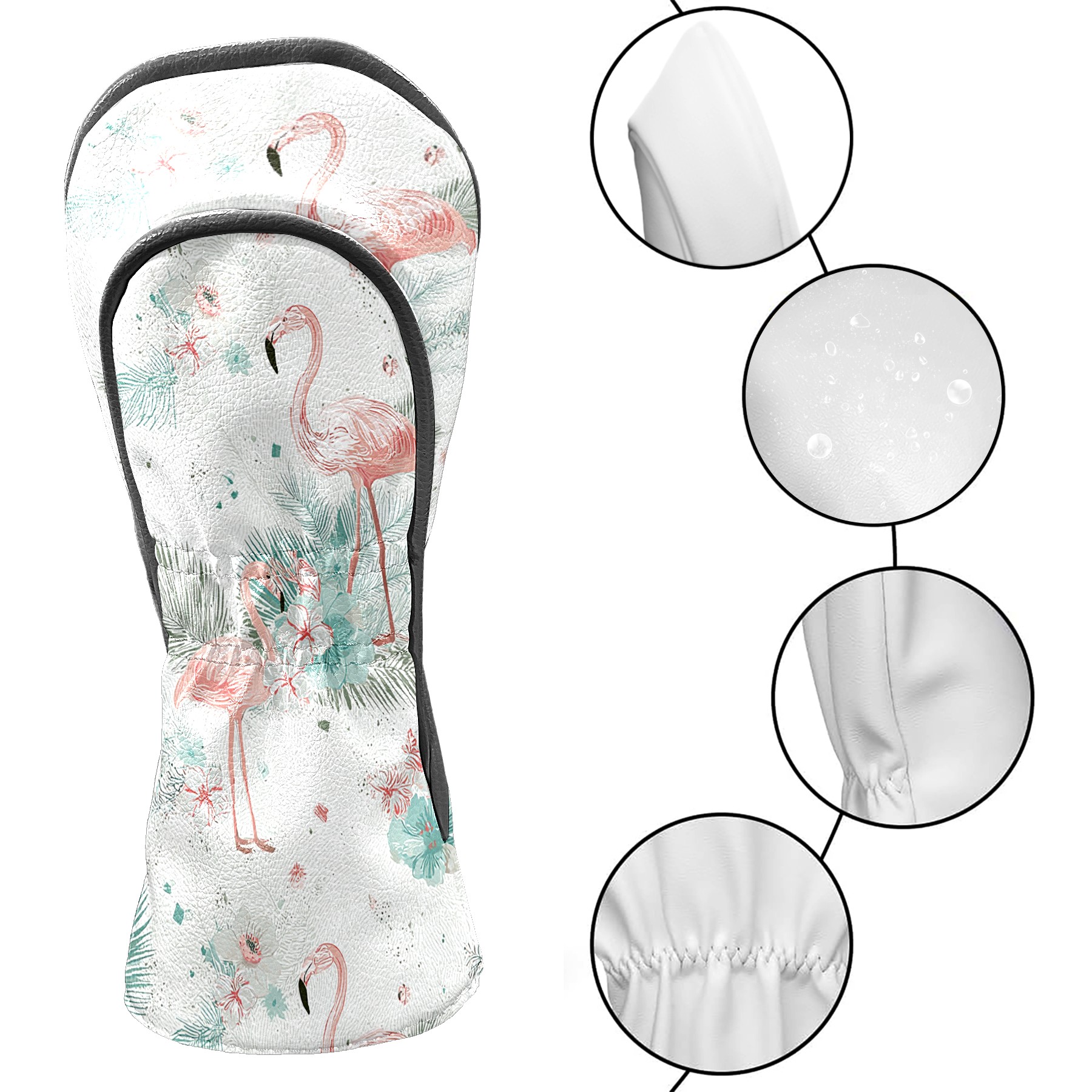 Golf Club Head Covers Counullo for Driver & Fairway Woods White FlamingoFlower Premium Plush Velvet Lining, Waterproof Golf Headcovers for Scratch Protection Novelty Gift for Men & Women