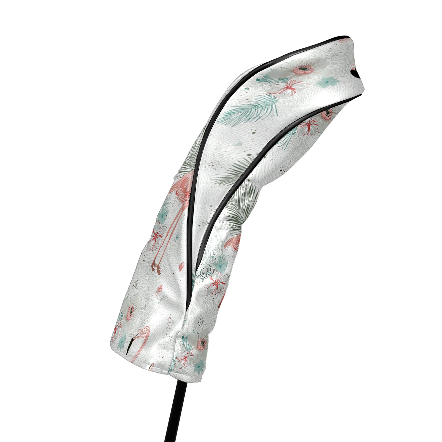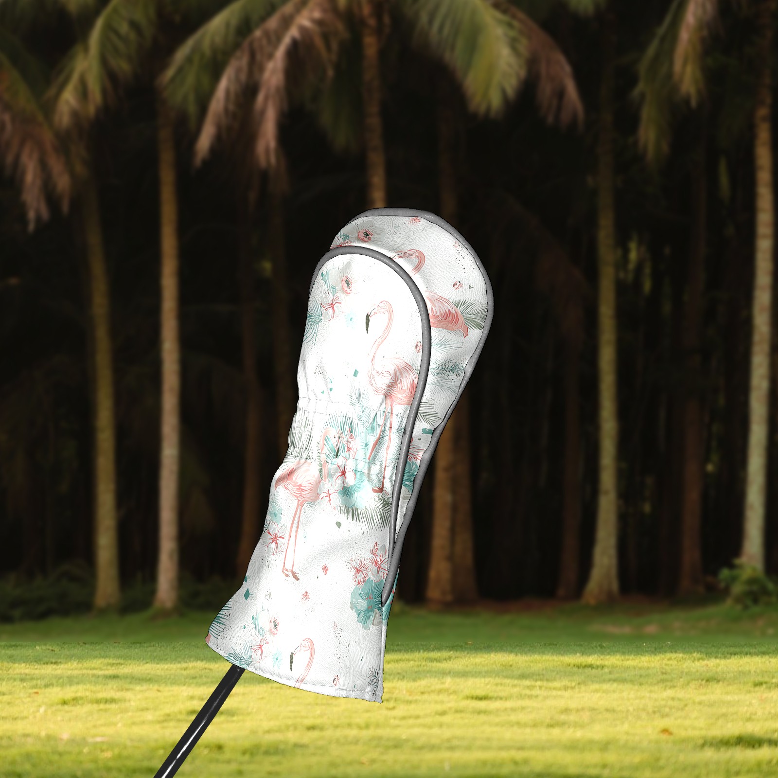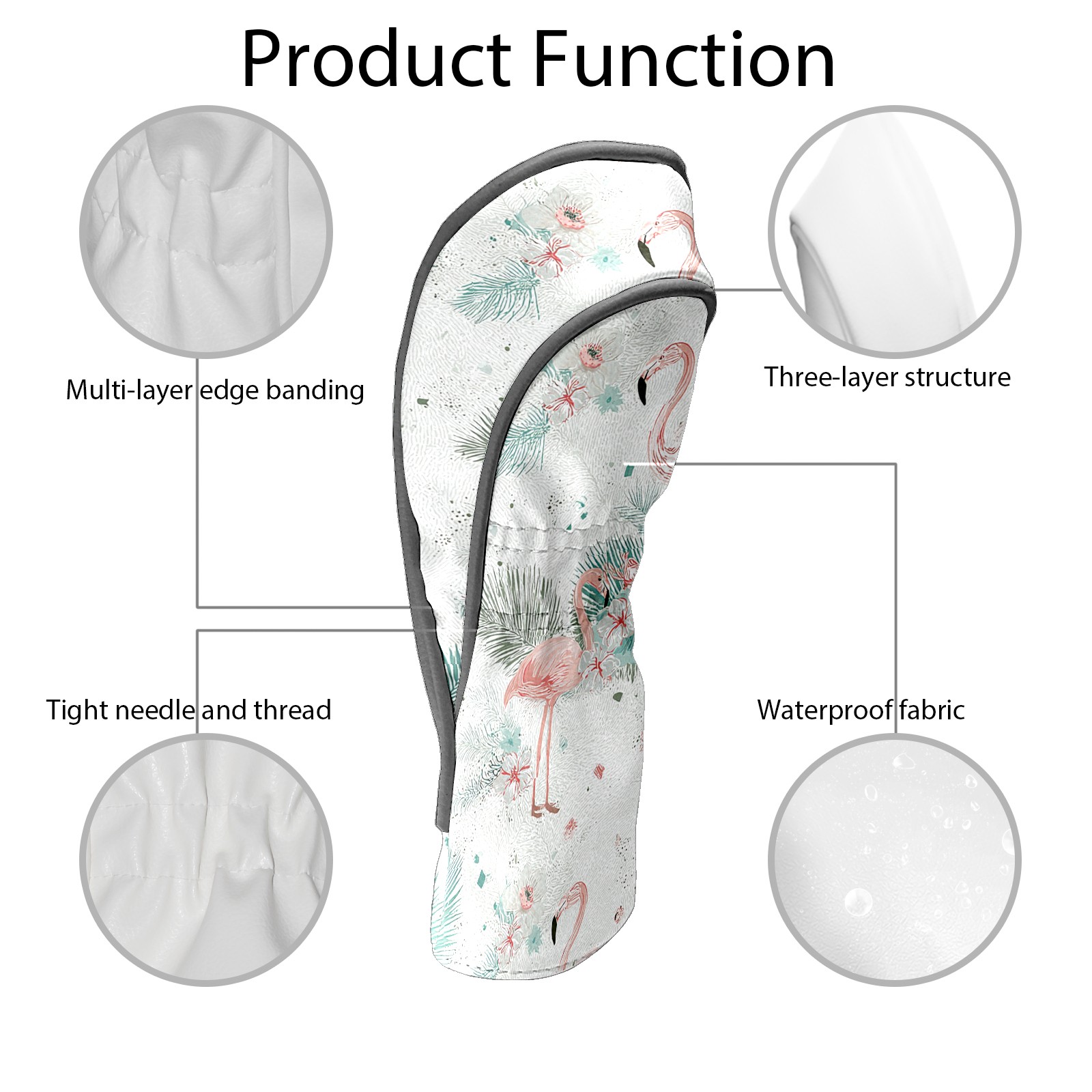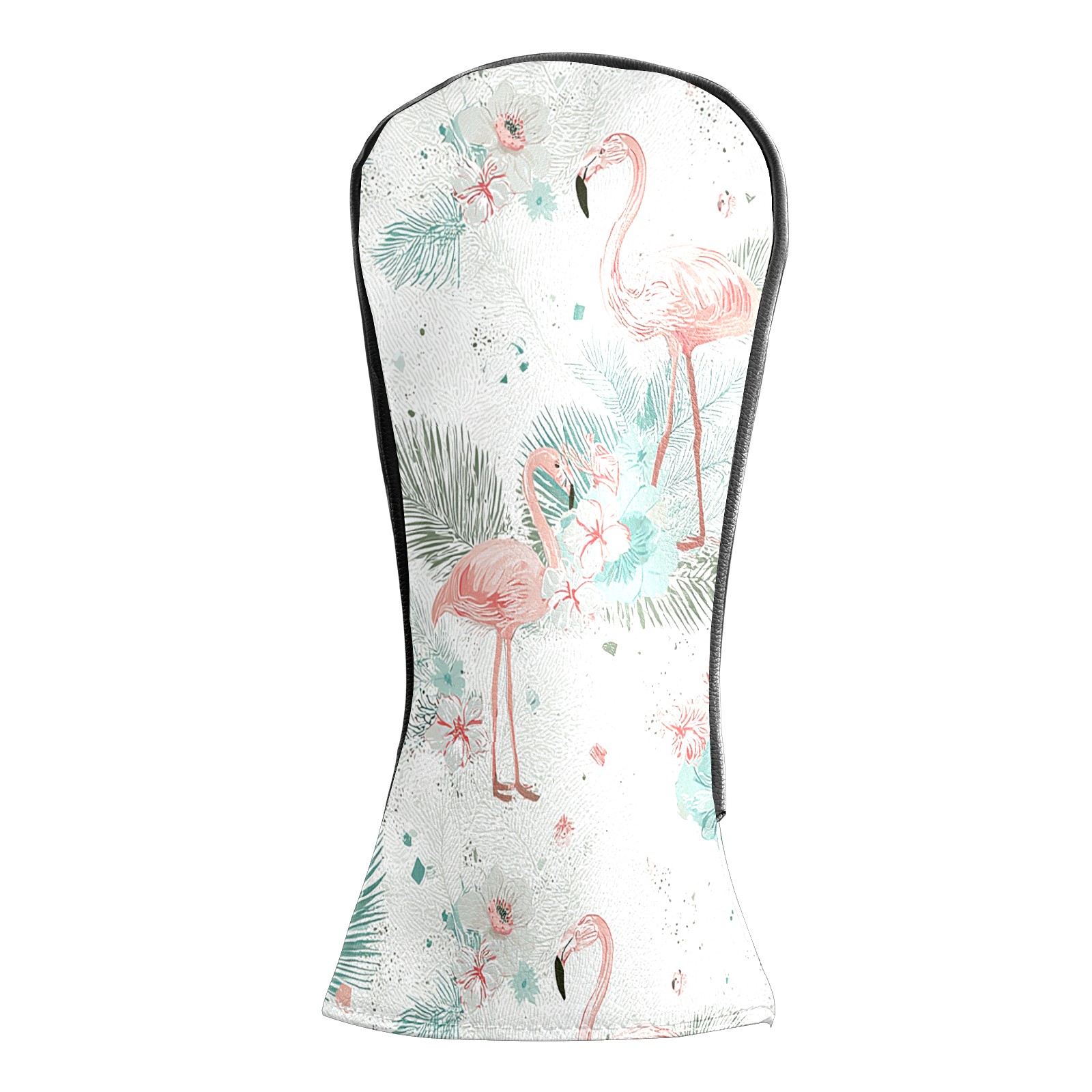 Golf Club Head Covers Counullo for Driver & Fairway Woods White FlamingoFlower Premium Plush Velvet Lining, Waterproof Golf Headcovers for Scratch Protection Novelty Gift for Men & Women