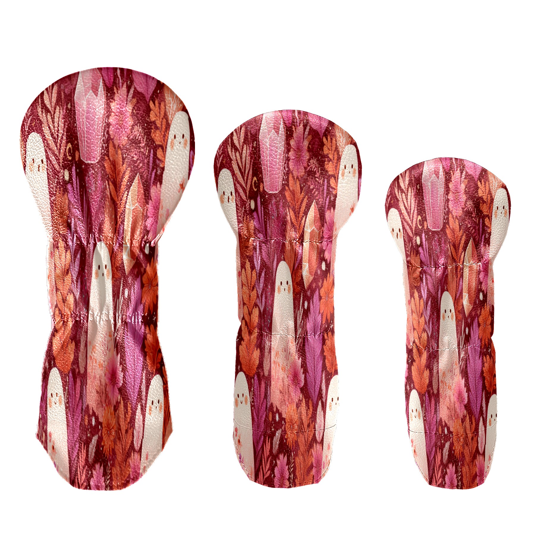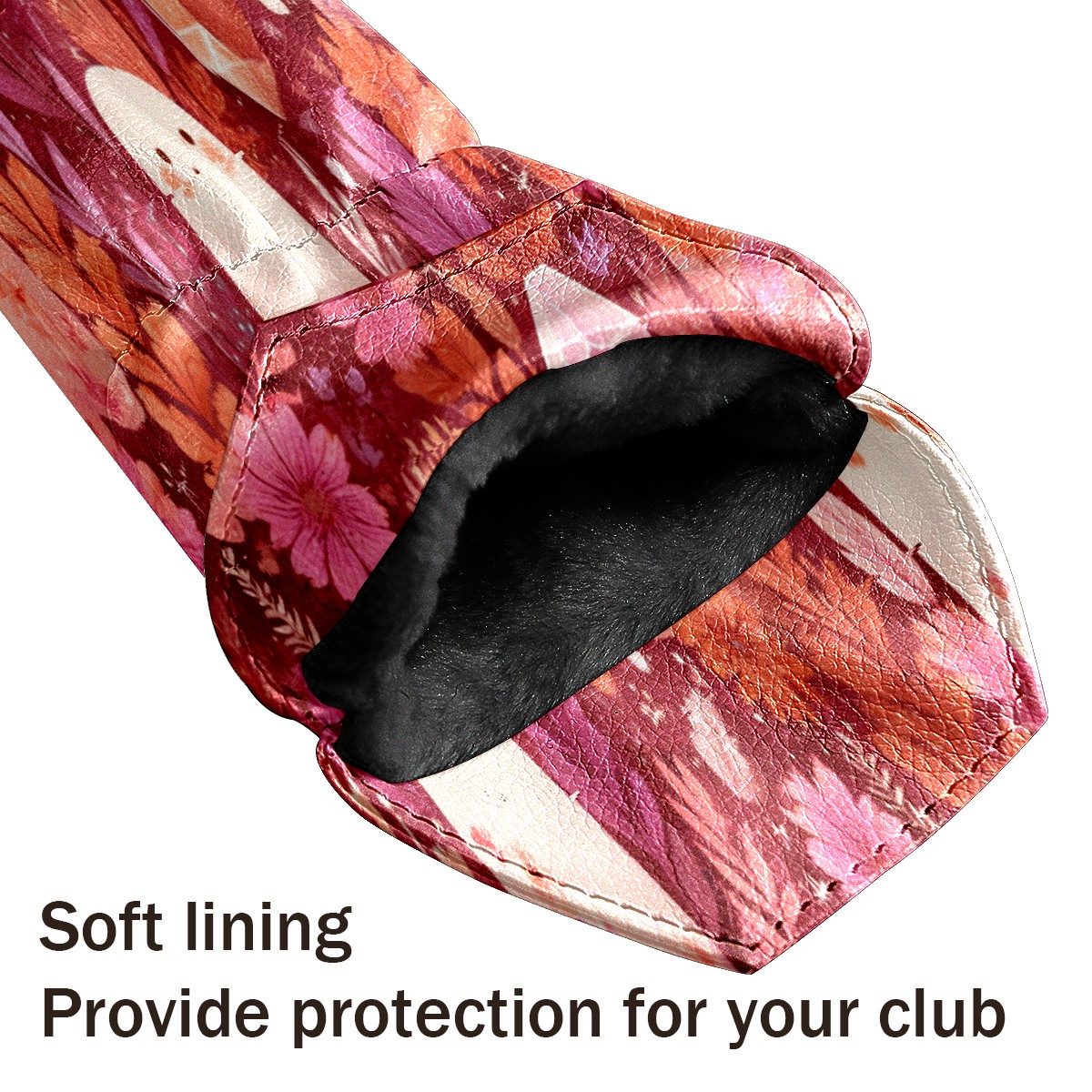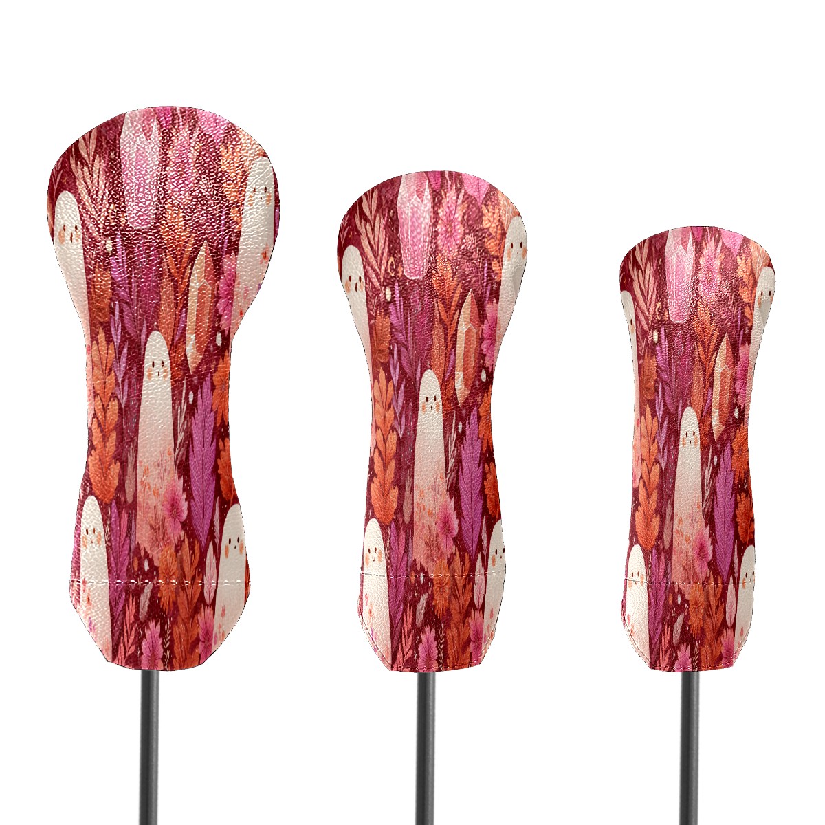 Golf Head Covers Pink Ghost Fits Driver Fairway Hybrid - Waterproof PU Leather with Plush Velvet Lining to Prevent Scratches Durable Golf Accessory Perfect Gift for Men/Women