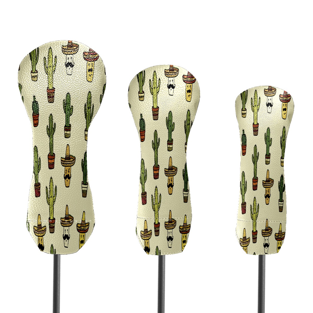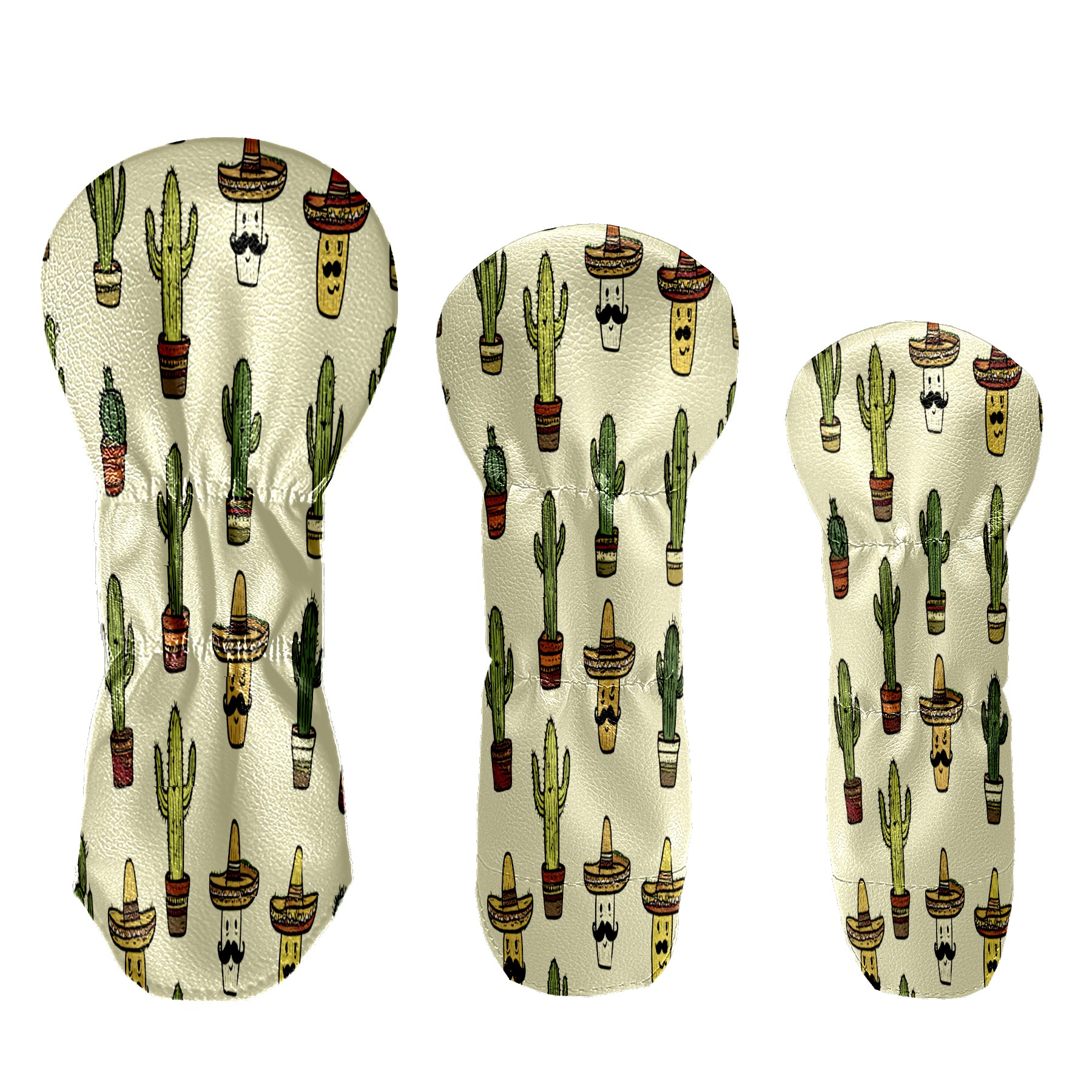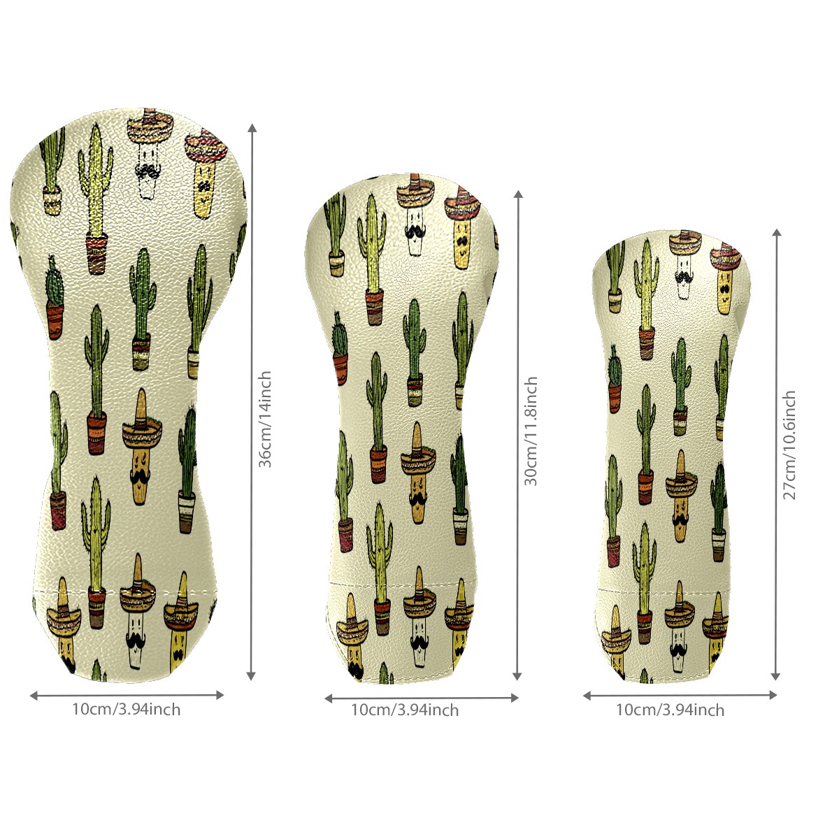 Golf Head Covers Green Cactus Fits Driver Fairway Hybrid - Waterproof PU Leather with Plush Velvet Lining to Prevent Scratches Durable Golf Accessory Perfect Gift for Men/Women