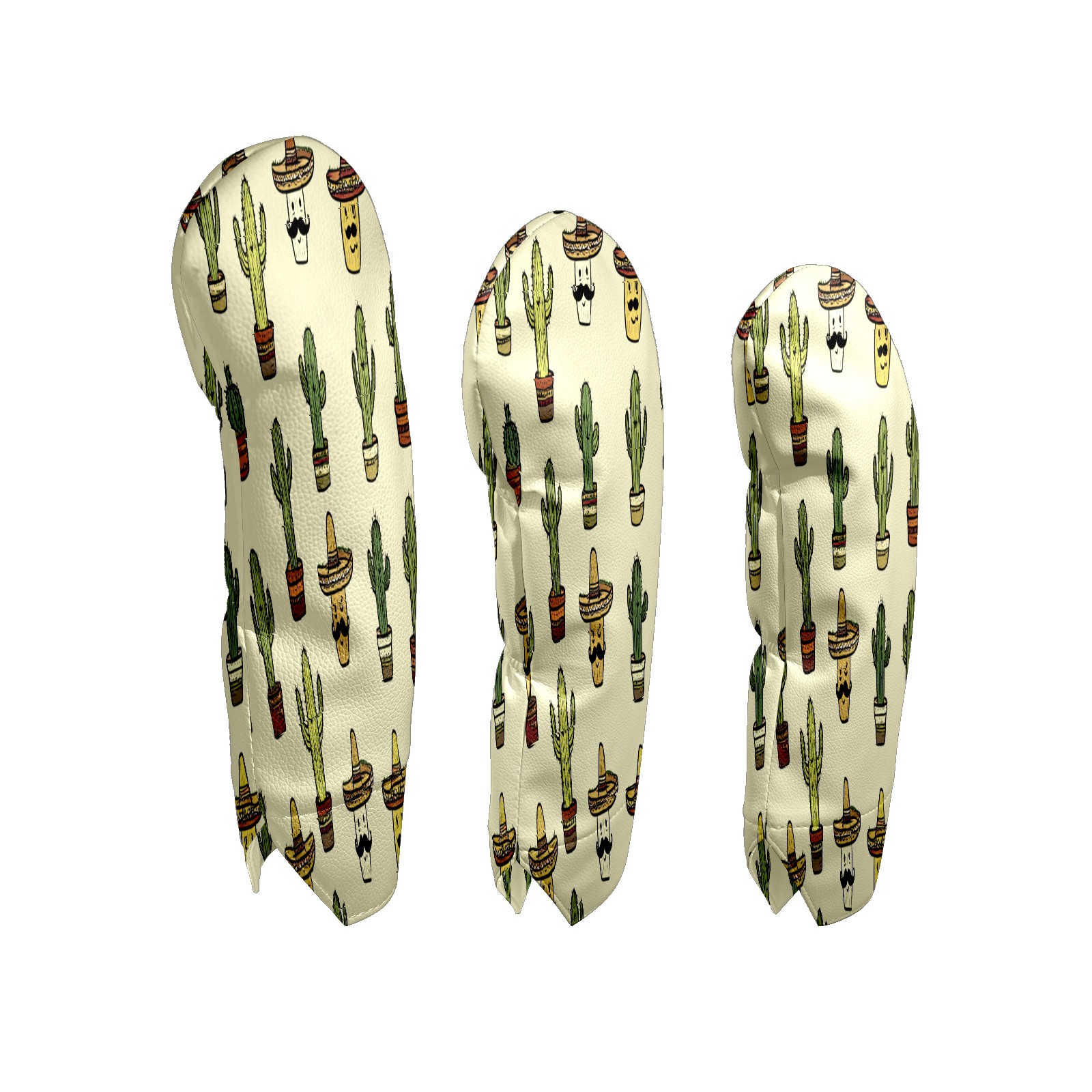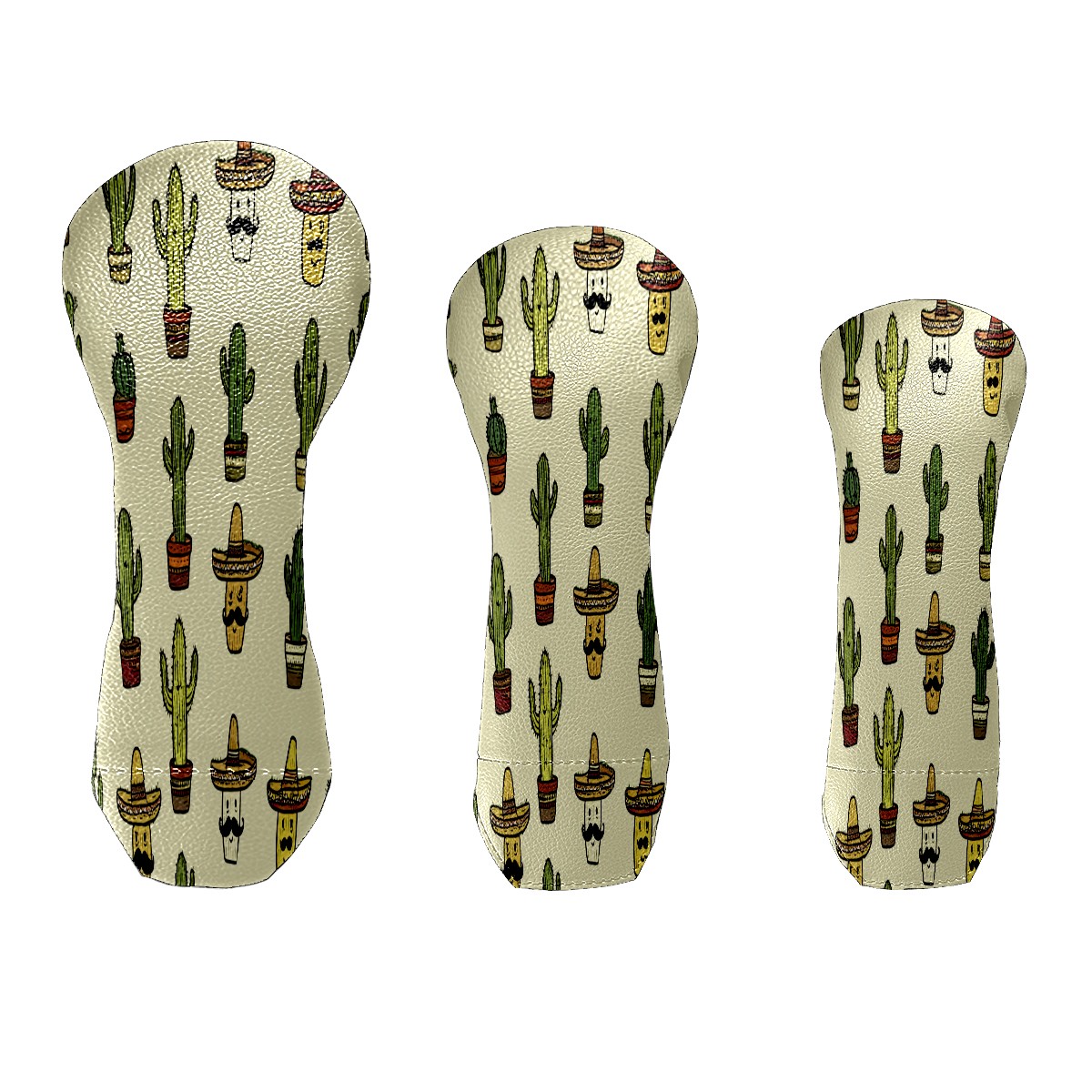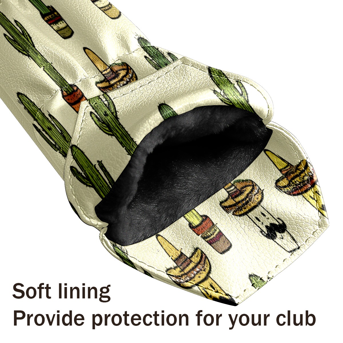 Golf Head Covers Green Cactus Fits Driver Fairway Hybrid - Waterproof PU Leather with Plush Velvet Lining to Prevent Scratches Durable Golf Accessory Perfect Gift for Men/Women