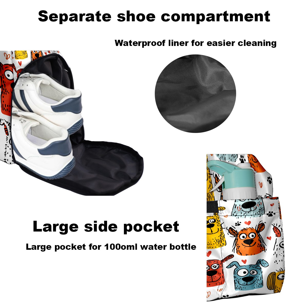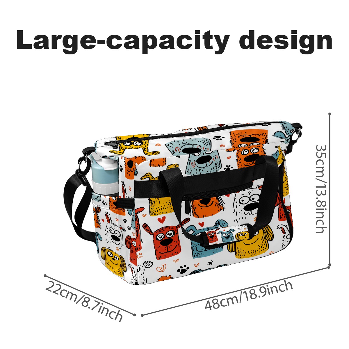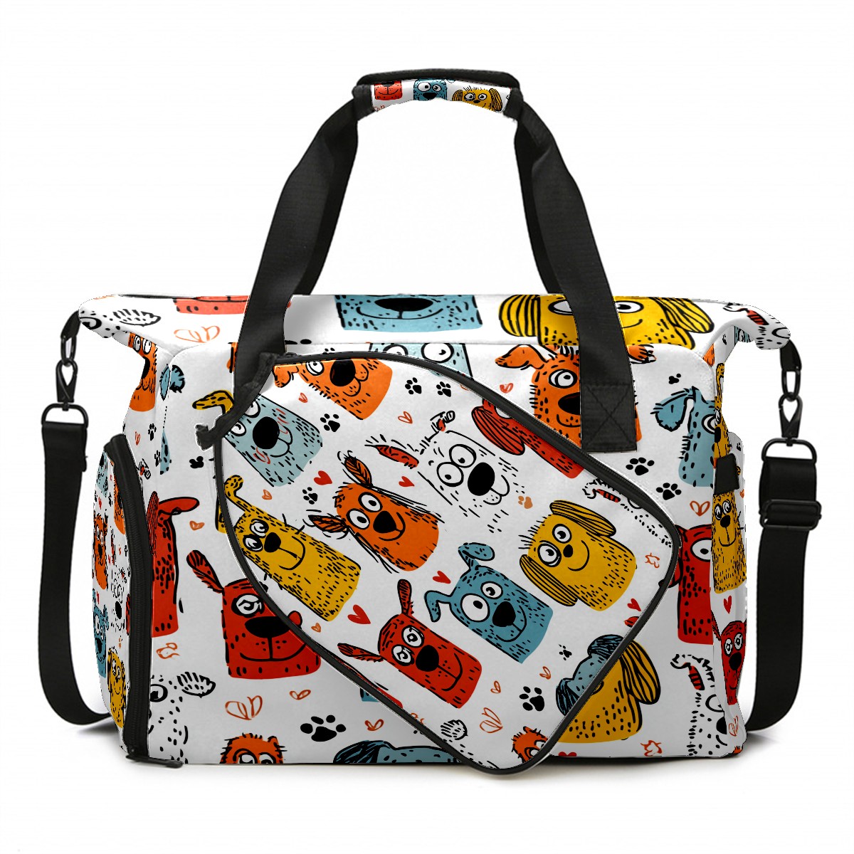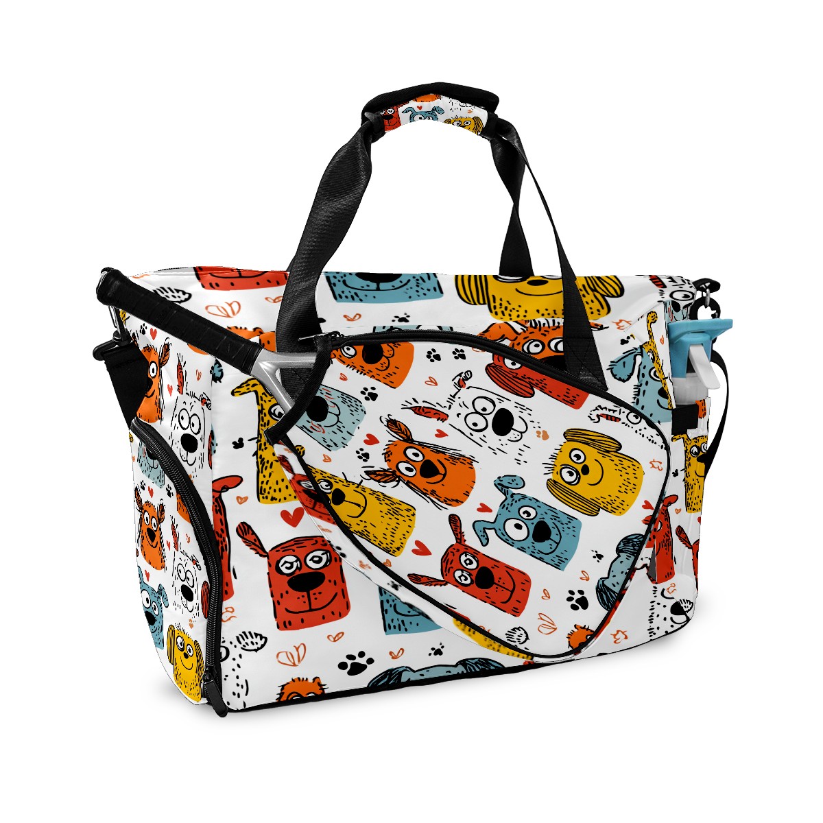 Tennis Bag Large, Colorful CartoonDog Multi-Functional Sports Duffel Bag with Ventilated Shoe Compartment & Wet Pocket, Gym Bag for Men Women, Fitness Yoga Tennis Travel Carryall Bag