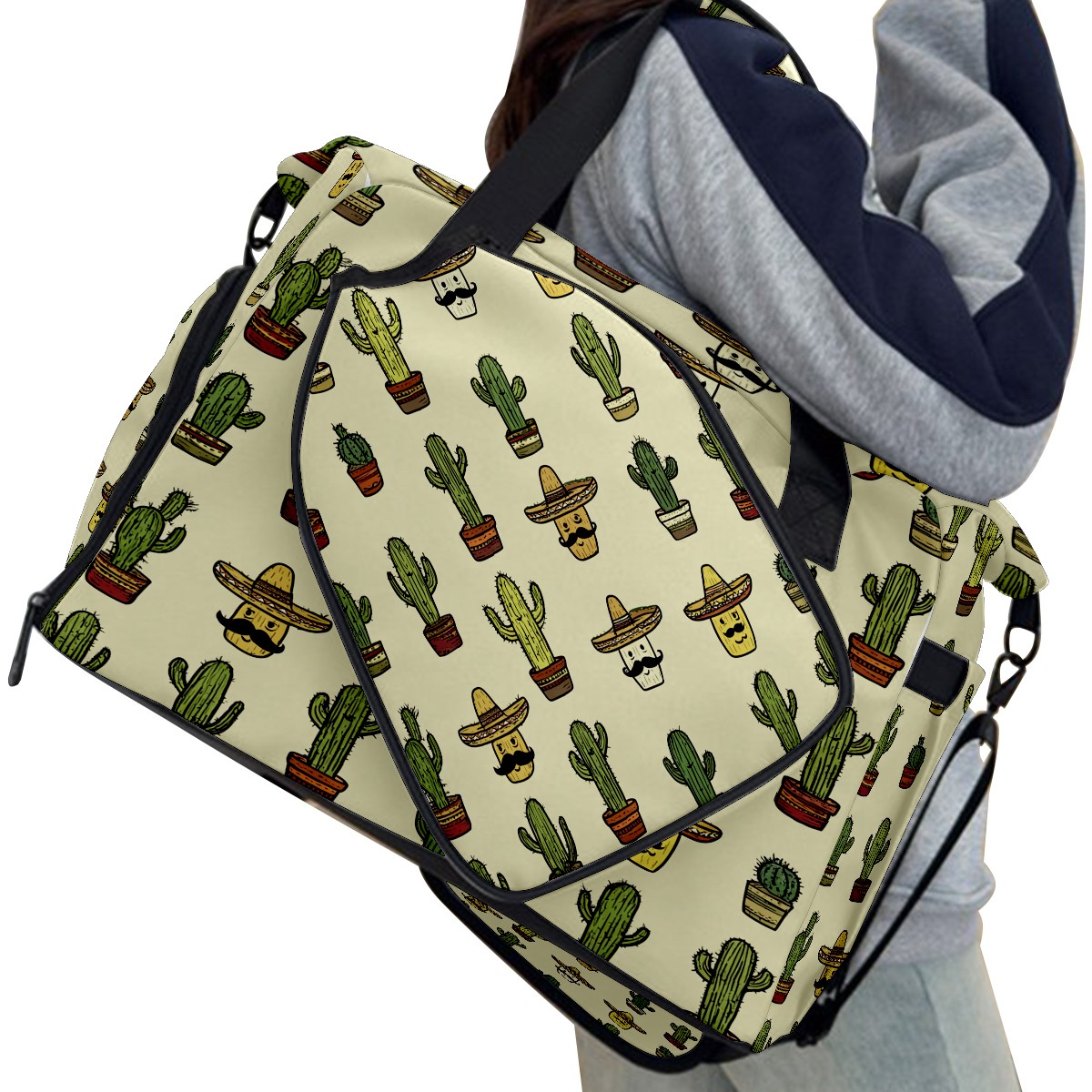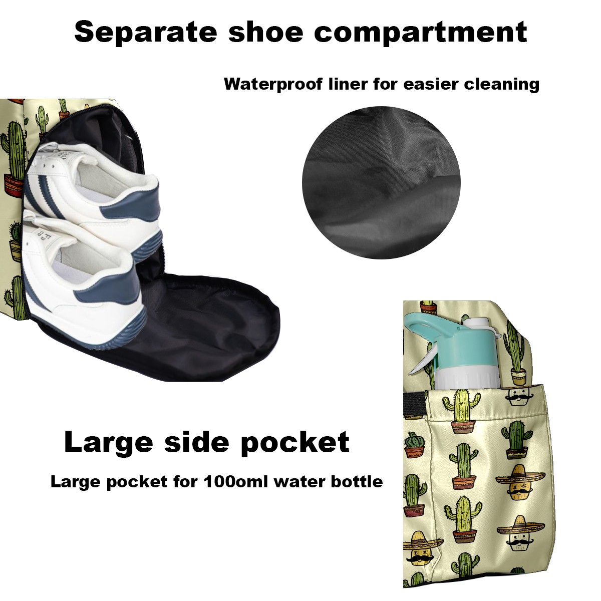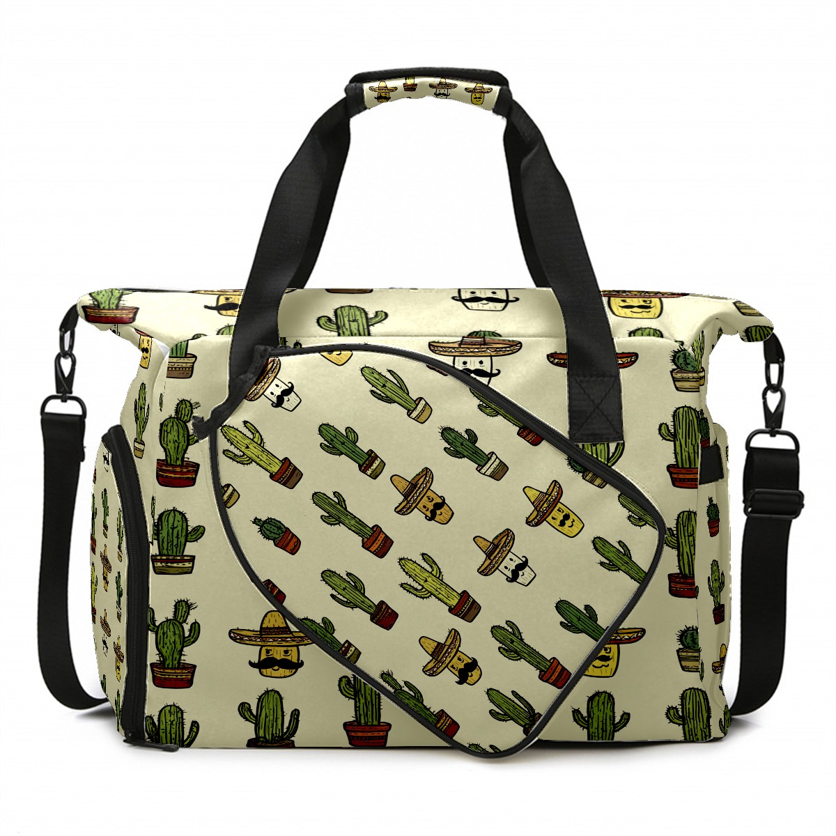 Tennis Bag Large, Green Cactus Multi-Functional Sports Duffel Bag with Ventilated Shoe Compartment & Wet Pocket, Gym Bag for Men Women, Fitness Yoga Tennis Travel Carryall Bag