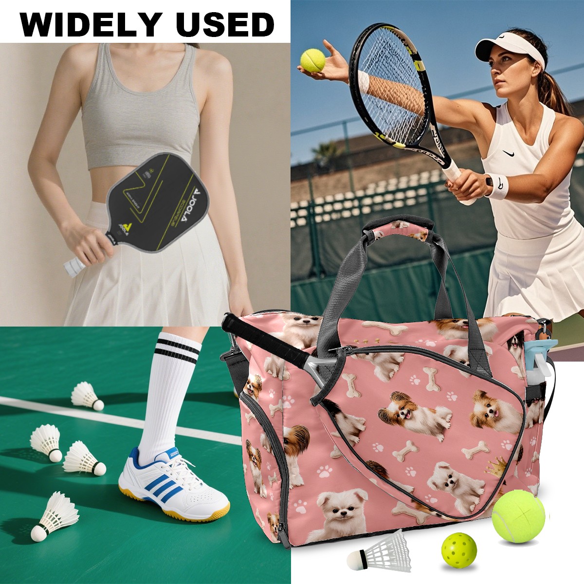 Tennis Bag Large, Pink DogBone Multi-Functional Sports Duffel Bag with Ventilated Shoe Compartment & Wet Pocket, Gym Bag for Men Women, Fitness Yoga Tennis Travel Carryall Bag