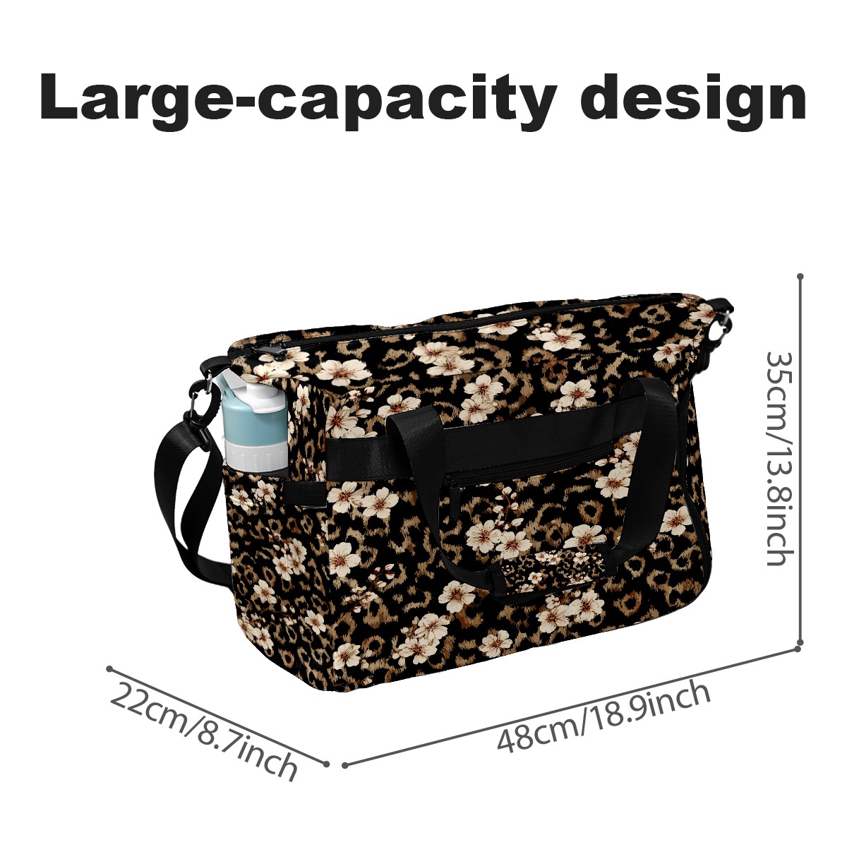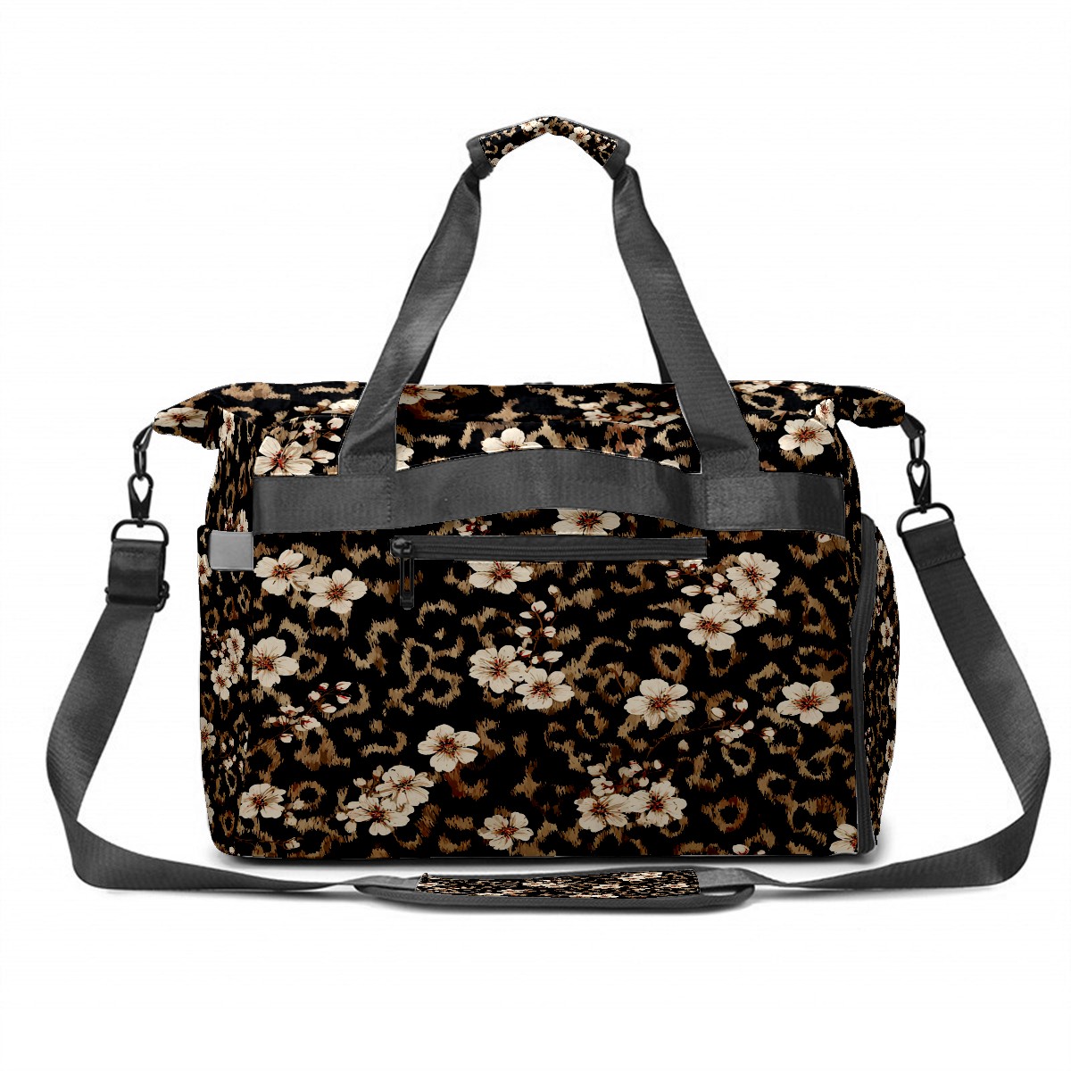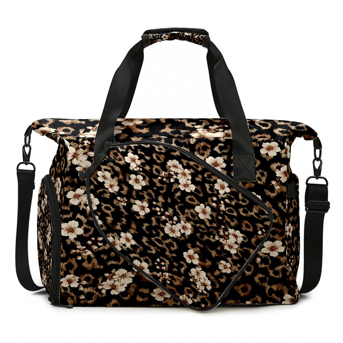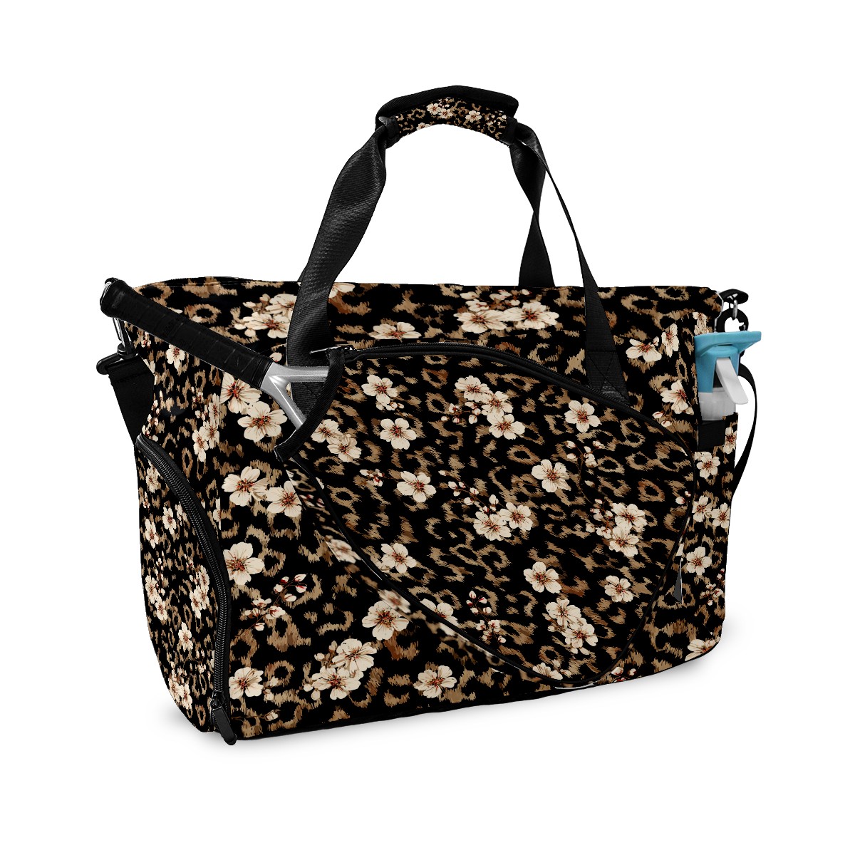 Tennis Bag Large, Black LeopardFlower Multi-Functional Sports Duffel Bag with Ventilated Shoe Compartment & Wet Pocket, Gym Bag for Men Women, Fitness Yoga Tennis Travel Carryall Bag
