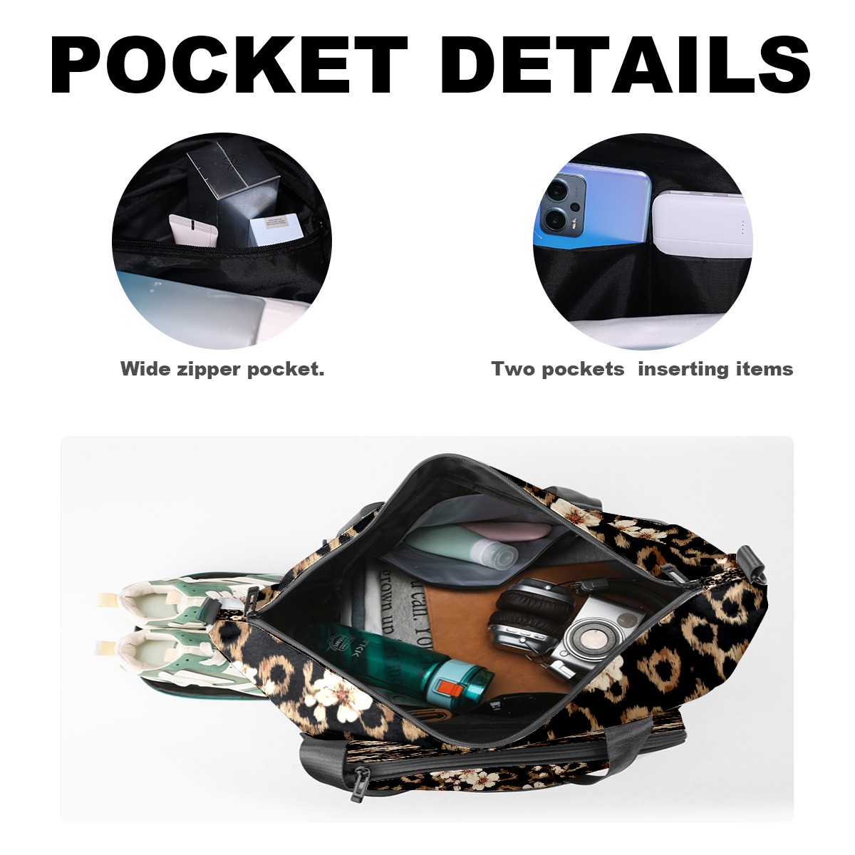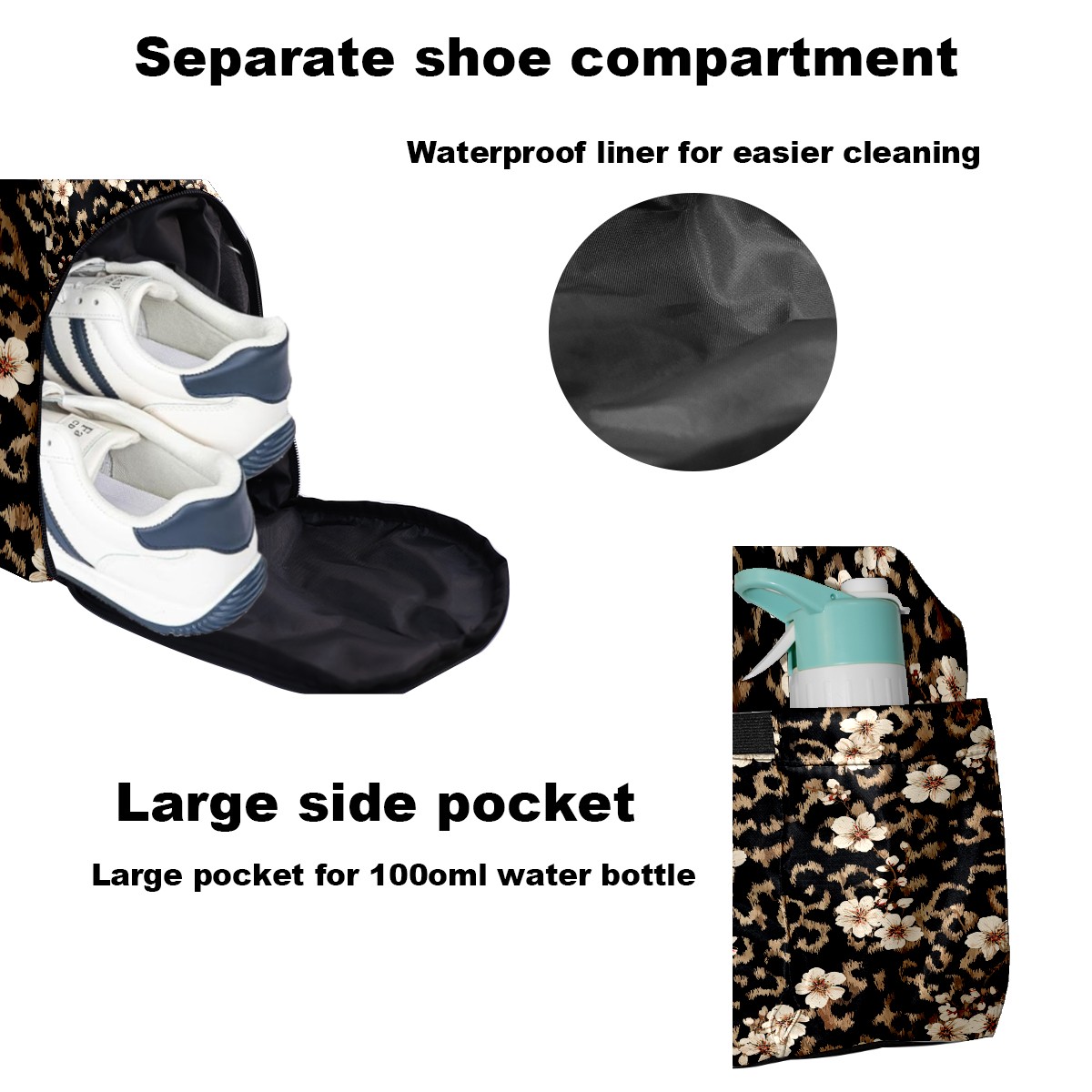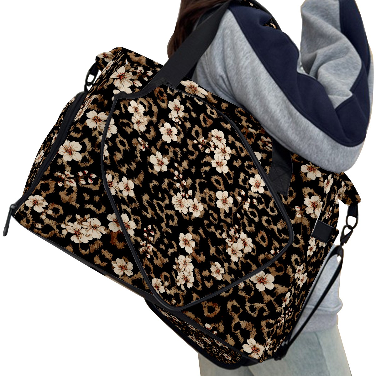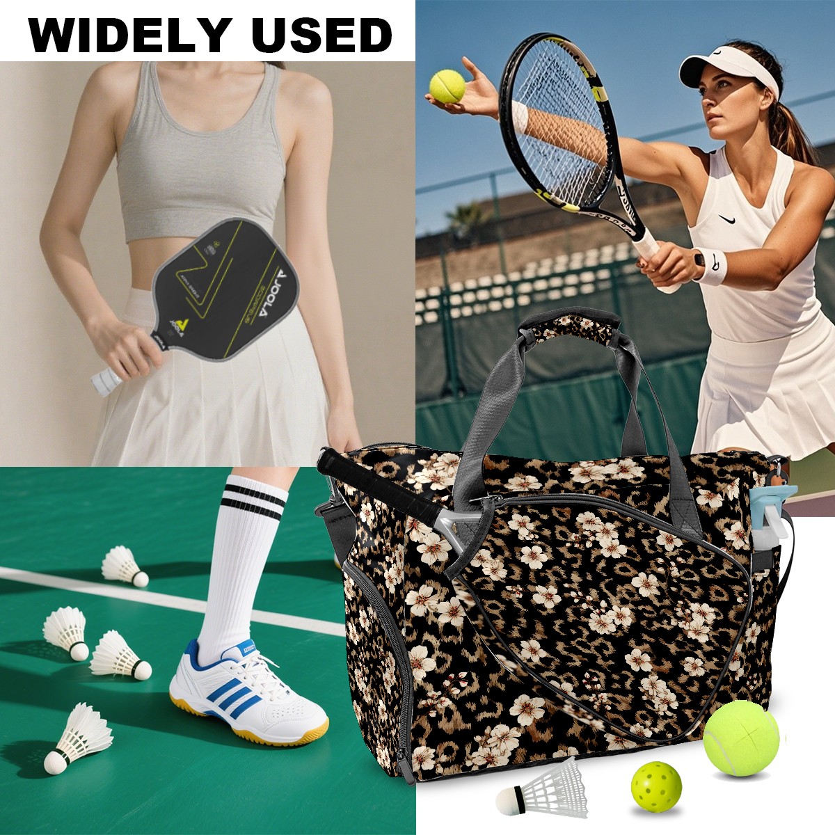 Tennis Bag Large, Black LeopardFlower Multi-Functional Sports Duffel Bag with Ventilated Shoe Compartment & Wet Pocket, Gym Bag for Men Women, Fitness Yoga Tennis Travel Carryall Bag