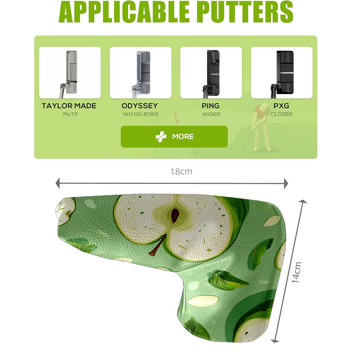 PU Leather Waterproof Golf Club Head Cover with Velvet Lining Golf Head Cover Suitable for Putters Golf Accessories for Men and Women Green Apple
