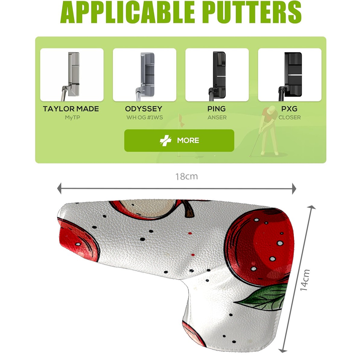 PU Leather Waterproof Golf Club Head Cover with Velvet Lining Golf Head Cover Suitable for Putters Golf Accessories for Men and Women Red Apple