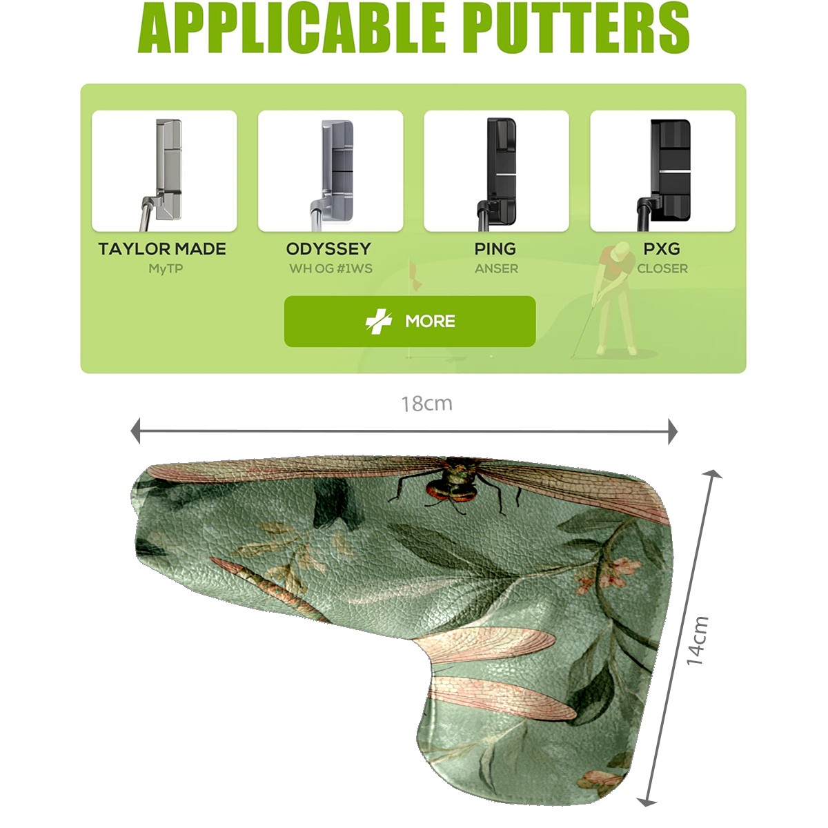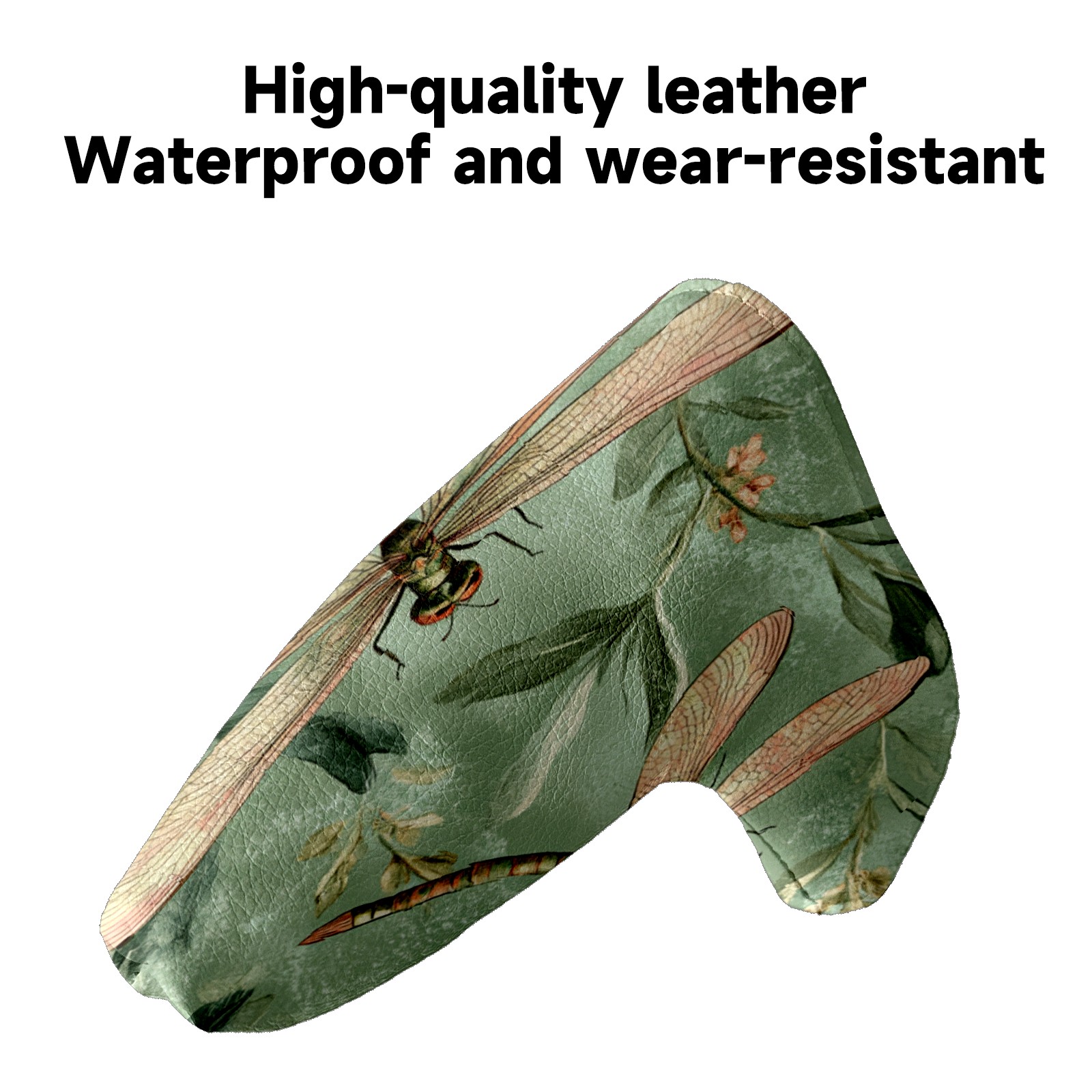 PU Leather Waterproof Golf Club Head Cover with Velvet Lining Golf Head Cover Suitable for Putters Golf Accessories for Men and Women Green Dragonfly