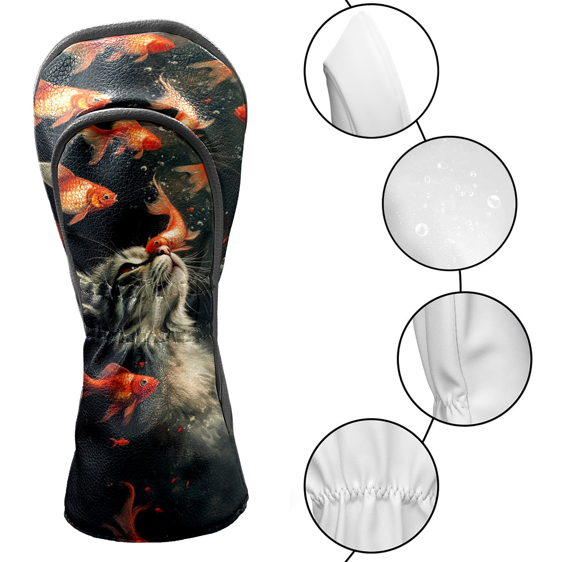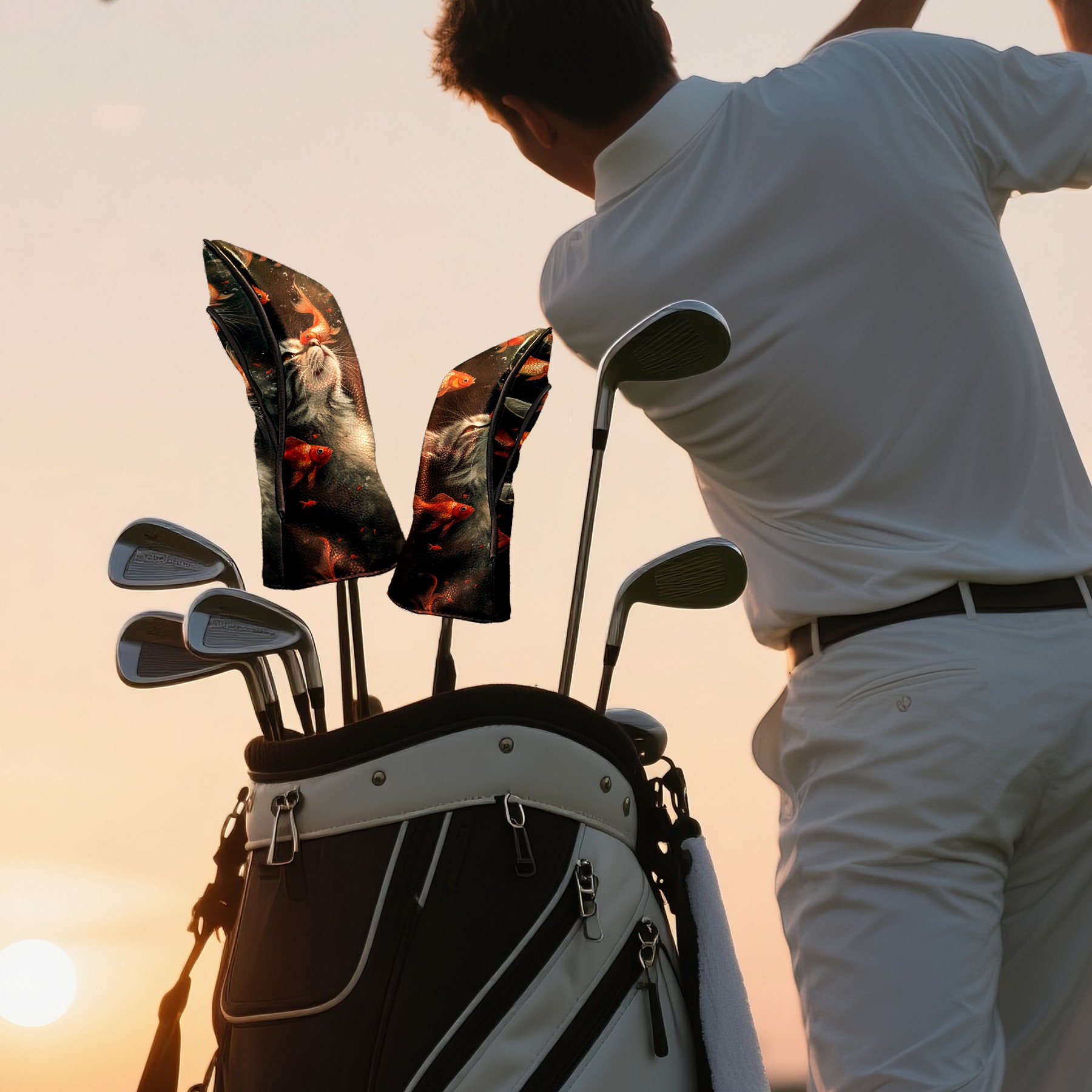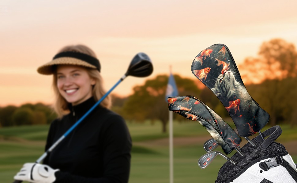 Golf Club Covers PU Leather Waterproof,Golf Club Head Covers for Fairway Woods and Hybrids Cat Fish Unisex Suitable for Most Brands