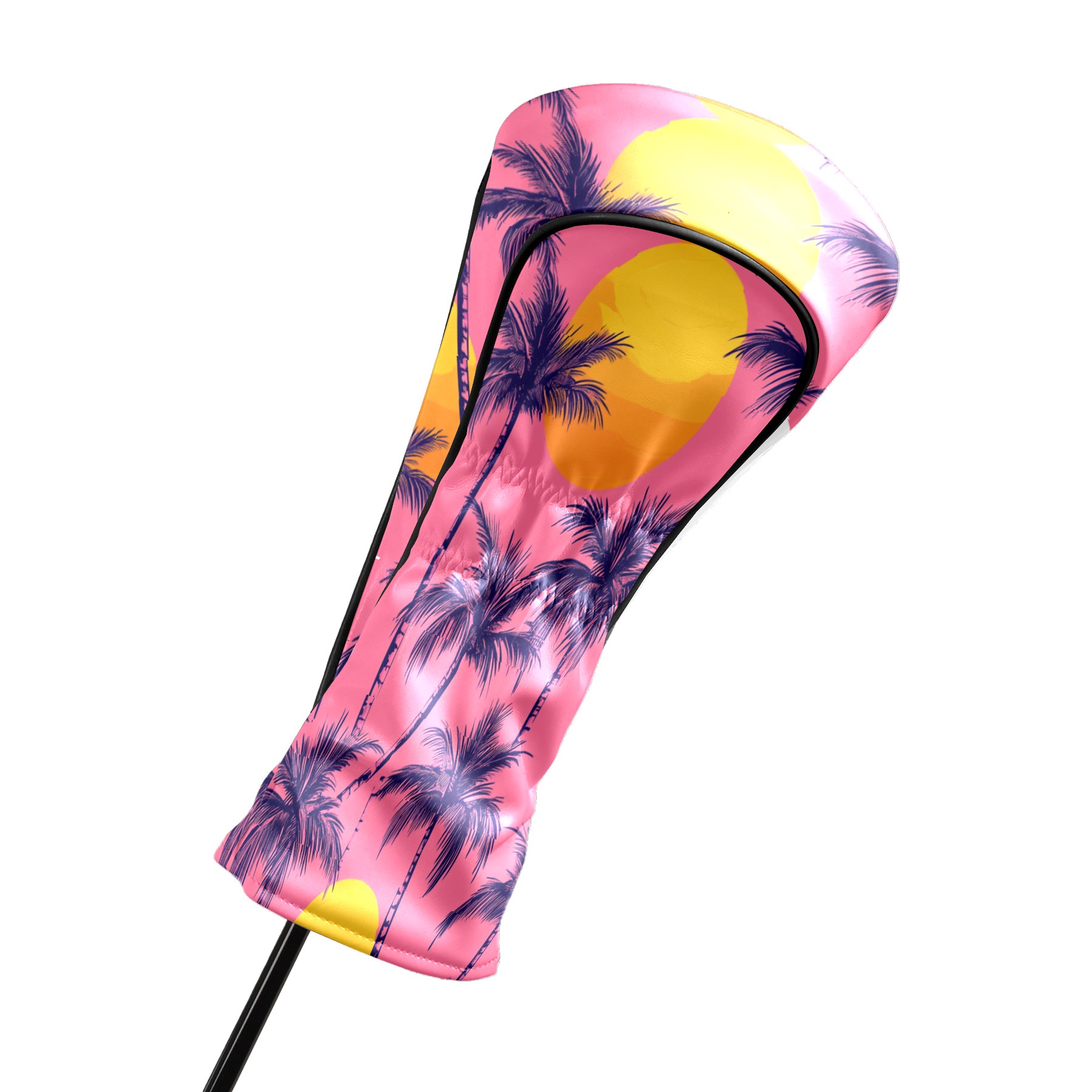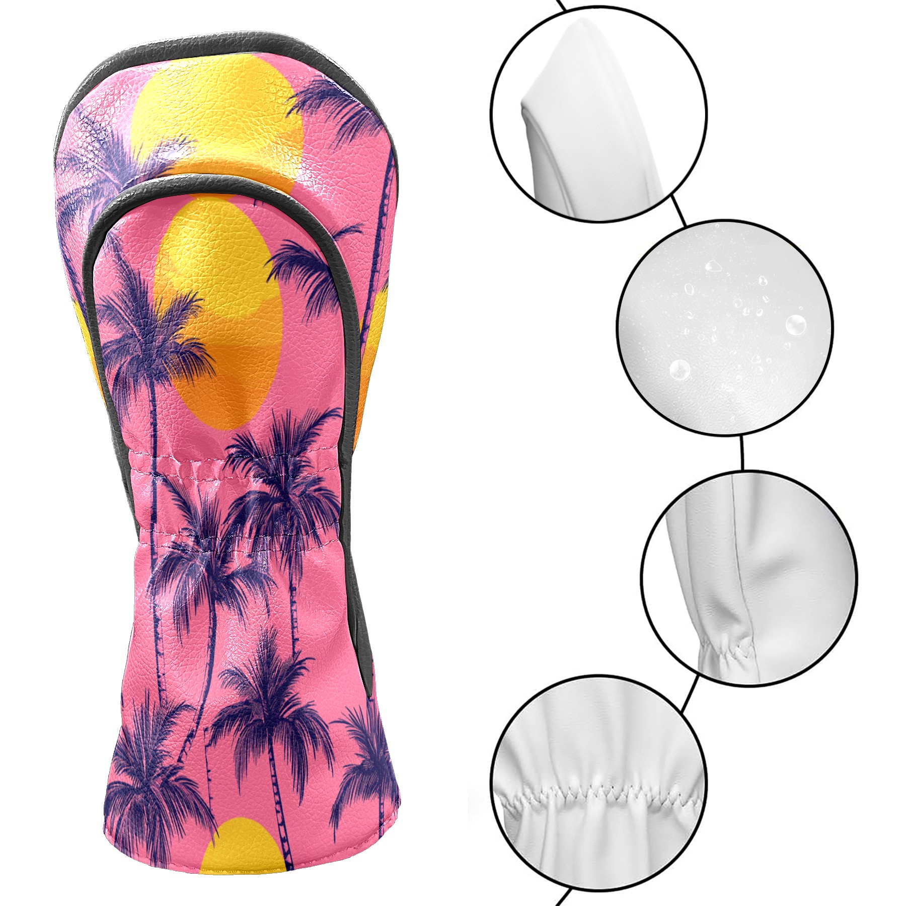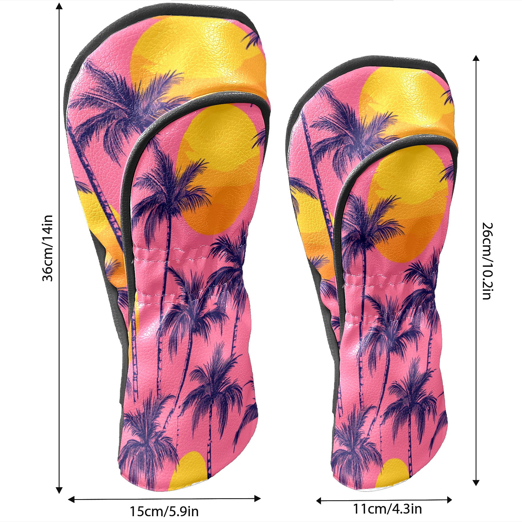 Golf Club Covers PU Leather Waterproof,Golf Club Head Covers for Fairway Woods and Hybrids Palm Tree Sunset Unisex Suitable for Most Brands