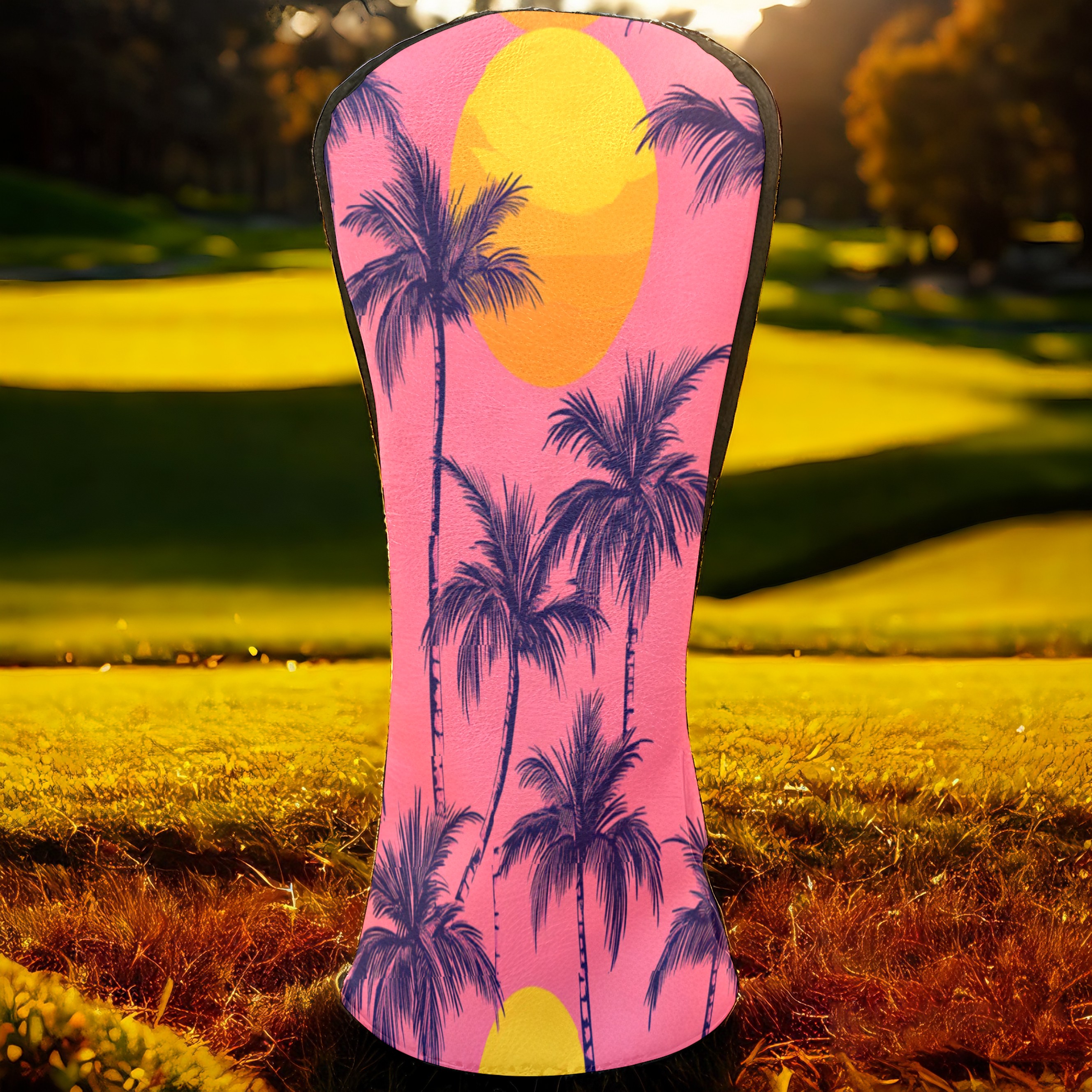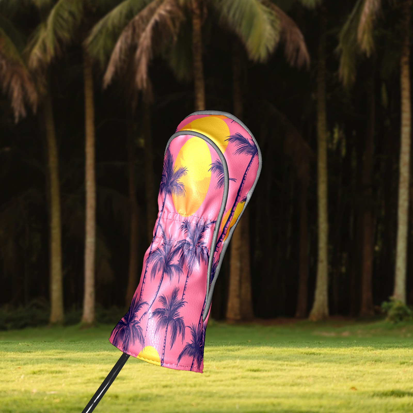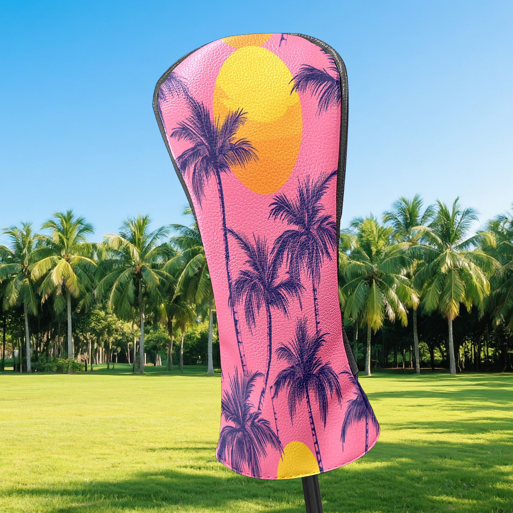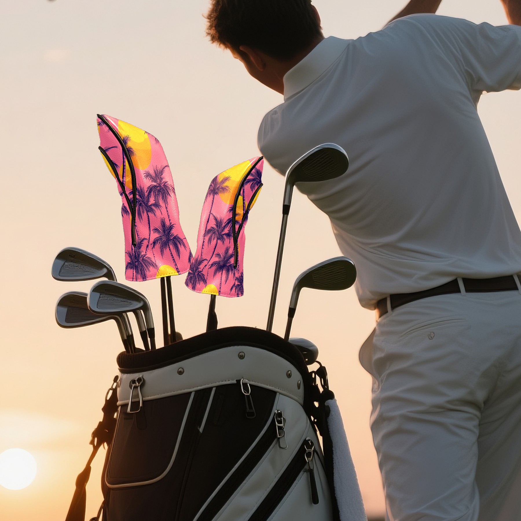 Golf Club Covers PU Leather Waterproof,Golf Club Head Covers for Fairway Woods and Hybrids Palm Tree Sunset Unisex Suitable for Most Brands