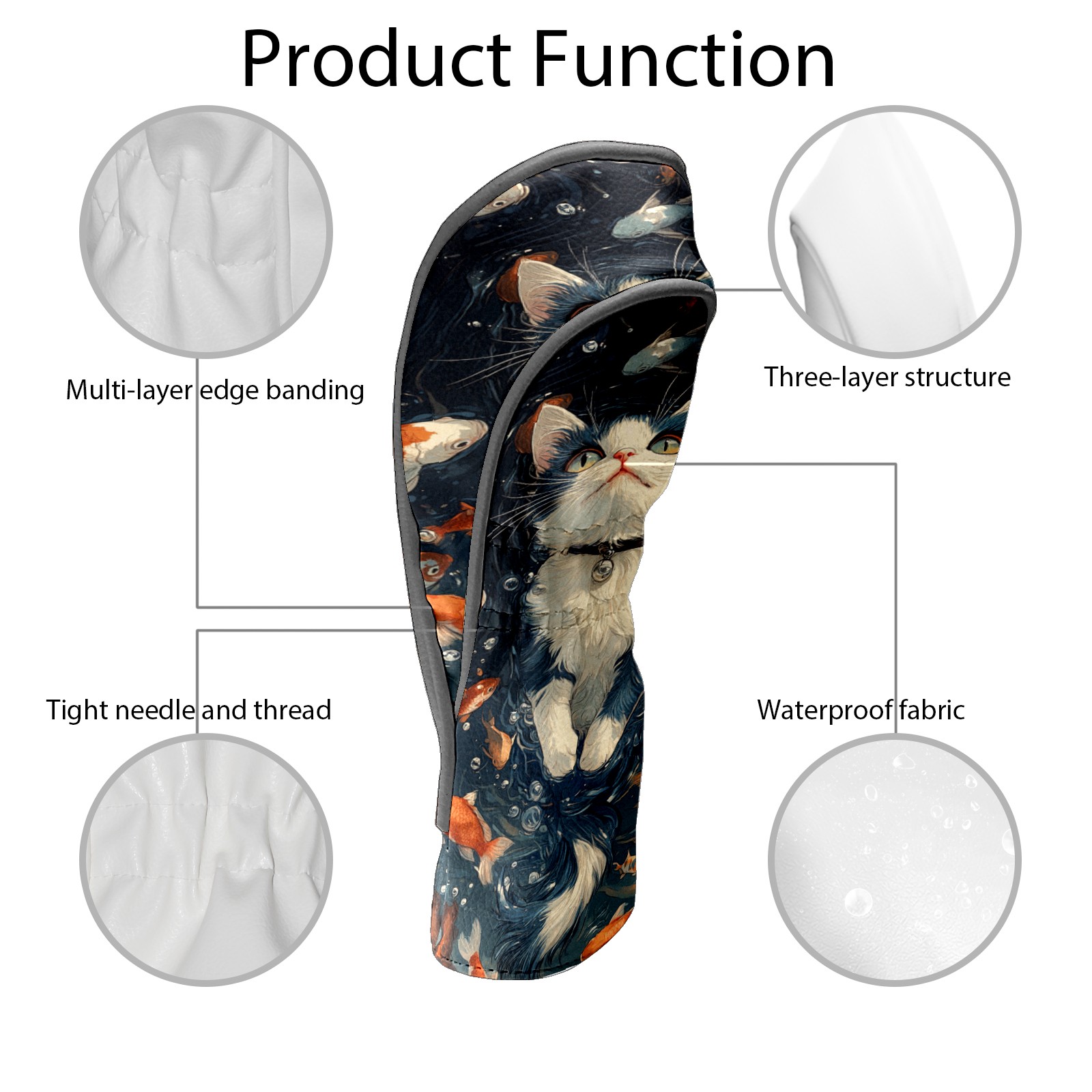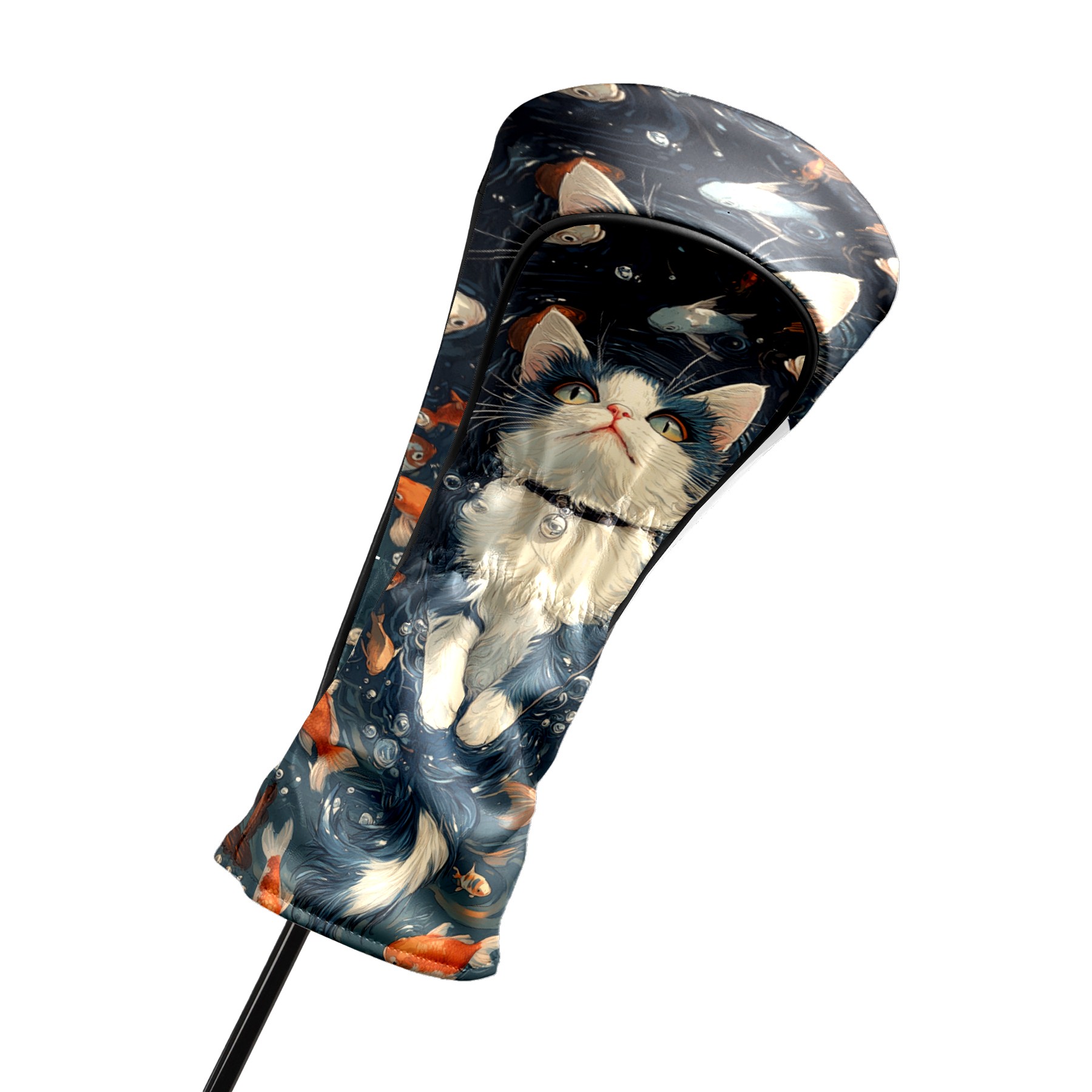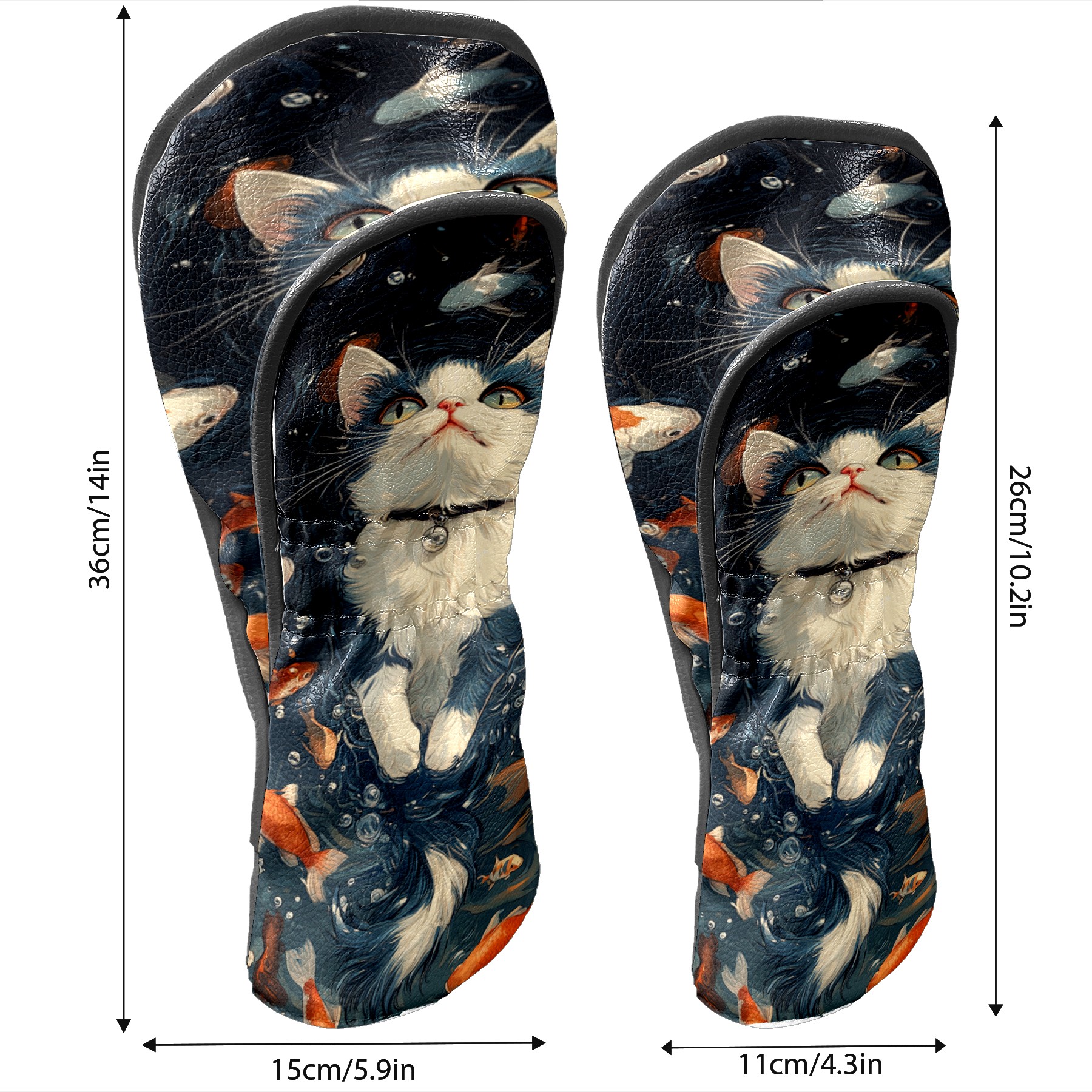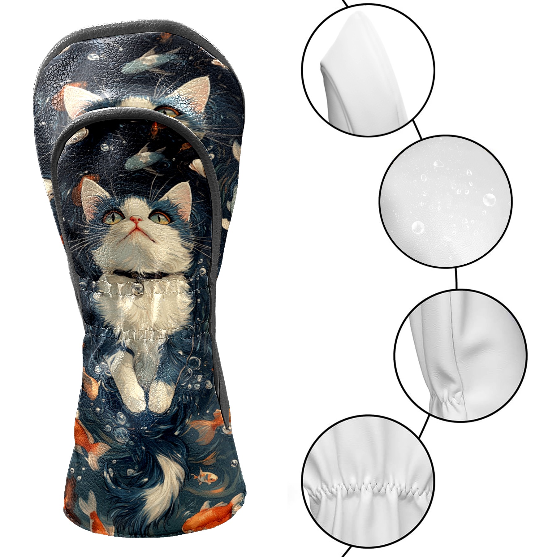 Golf Club Covers PU Leather Waterproof,Golf Club Head Covers for Fairway Woods and Hybrids Blue White Cat Unisex Suitable for Most Brands