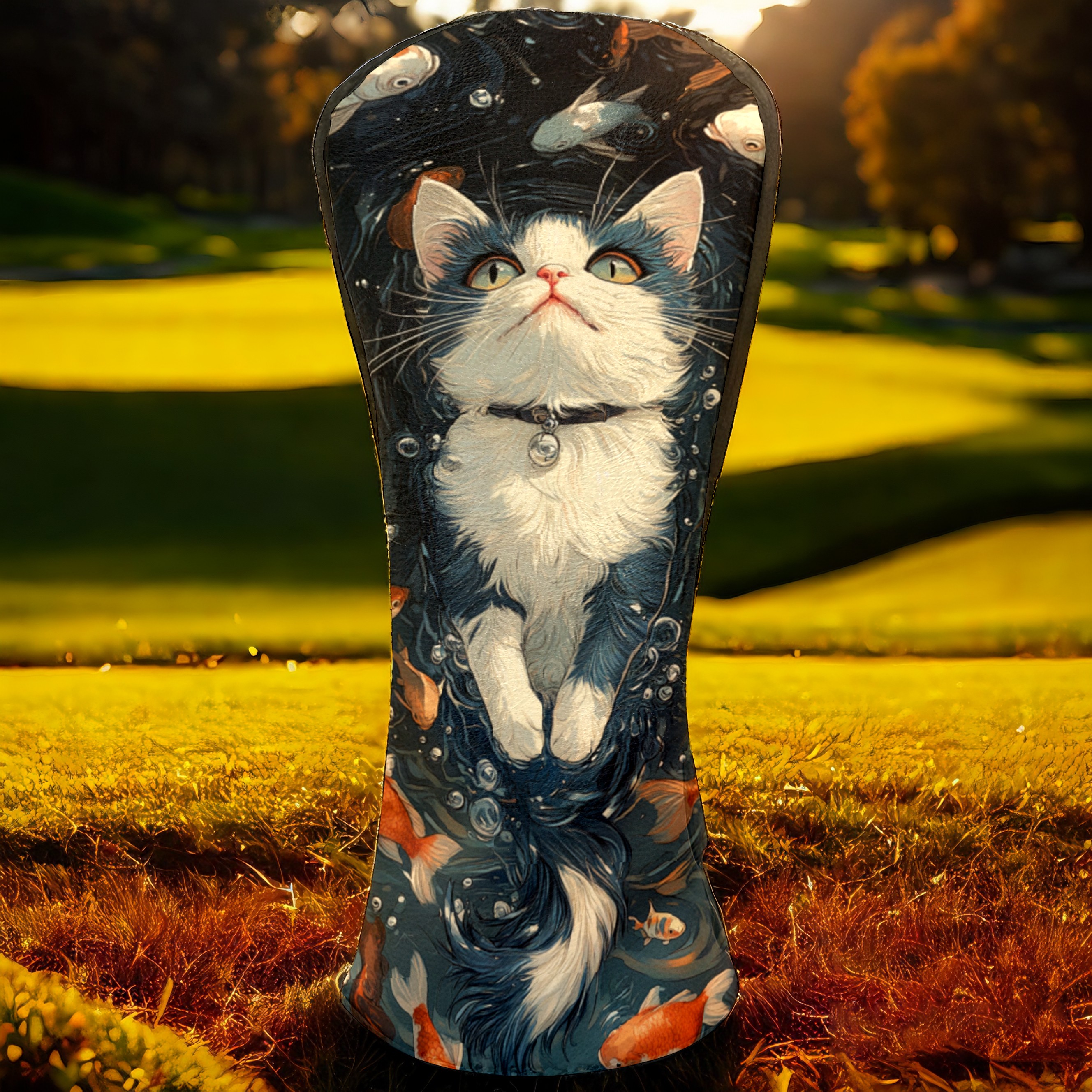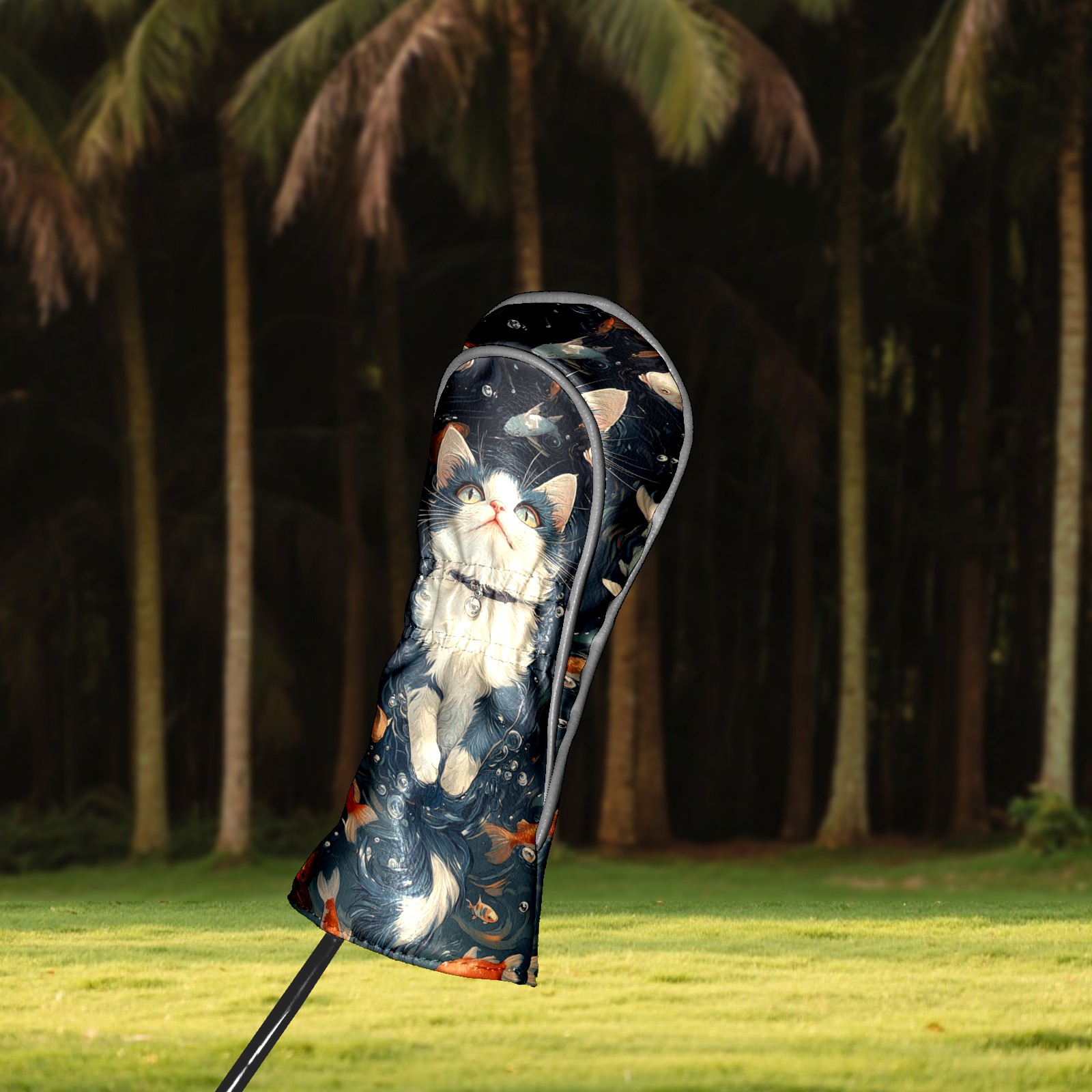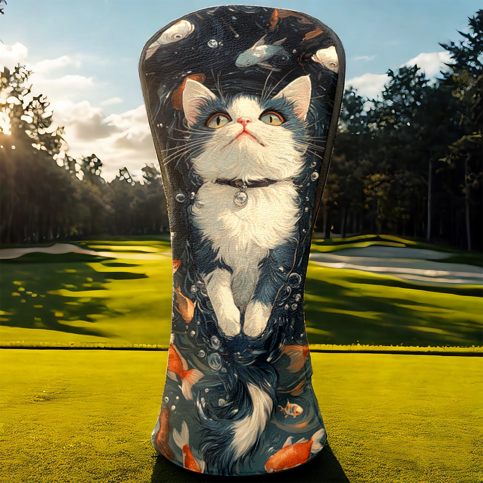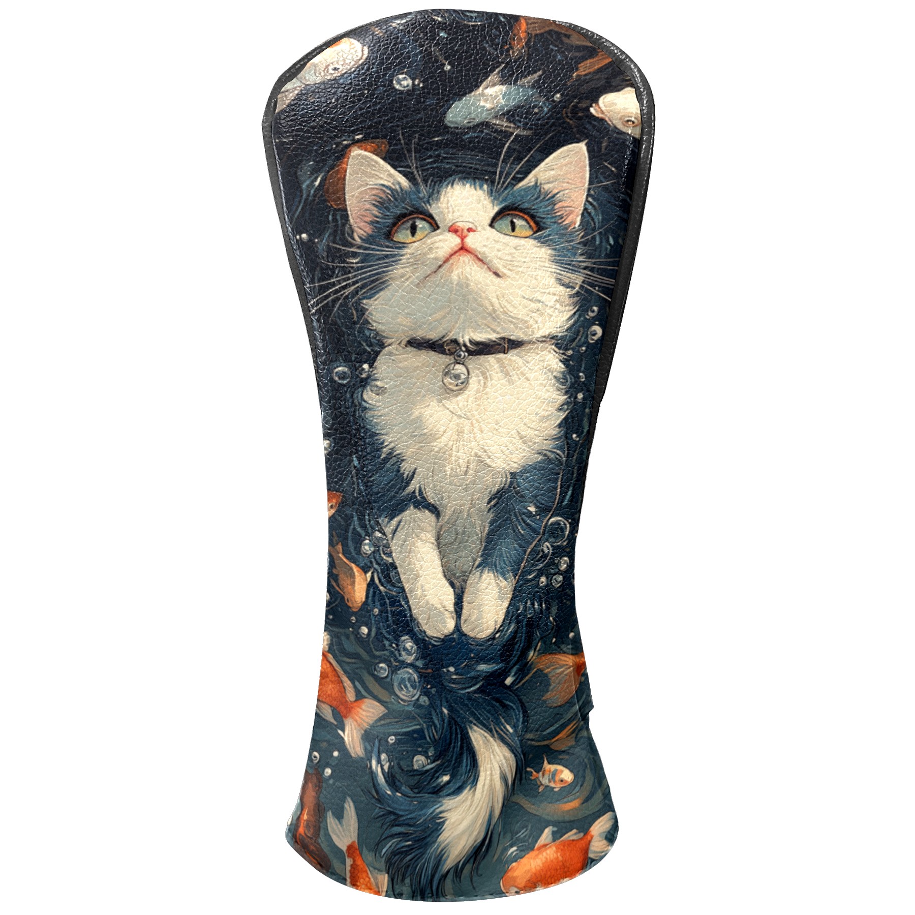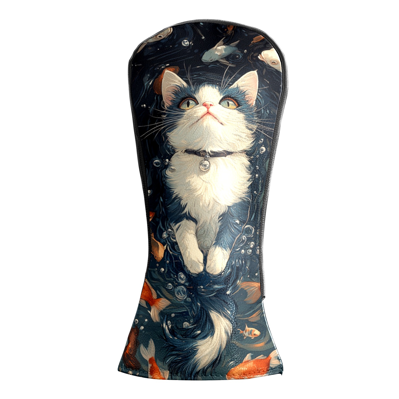 Golf Club Covers PU Leather Waterproof,Golf Club Head Covers for Fairway Woods and Hybrids Blue White Cat Unisex Suitable for Most Brands