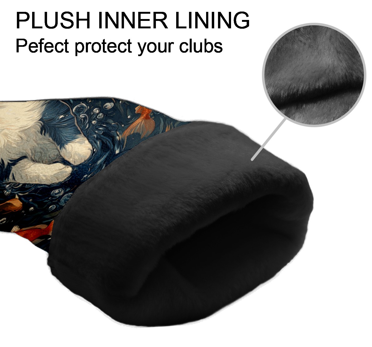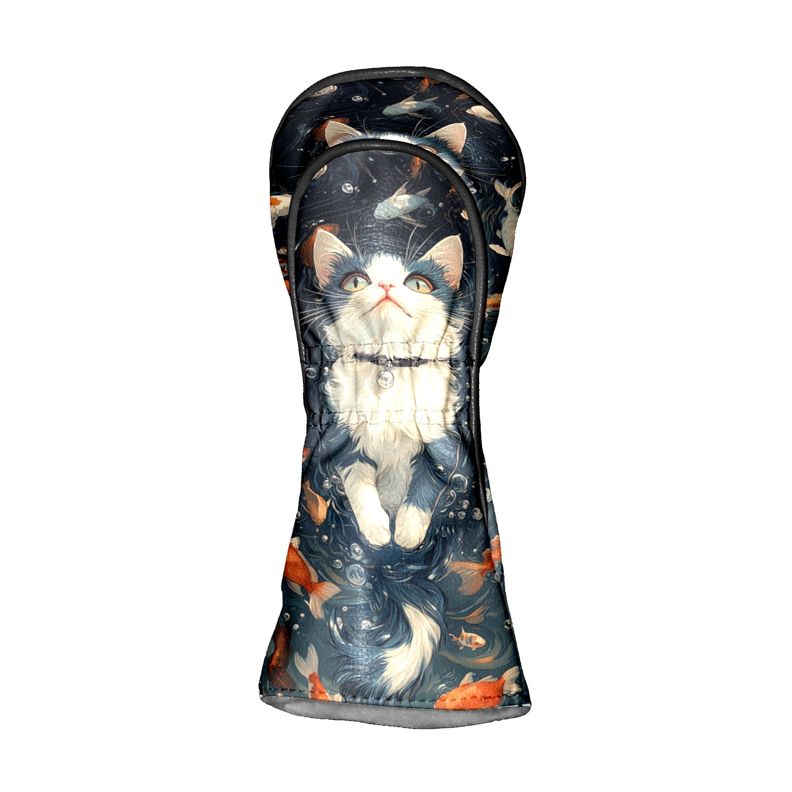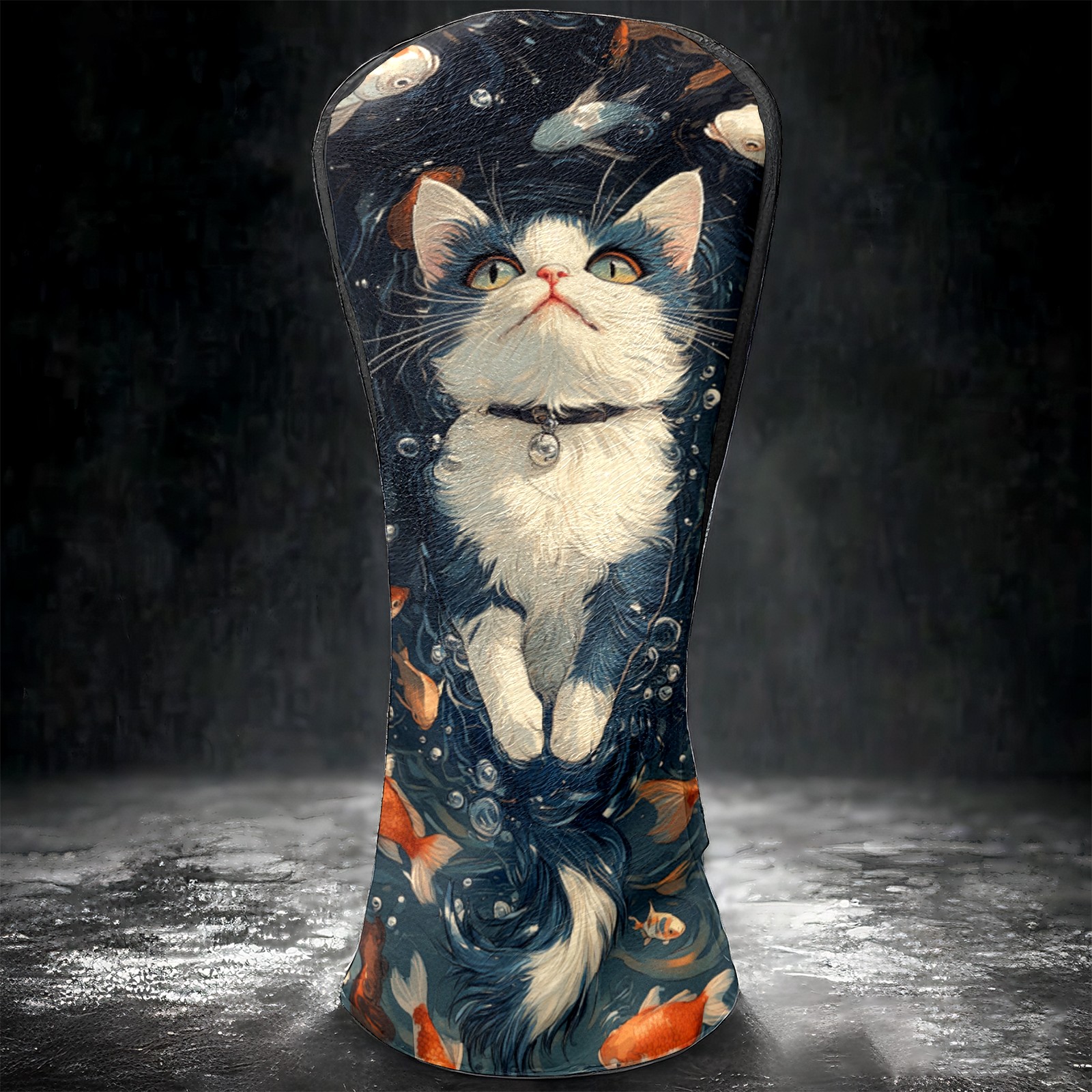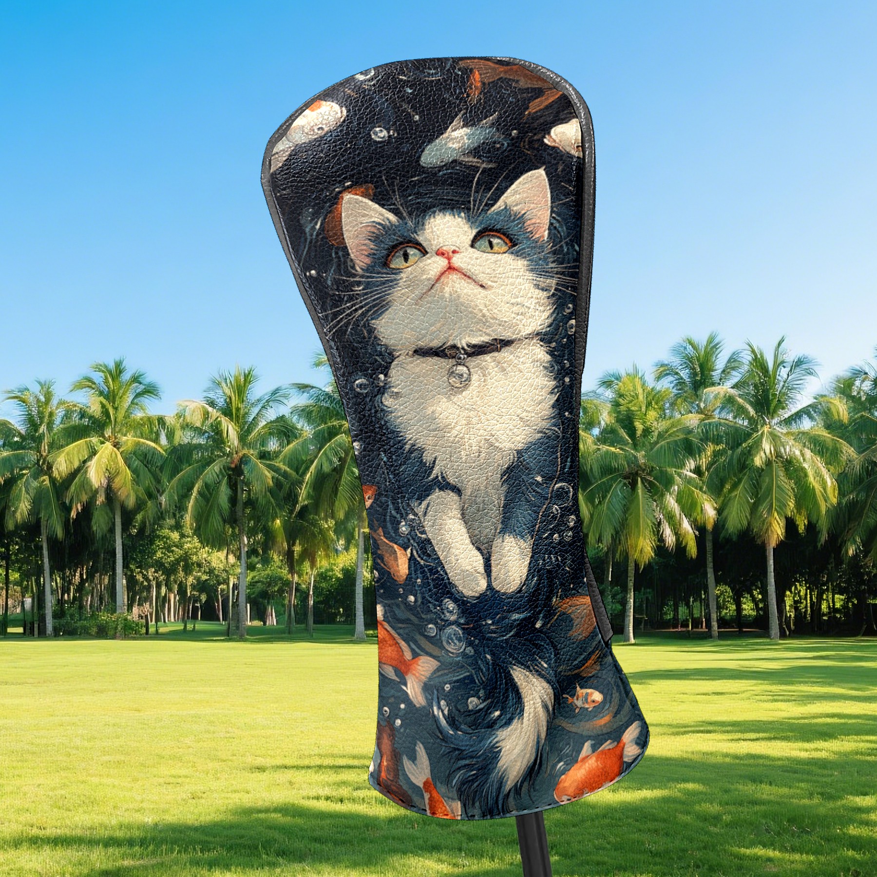 Golf Club Covers PU Leather Waterproof,Golf Club Head Covers for Fairway Woods and Hybrids Blue White Cat Unisex Suitable for Most Brands
