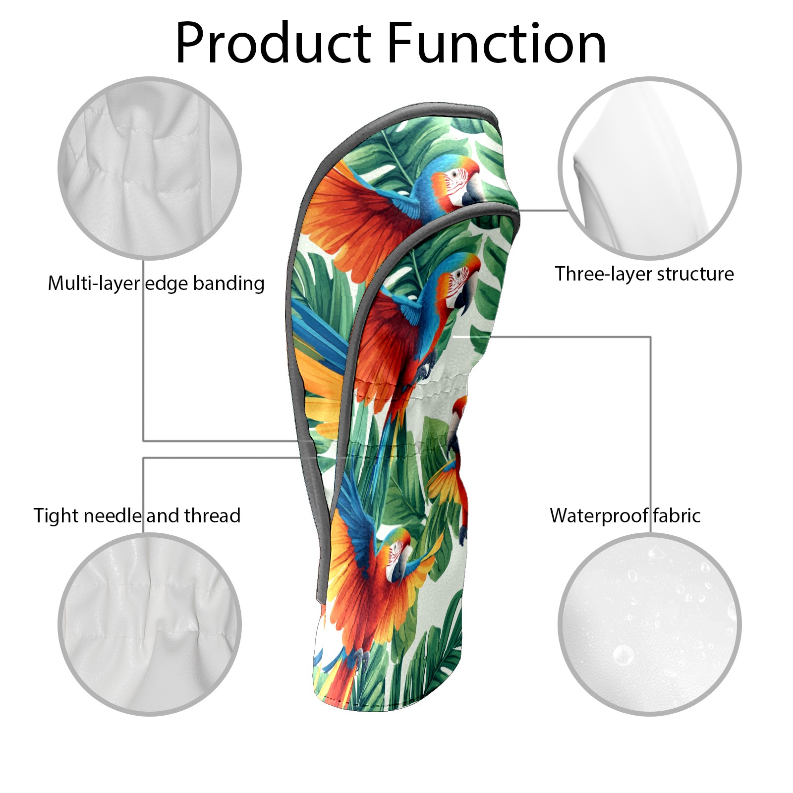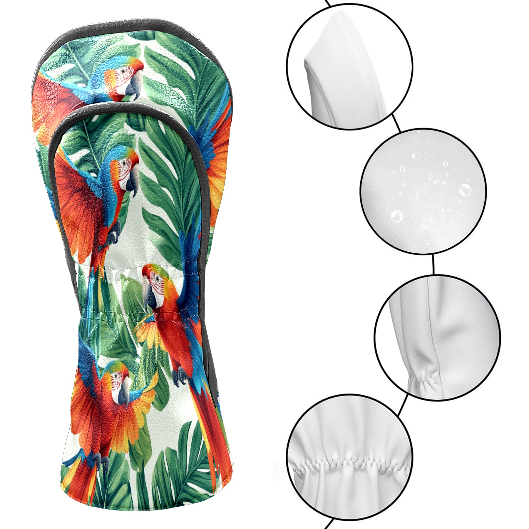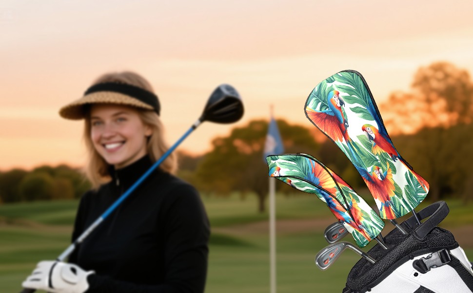 Golf Club Covers PU Leather Waterproof,Golf Club Head Covers for Fairway Woods and Hybrids Parrot Unisex Suitable for Most Brands