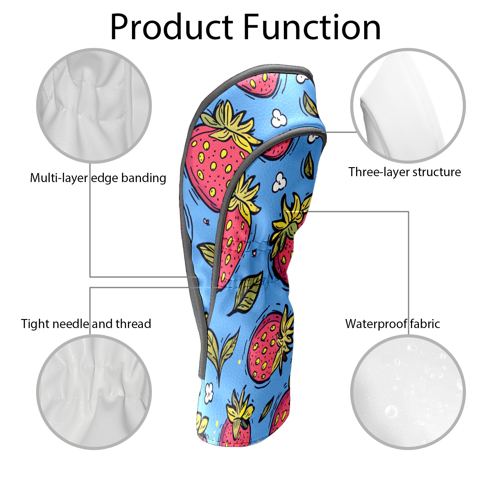 Golf Club Covers PU Leather Waterproof,Golf Club Head Covers for Fairway Woods and Hybrids Strawberry Unisex Suitable for Most Brands
